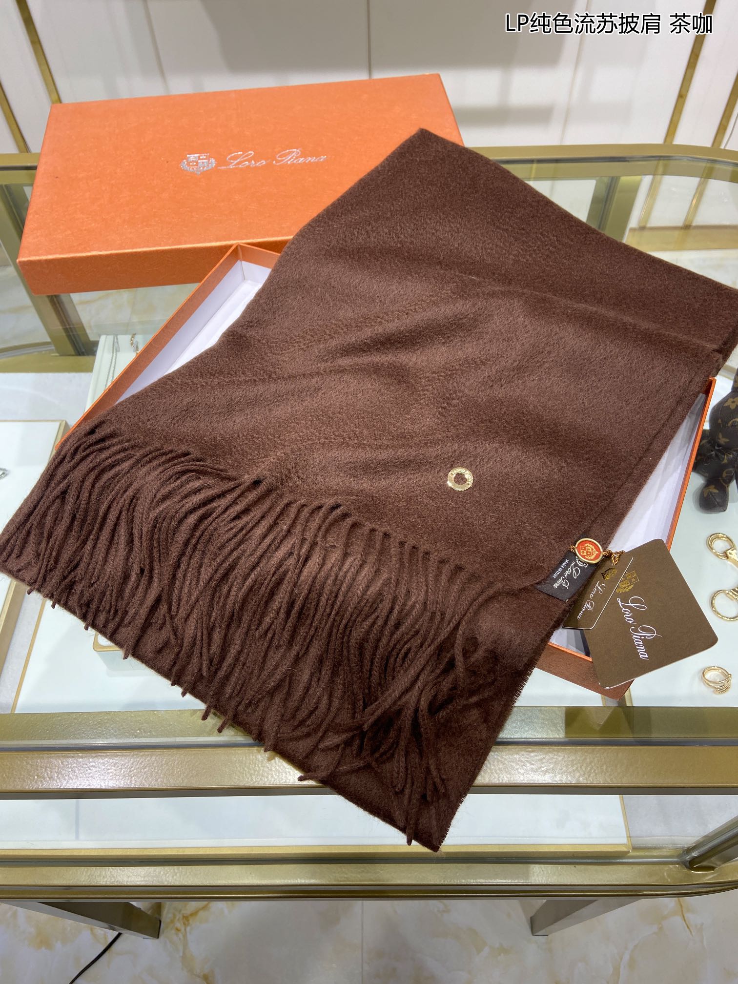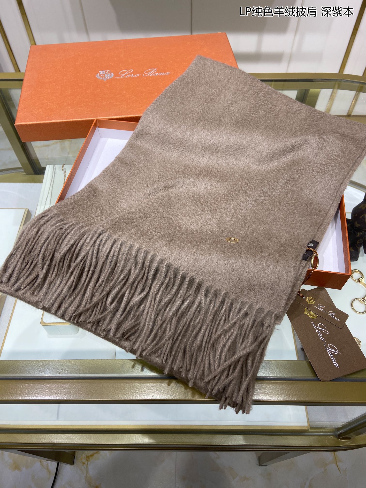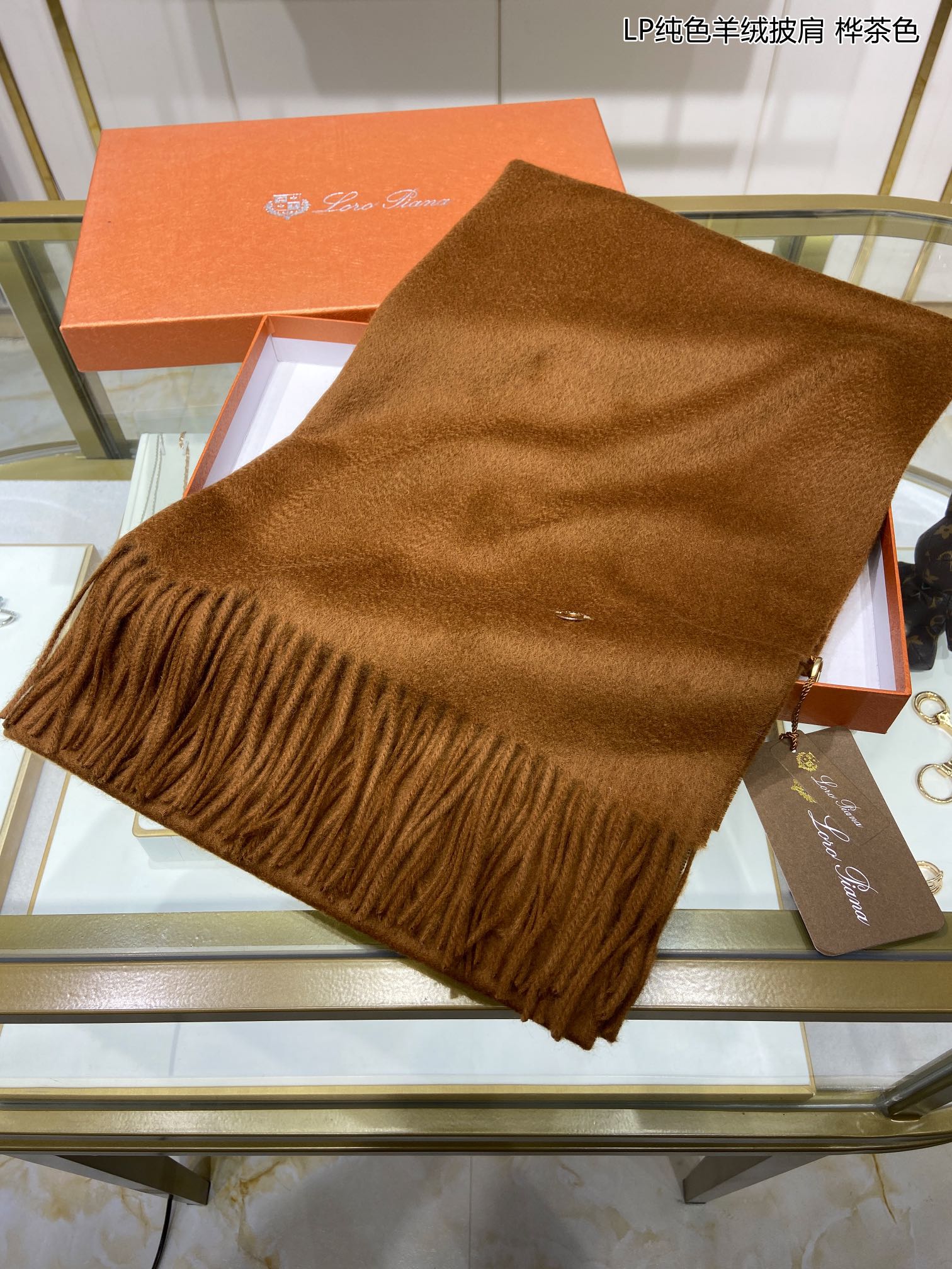 LP Grande Unita Scarf 200 CM In Earth Brown Mix Caramel Cashmere 686571