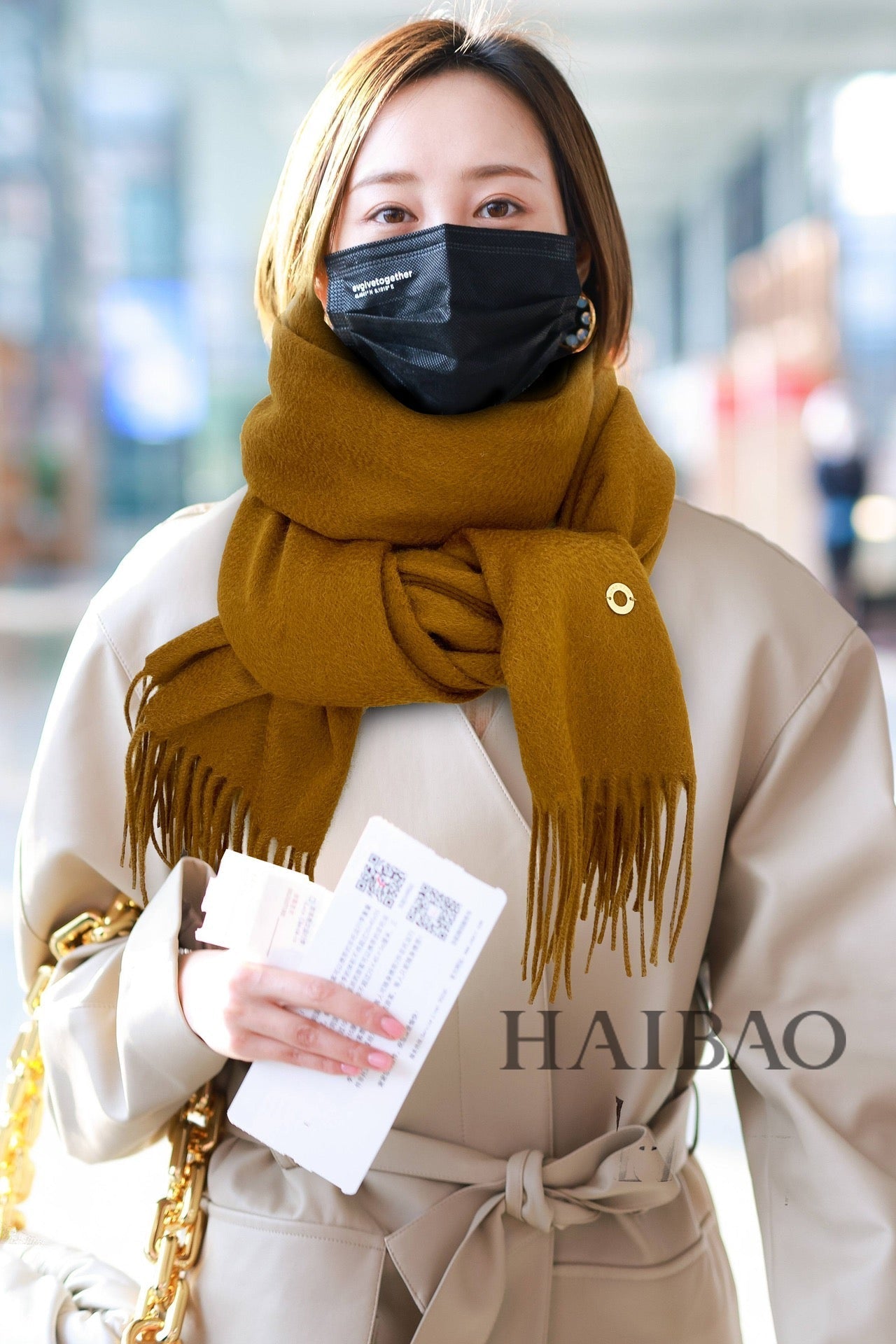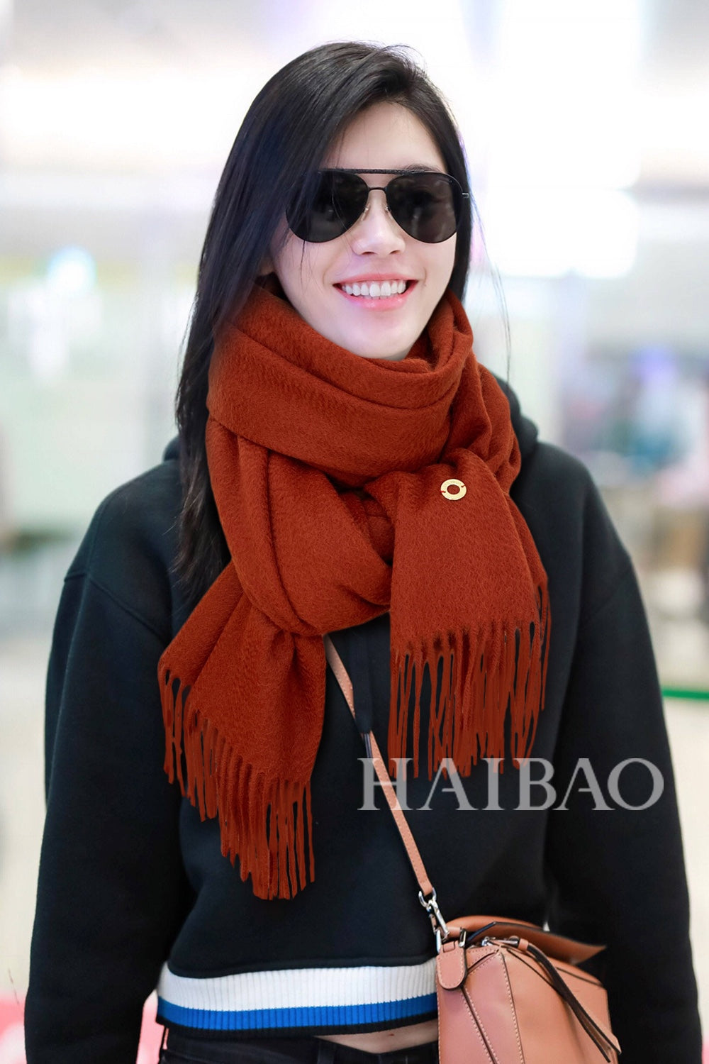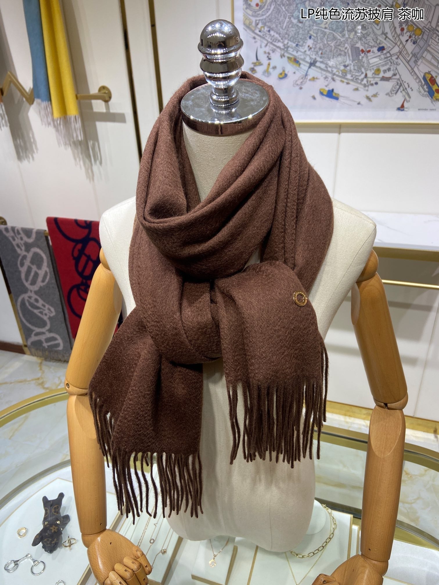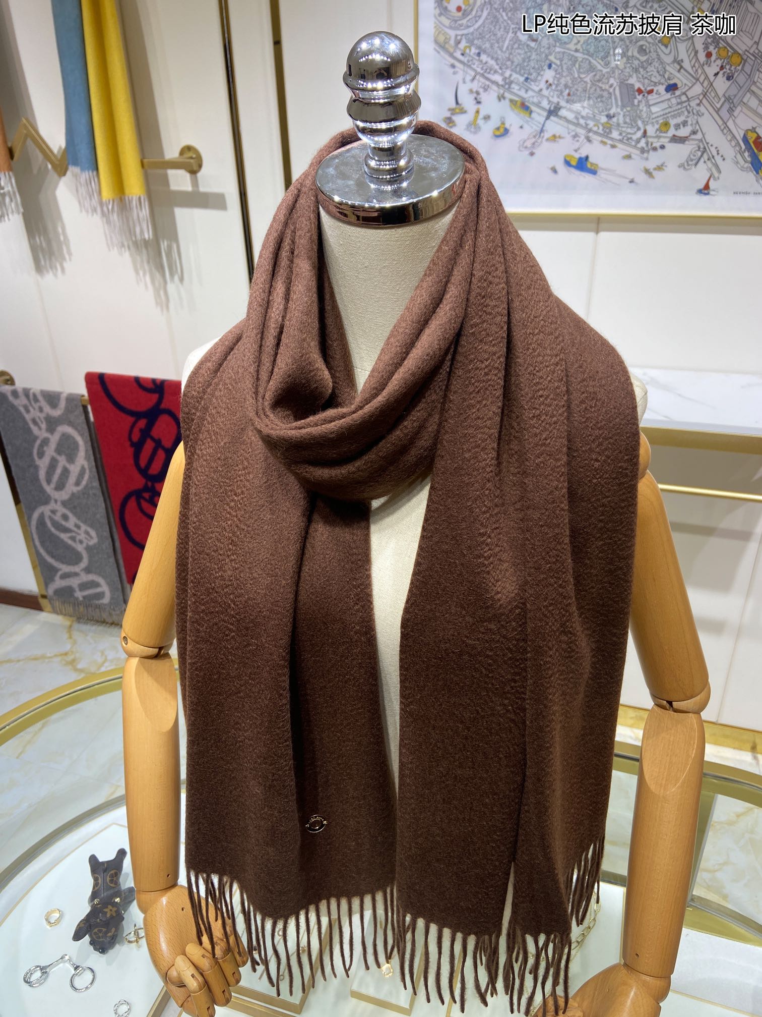 LP Grande Unita Scarf 200 CM In Earth Brown Mix Caramel Cashmere 686571