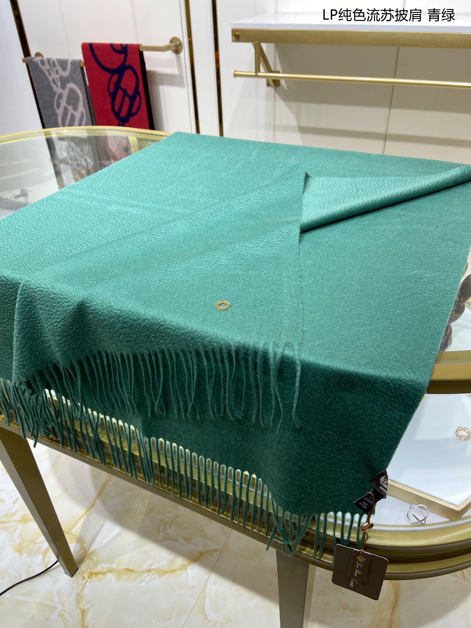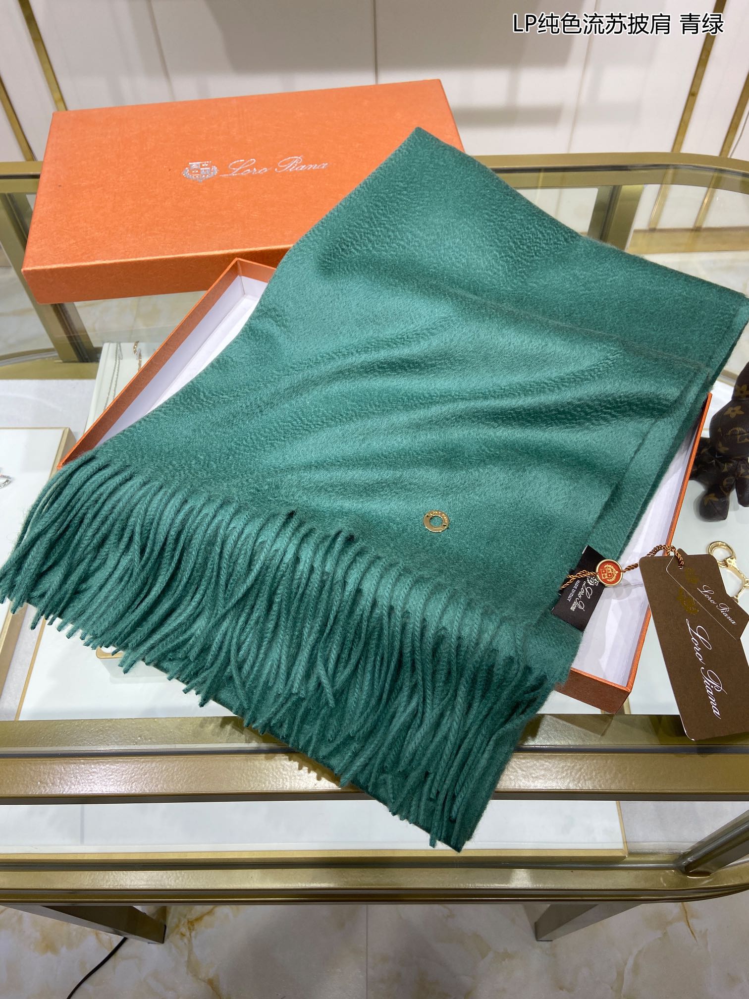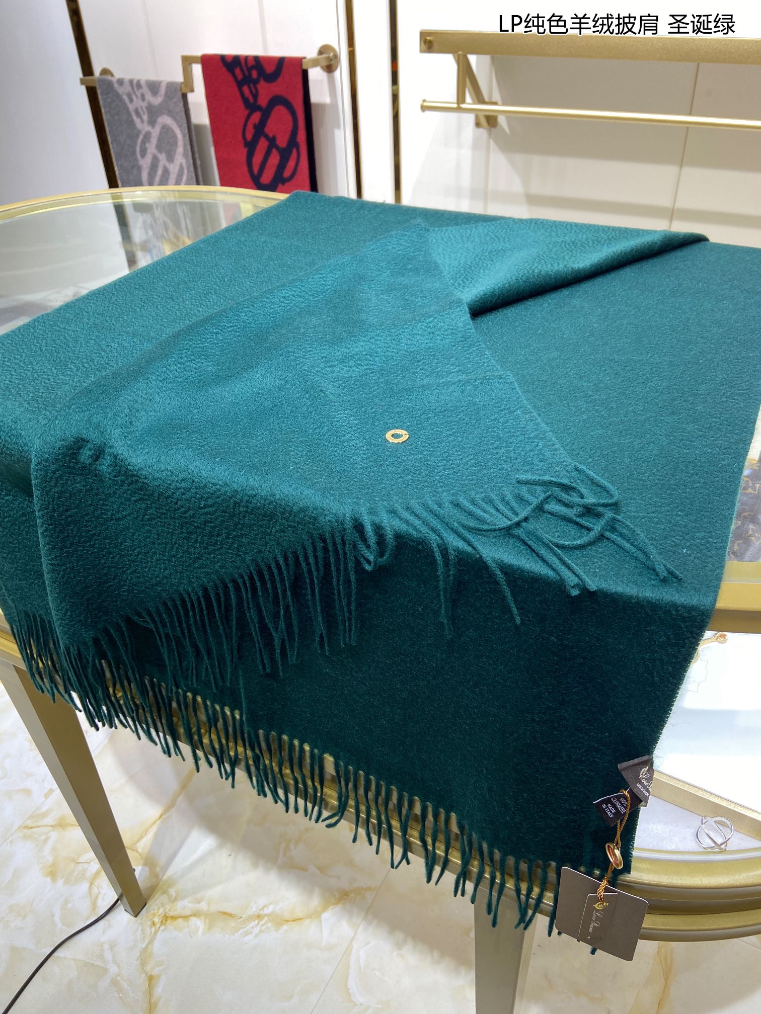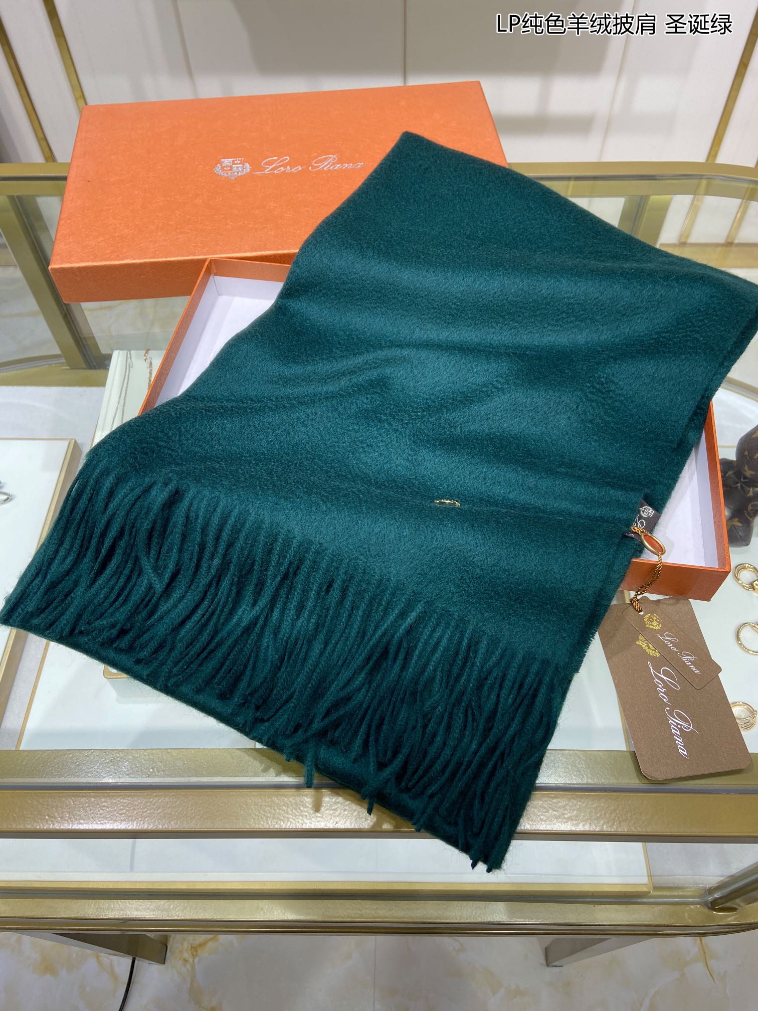 LP Grande Unita Scarf 200 CM In Dark Jade Green Cashmere 645522