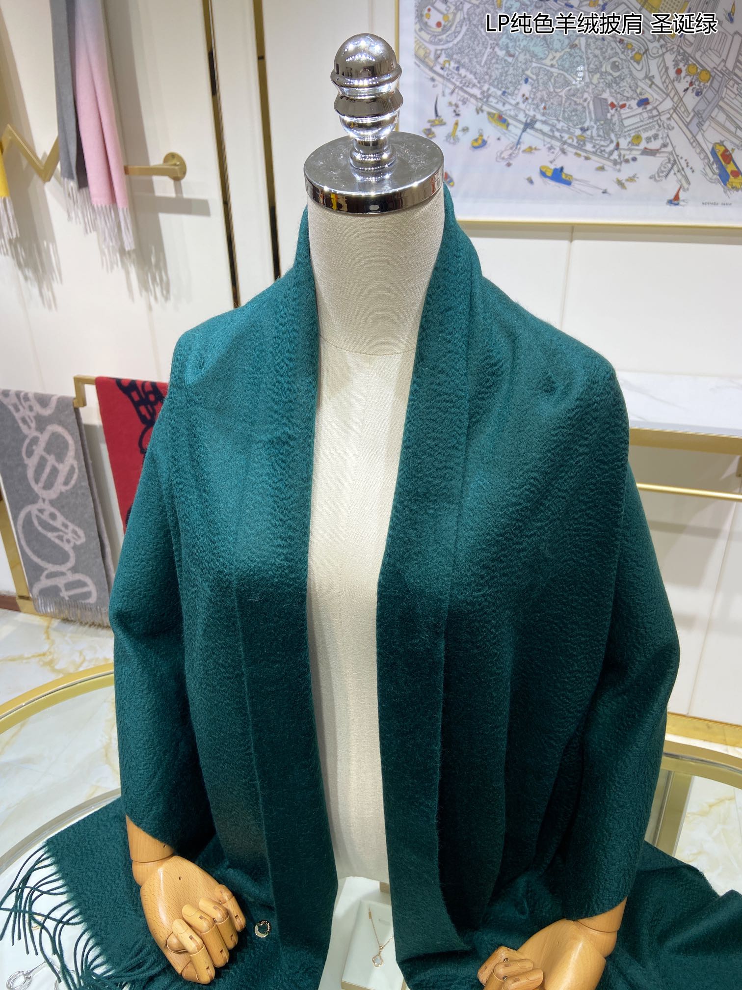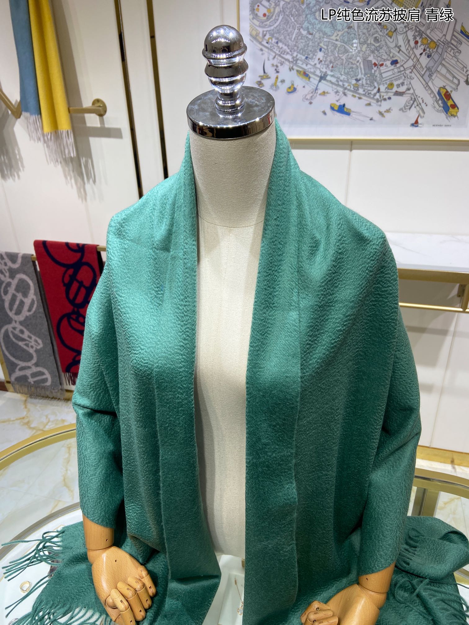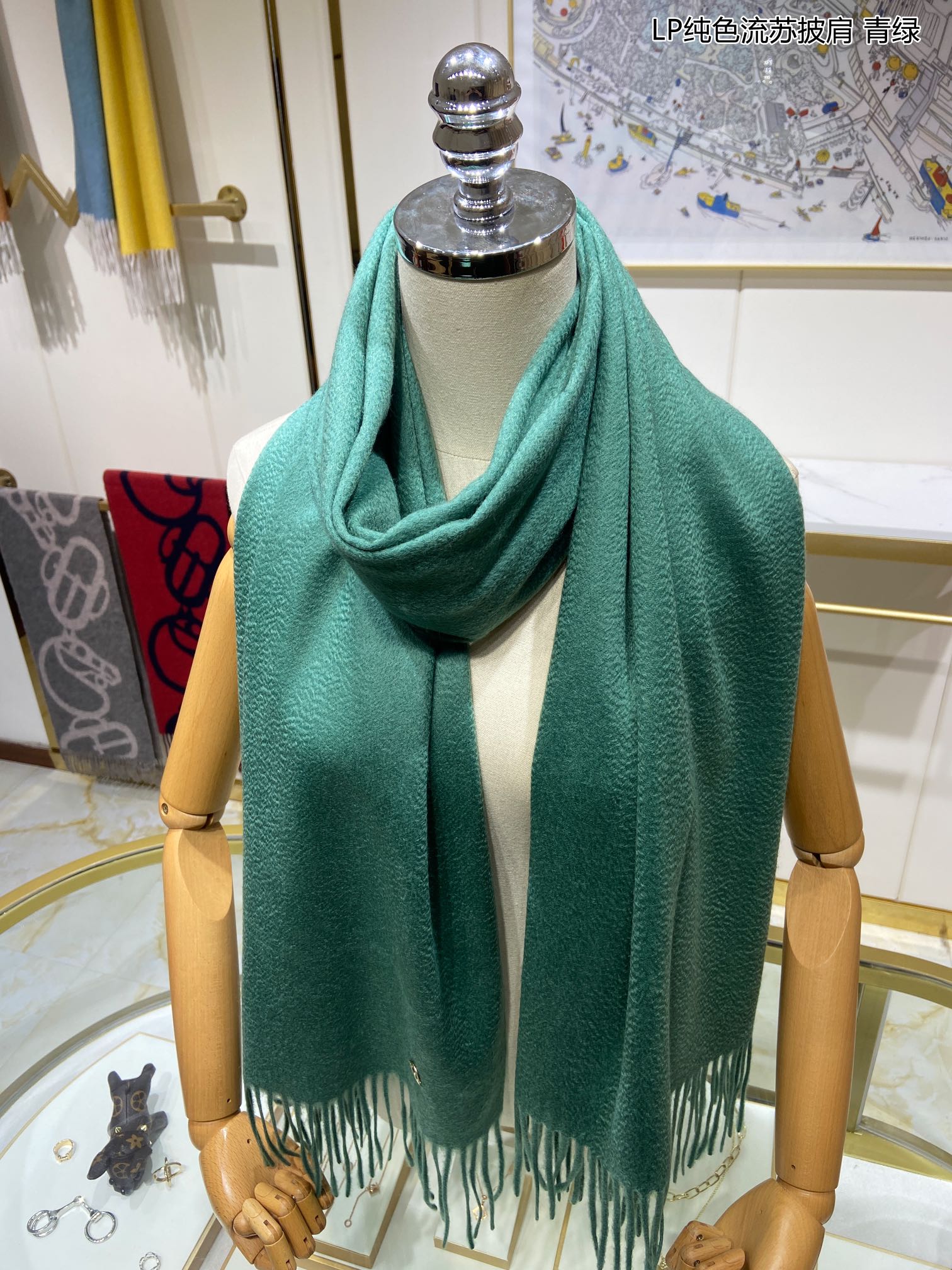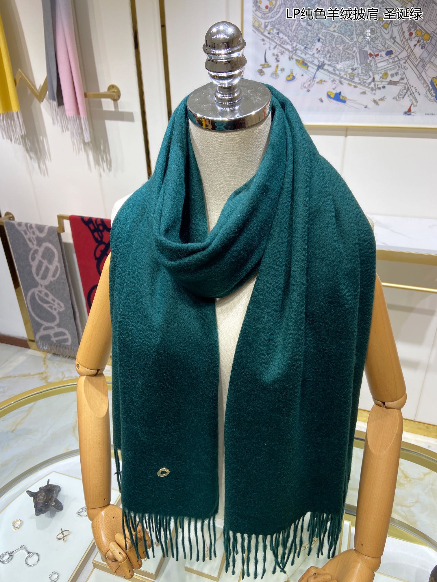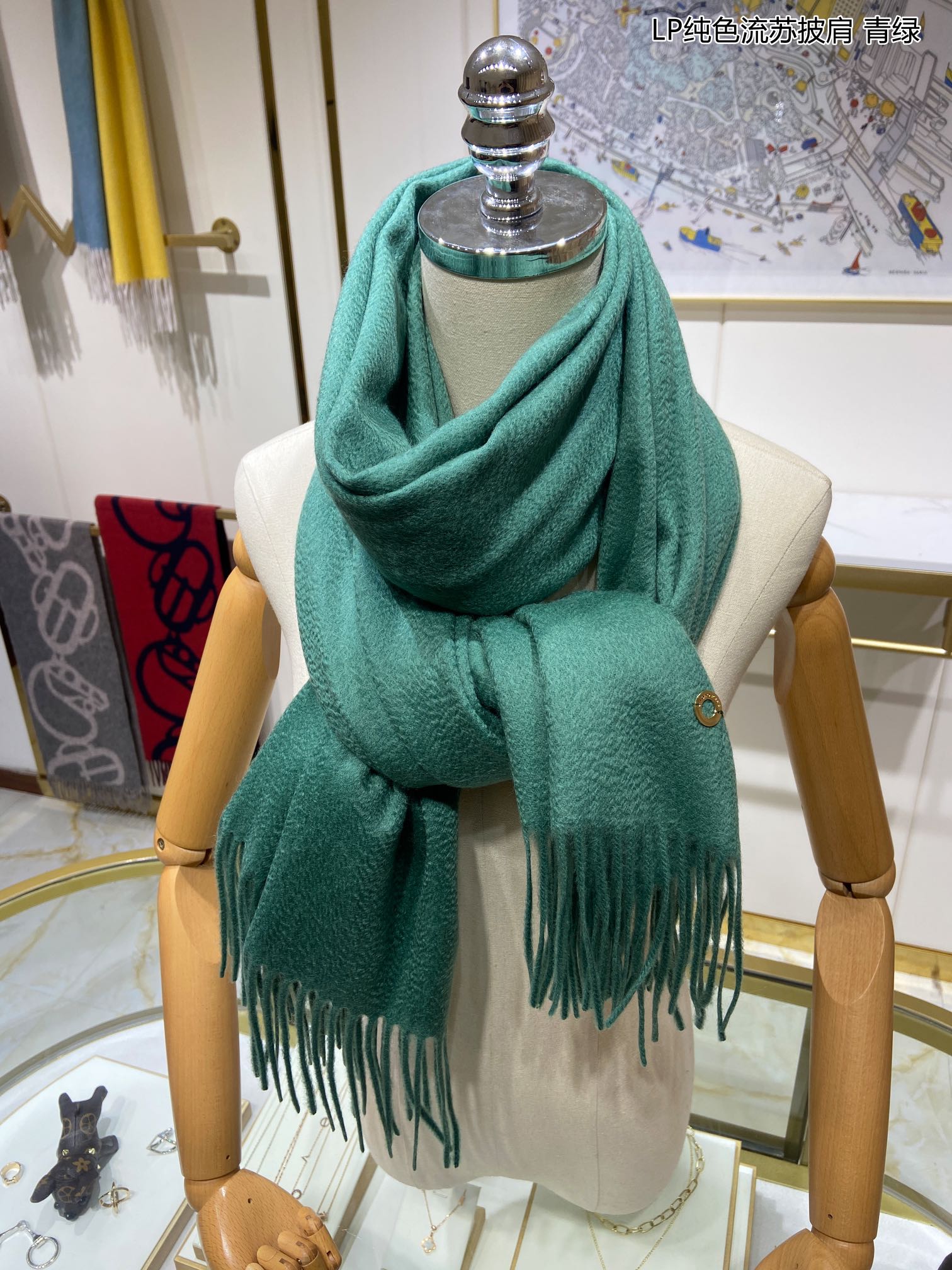 LP Grande Unita Scarf 200 CM In Dark Jade Green Cashmere 645522