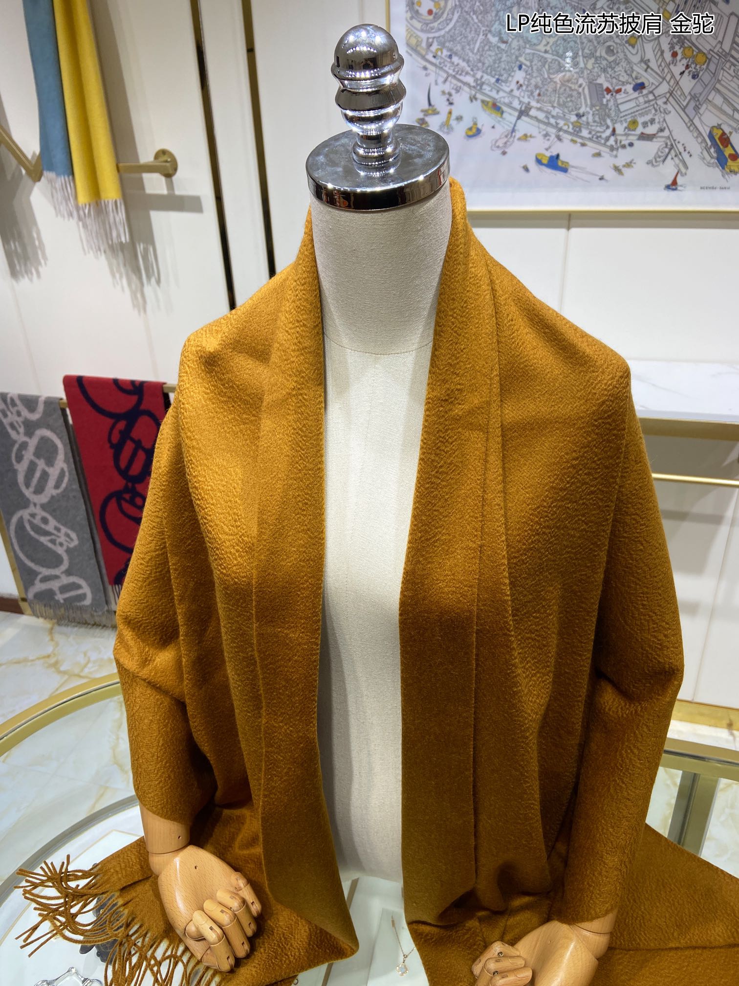 LP Grande Unita Scarf 200 CM In Ochre Yellow Cashmere 645523