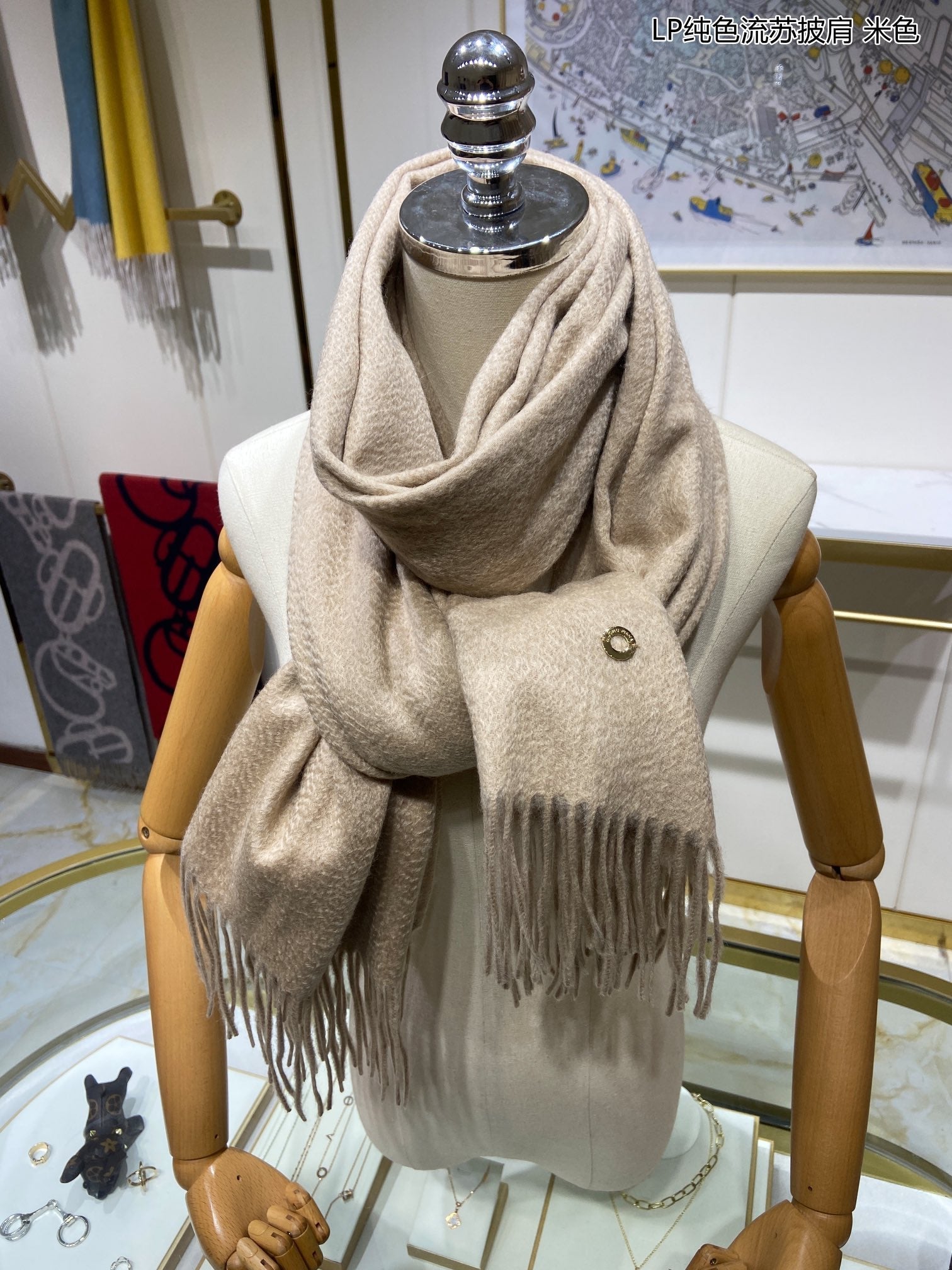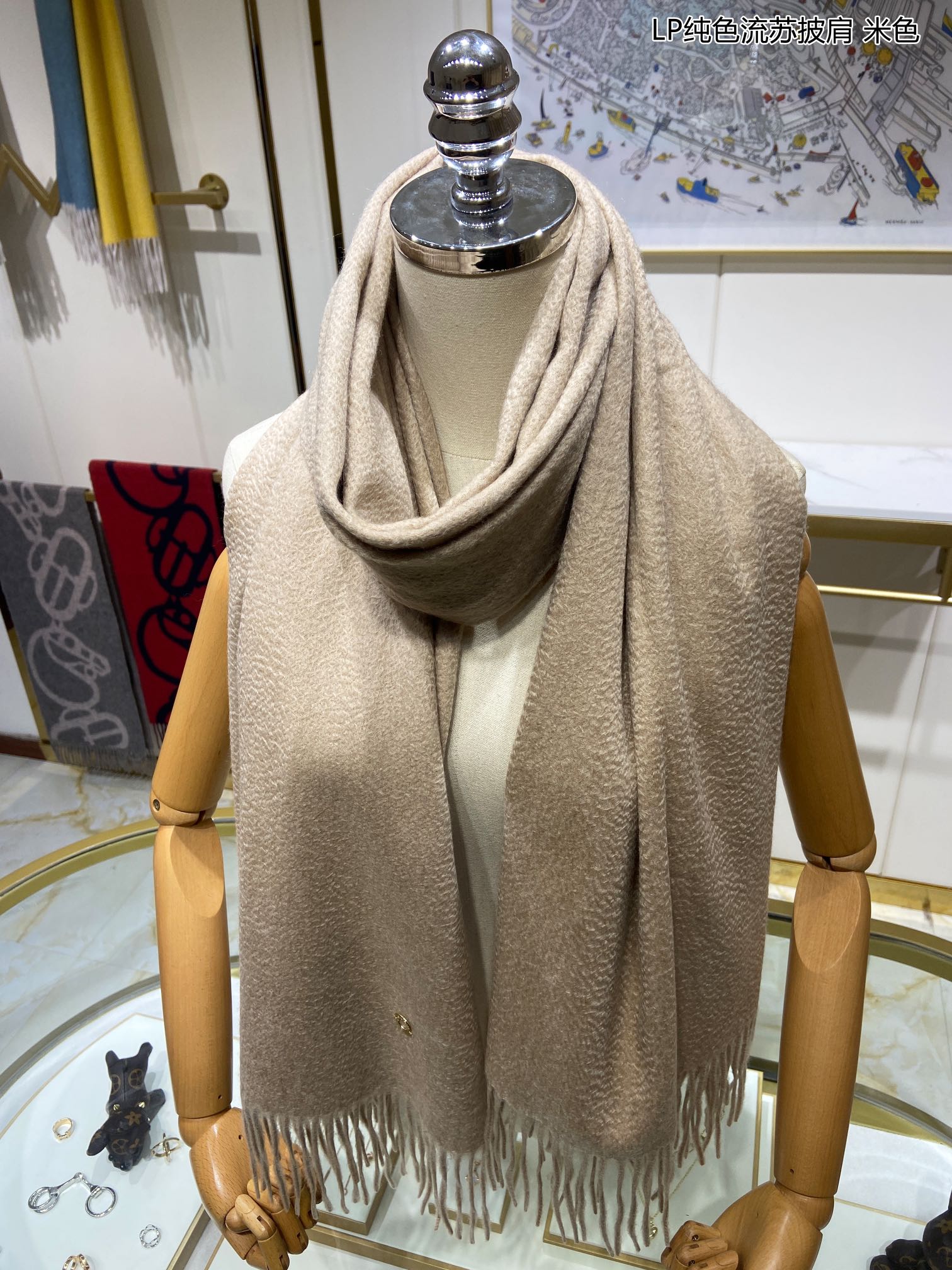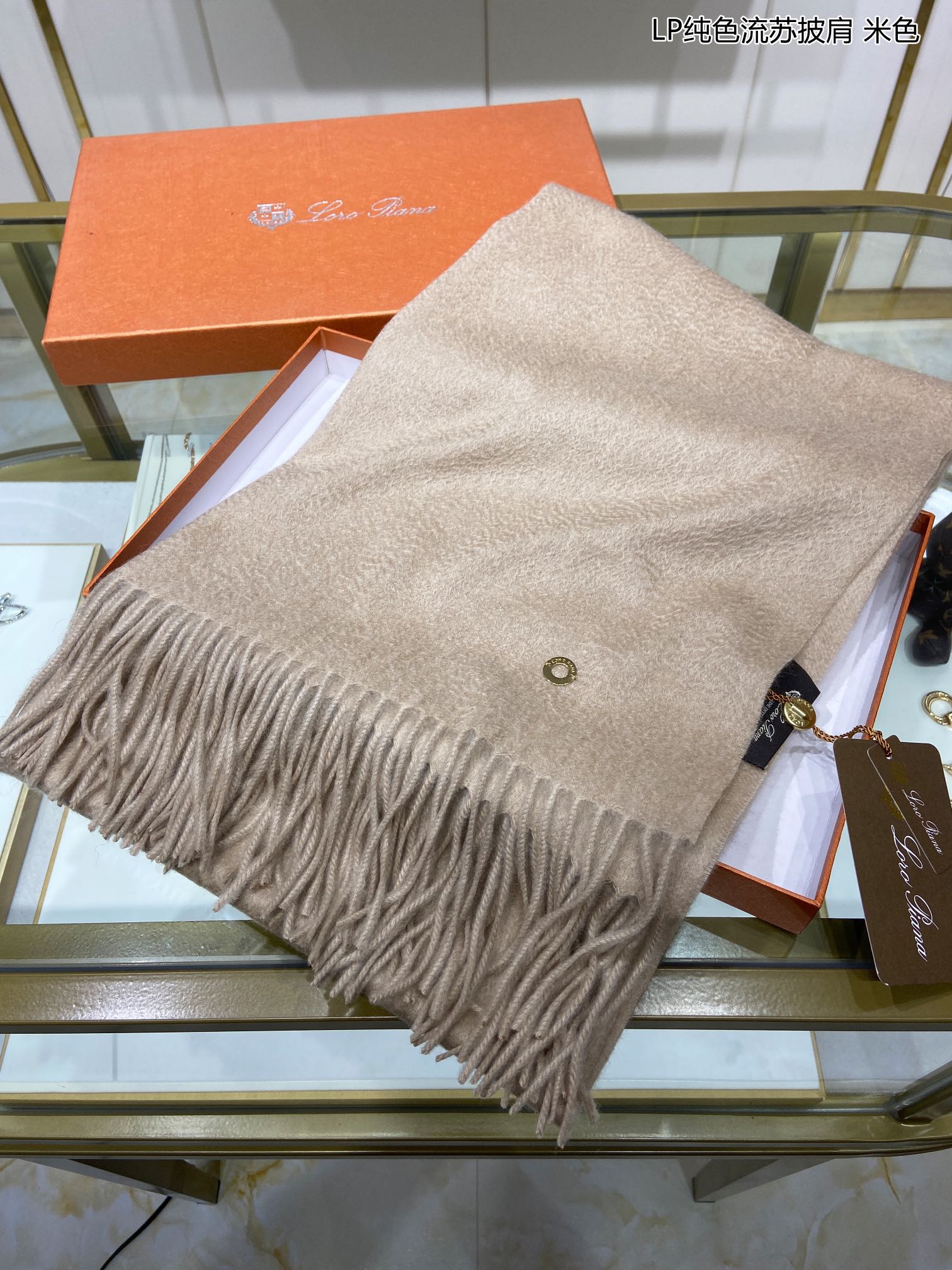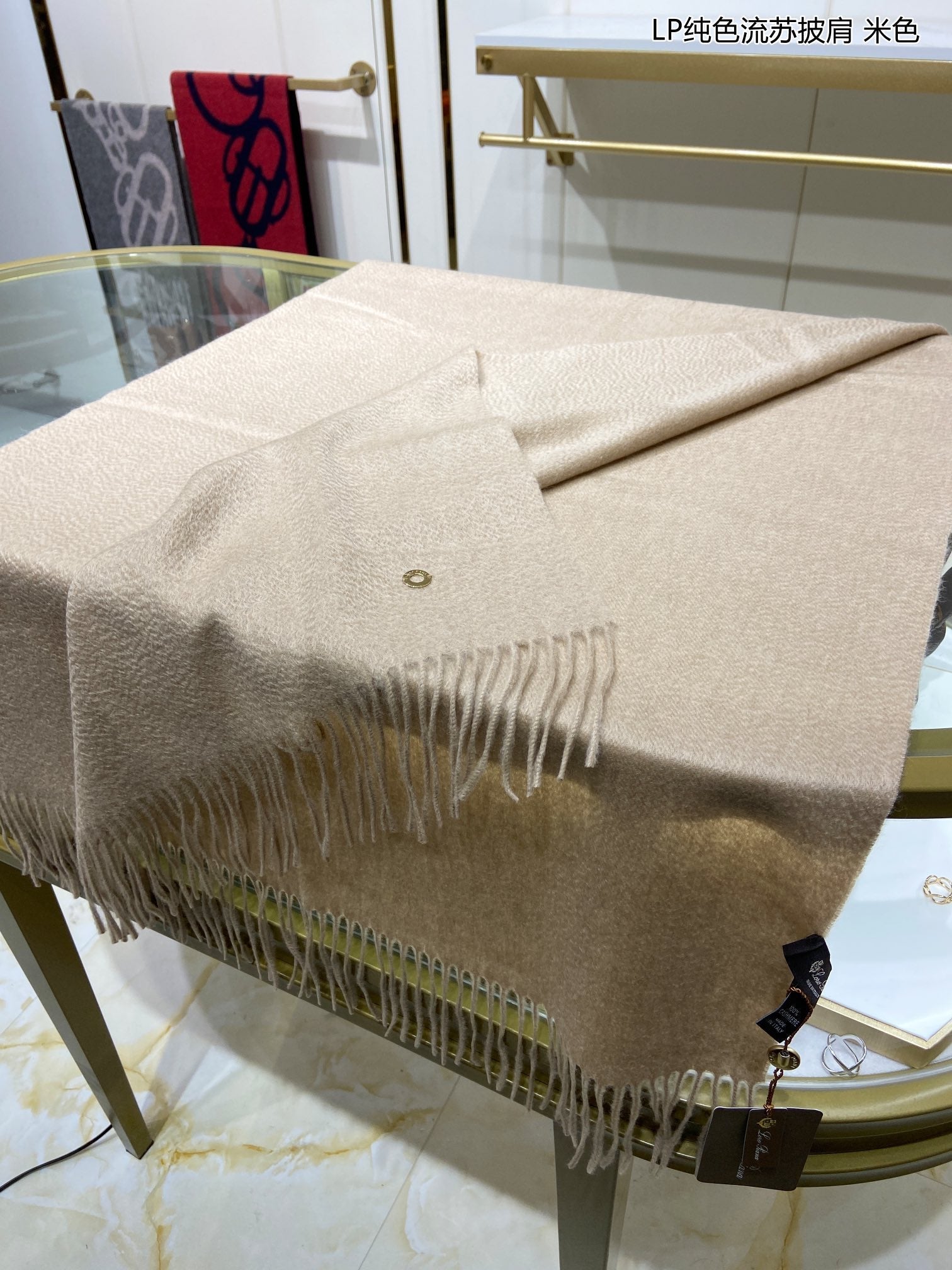 LP Grande Unita Scarf 200 CM In Light Beige Cashmere 645524