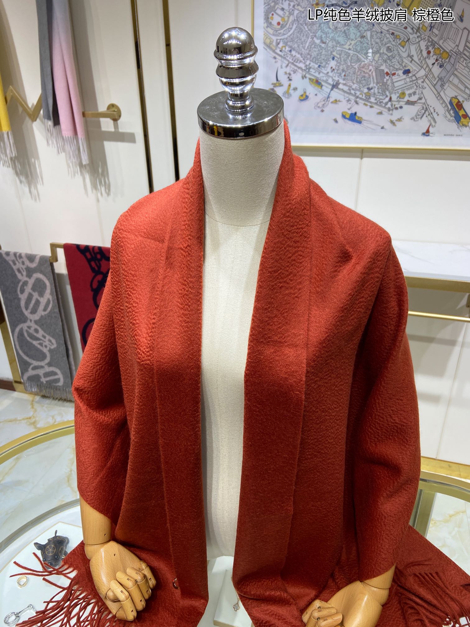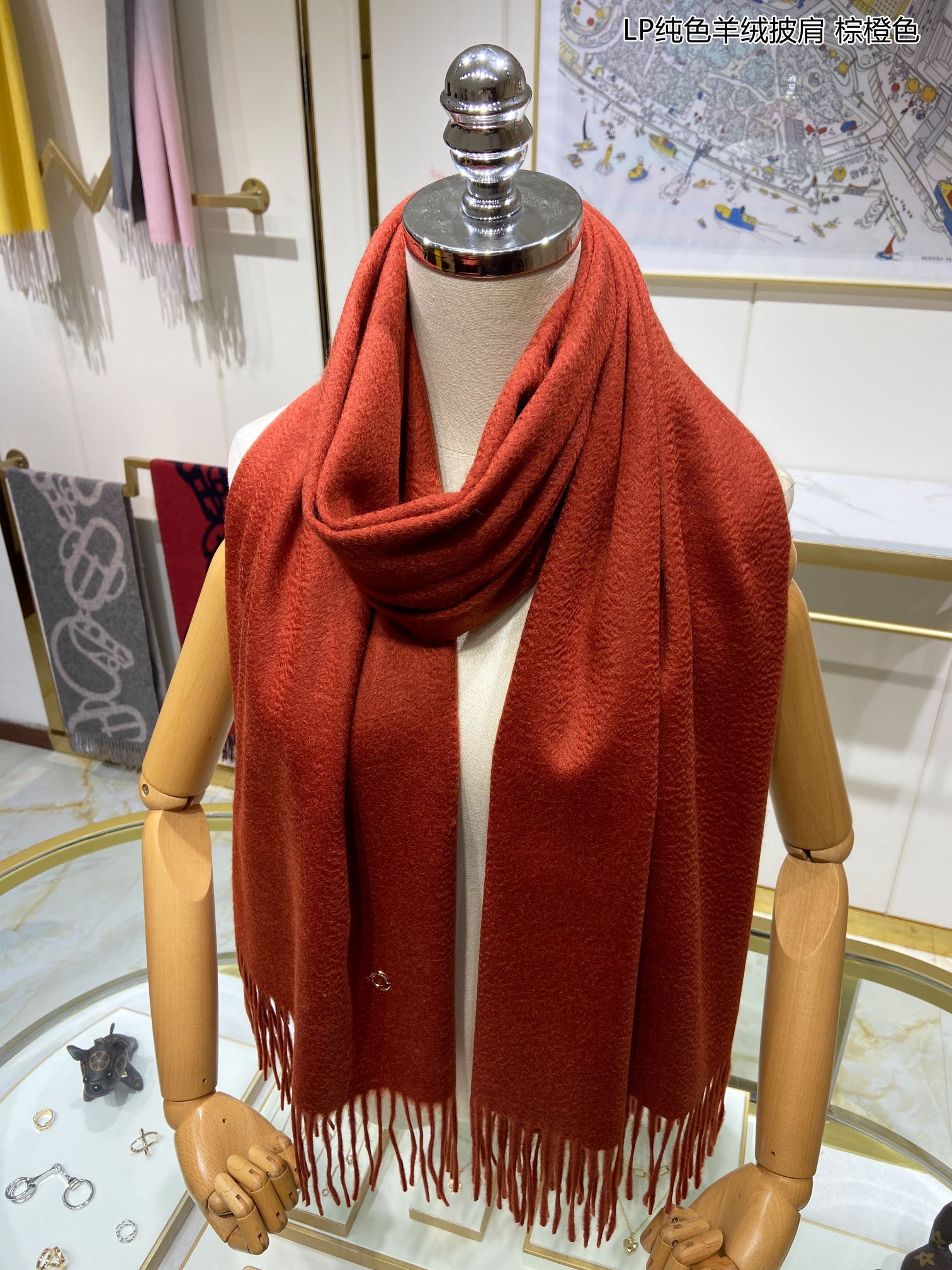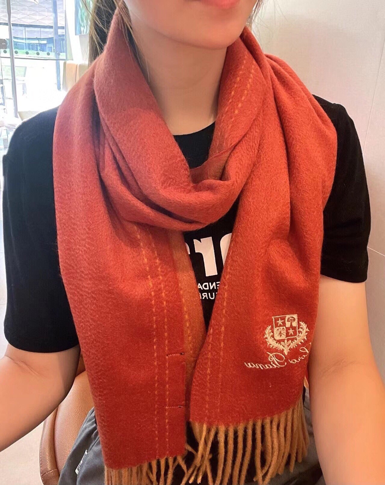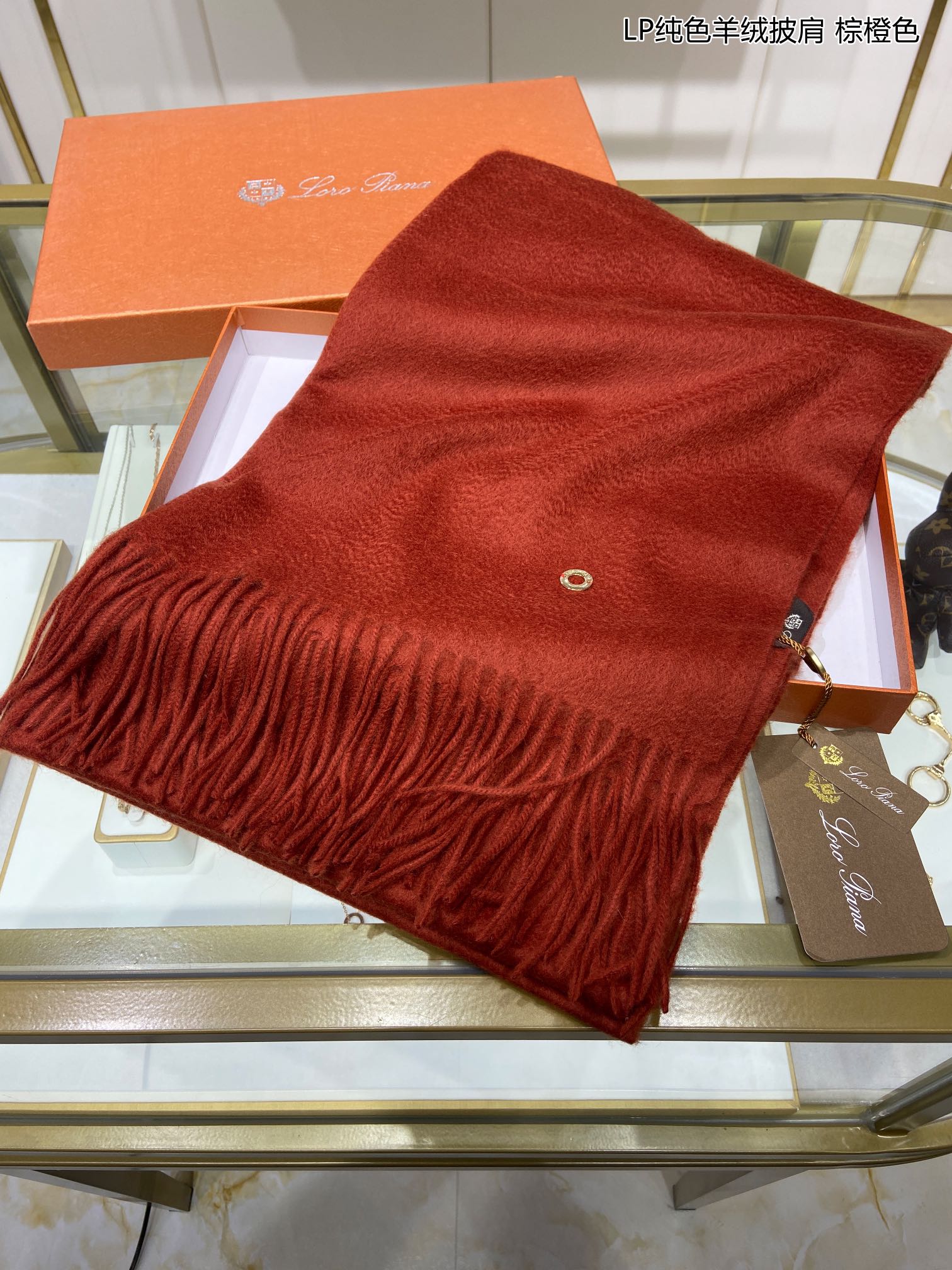 LP Grande Unita Scarf 200 CM In Brown Orange Cashmere 378391