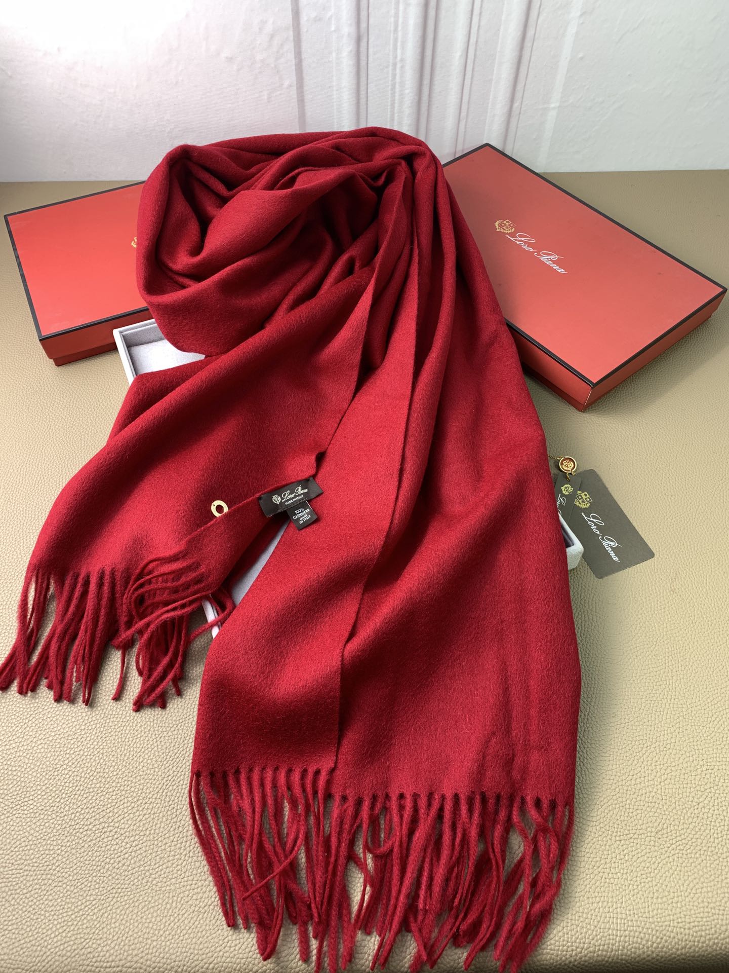LP Grande Unita Scarf 200 CM In Gac Red Cashmere 645518