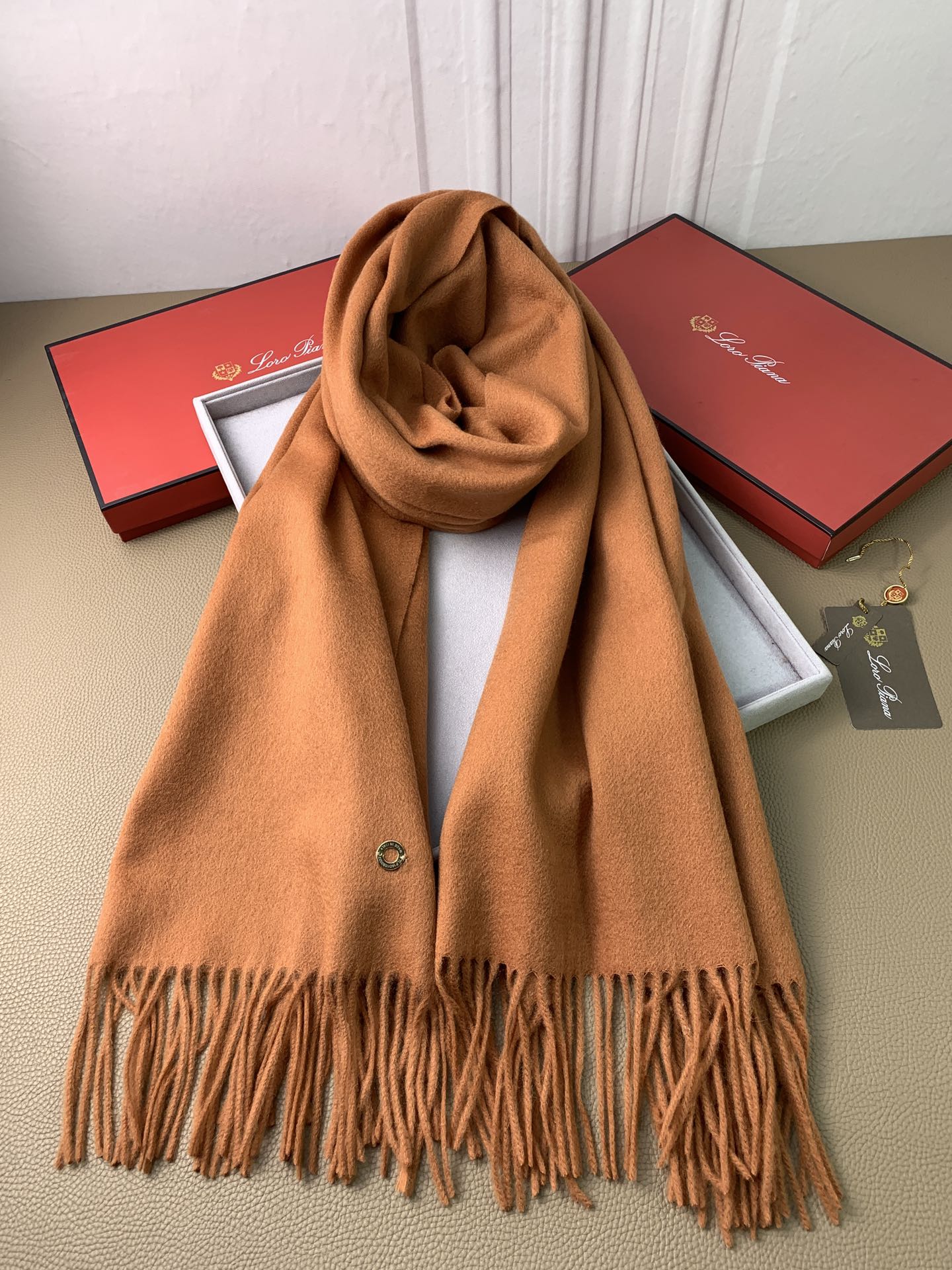 LP Grande Unita Scarf 200 CM In Caramel Cashmere 645520