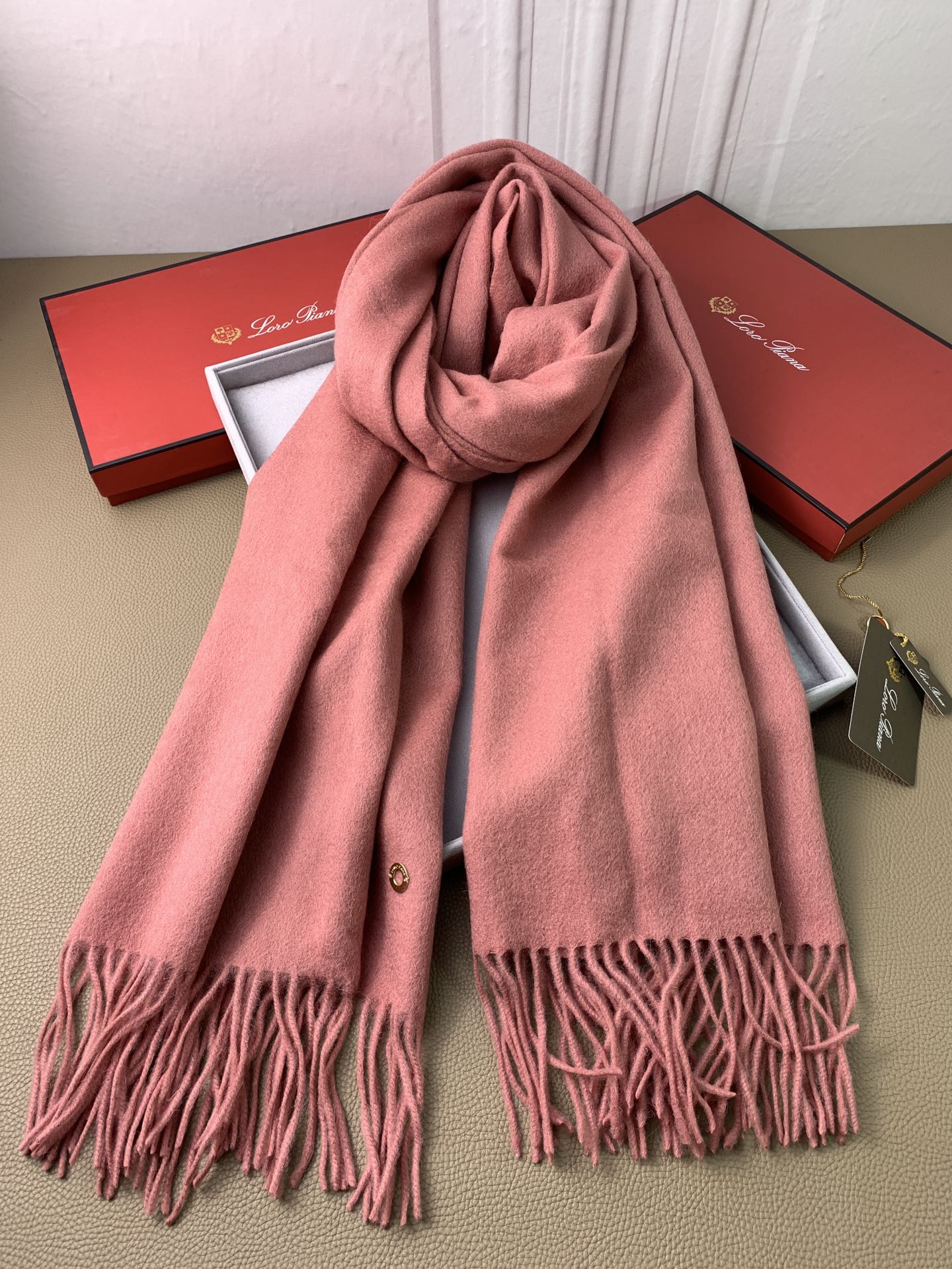 LP Grande Unita Scarf 180 CM In Coral Pink Mix Light Pink Cashmere 193786