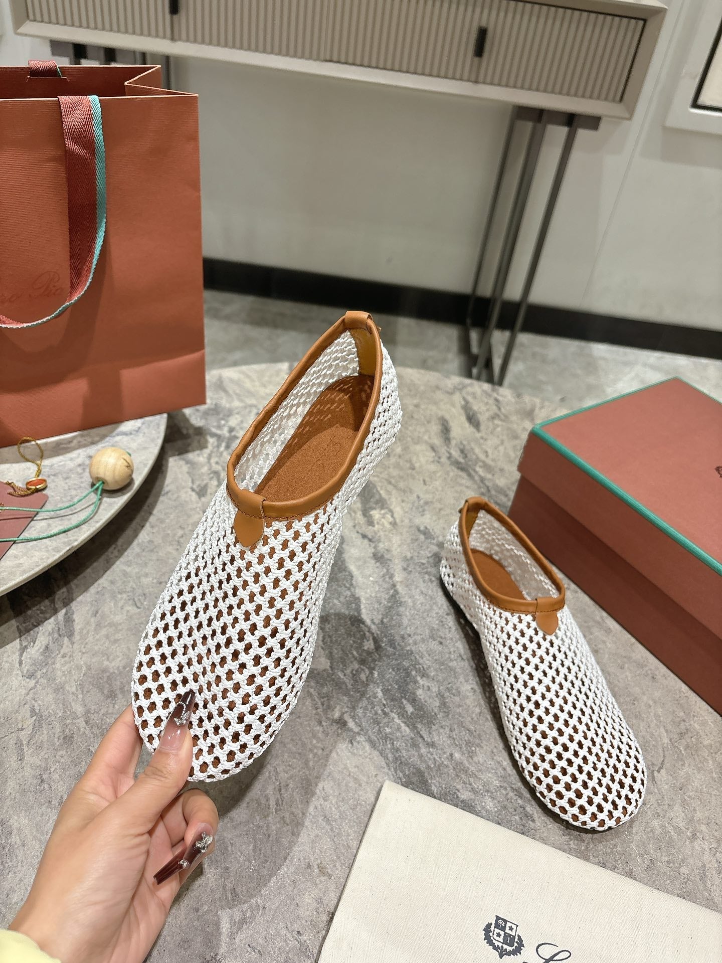 LP hollow knit ballet flats white original leather 379025