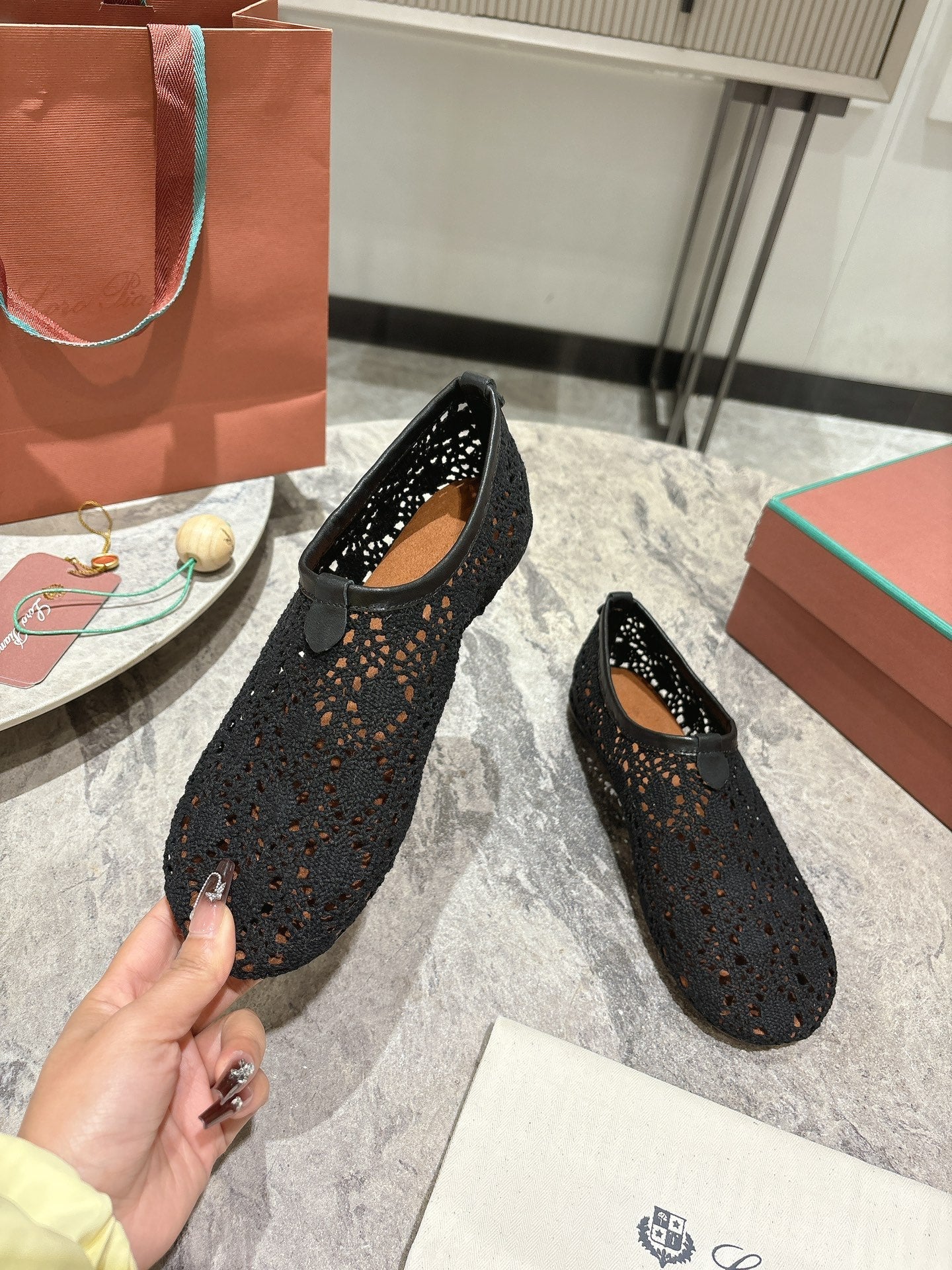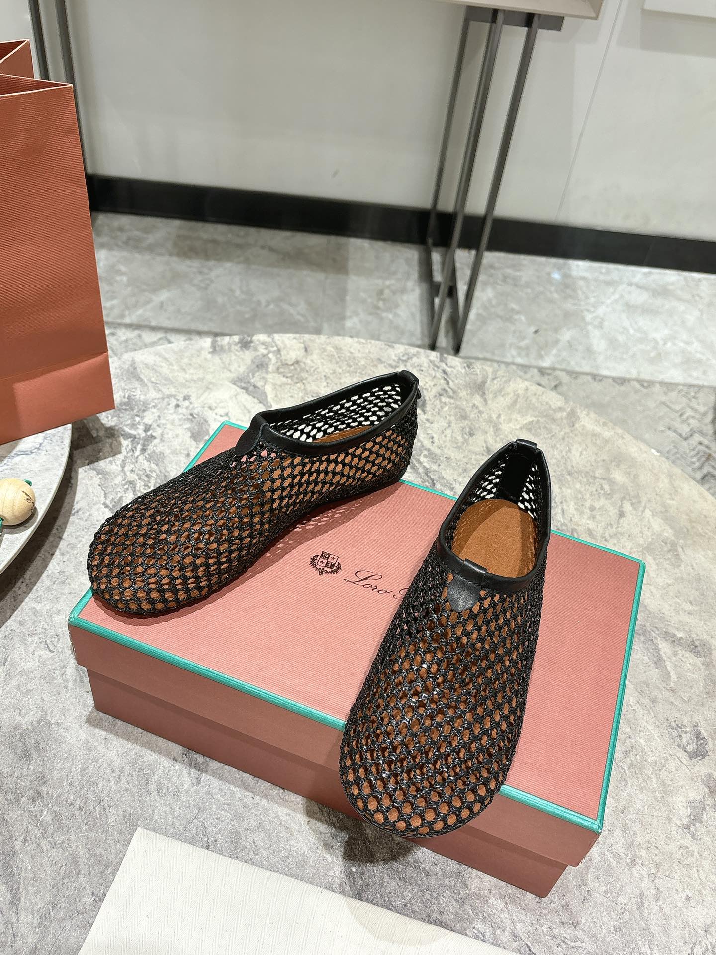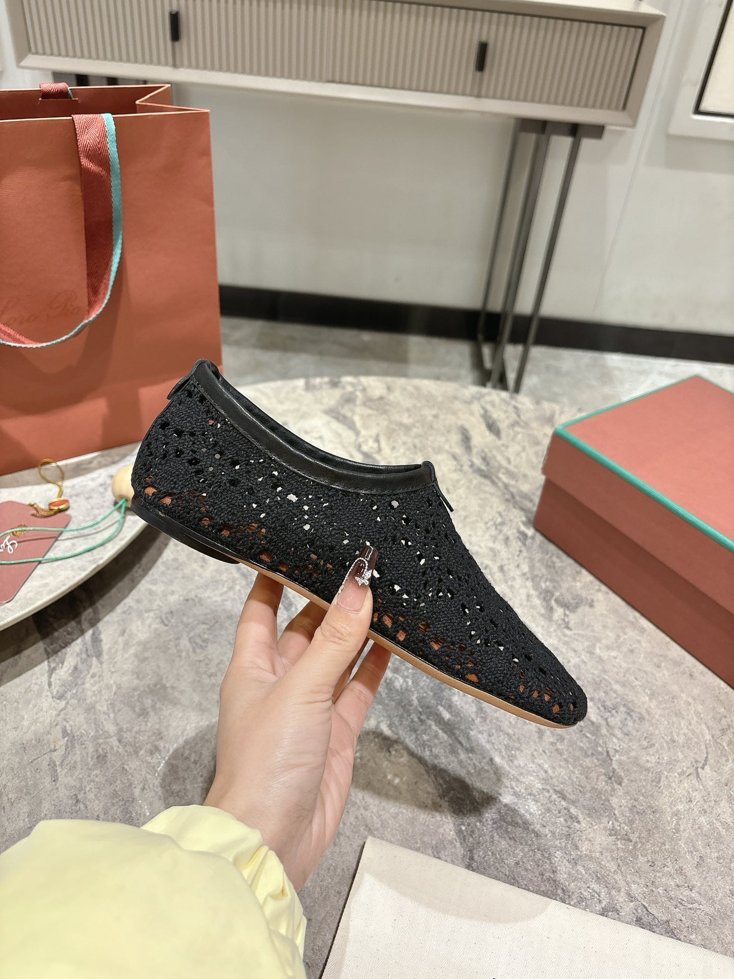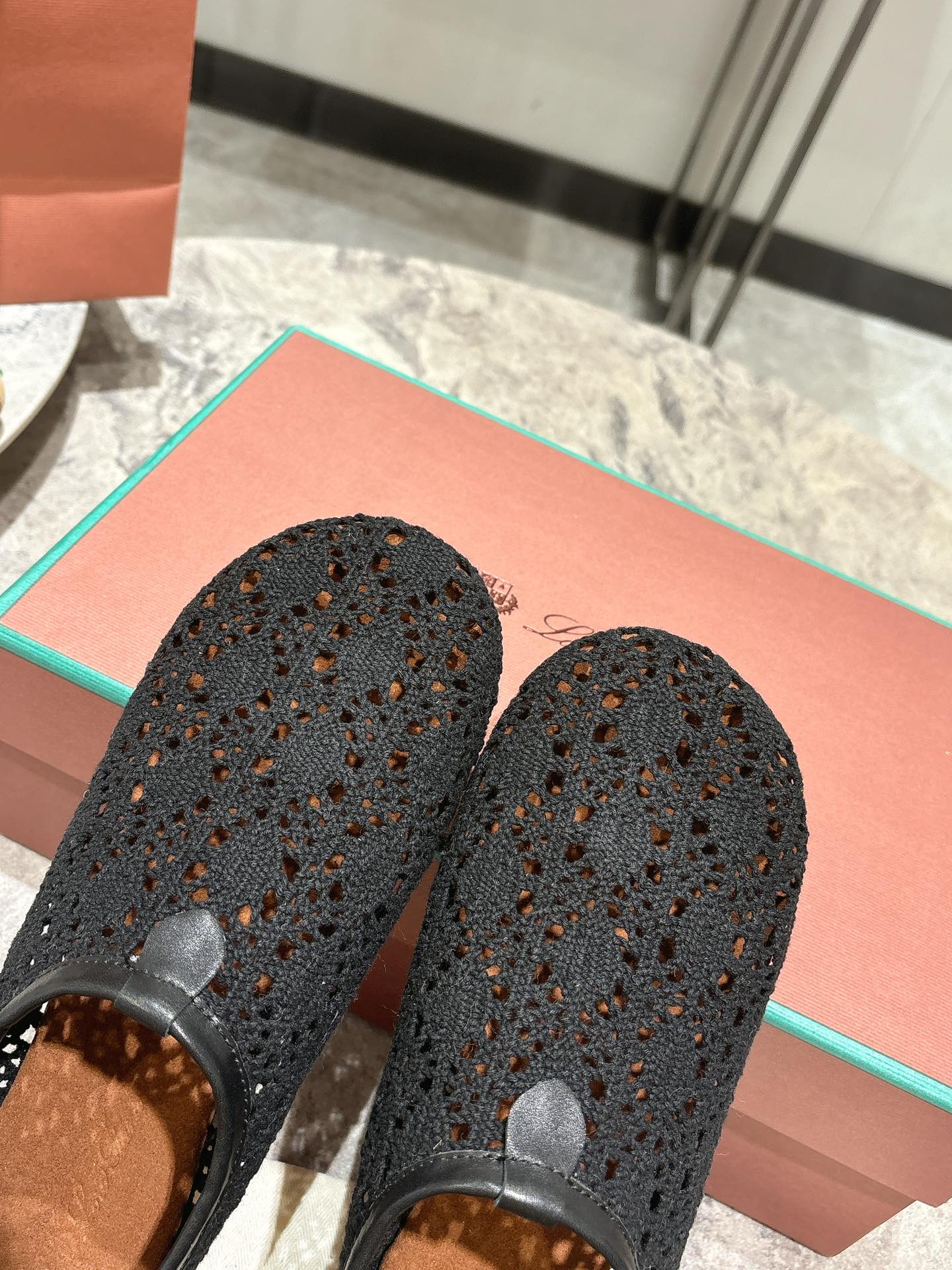 LP hollow knit ballet flats black original leather 379023