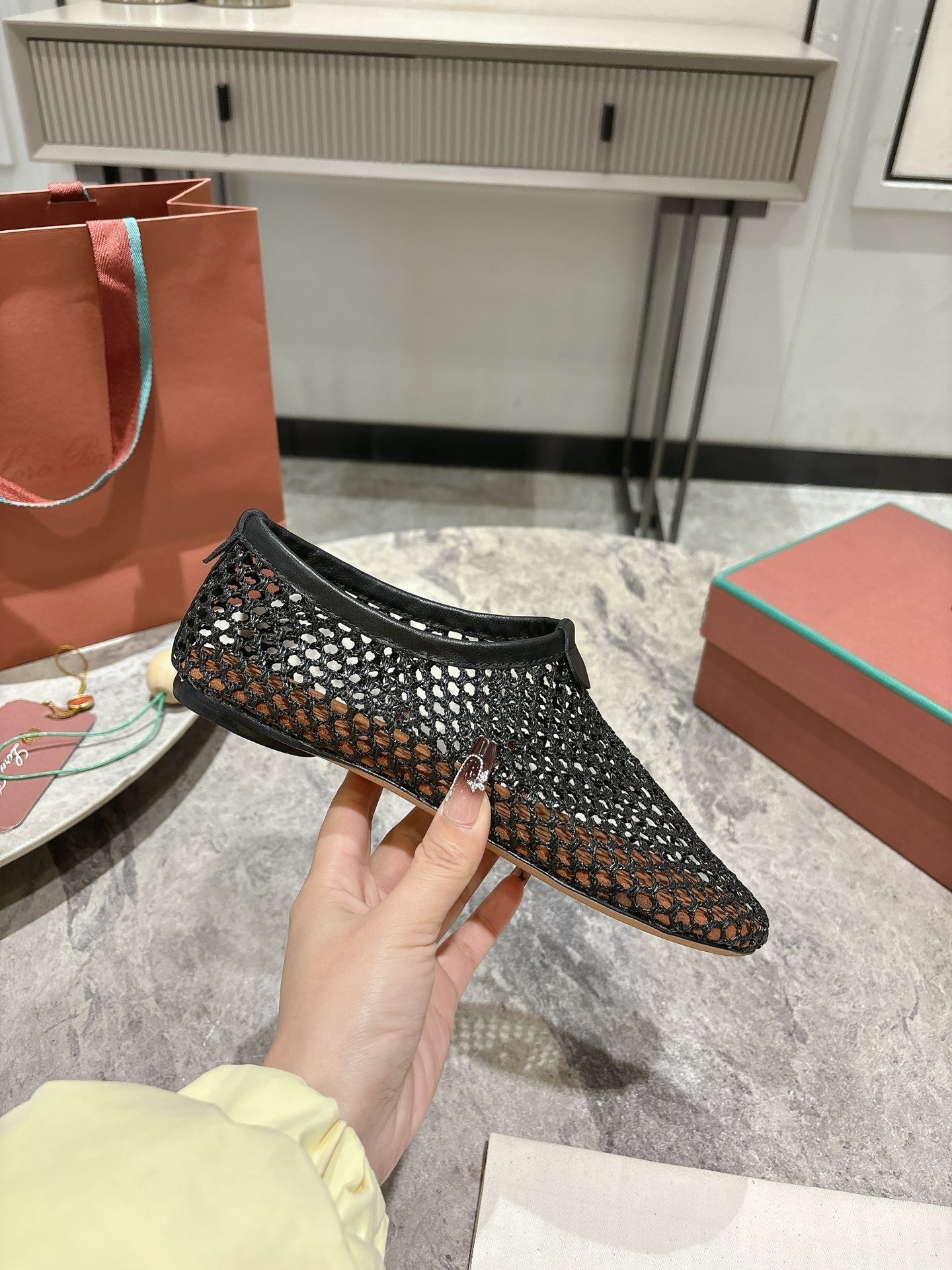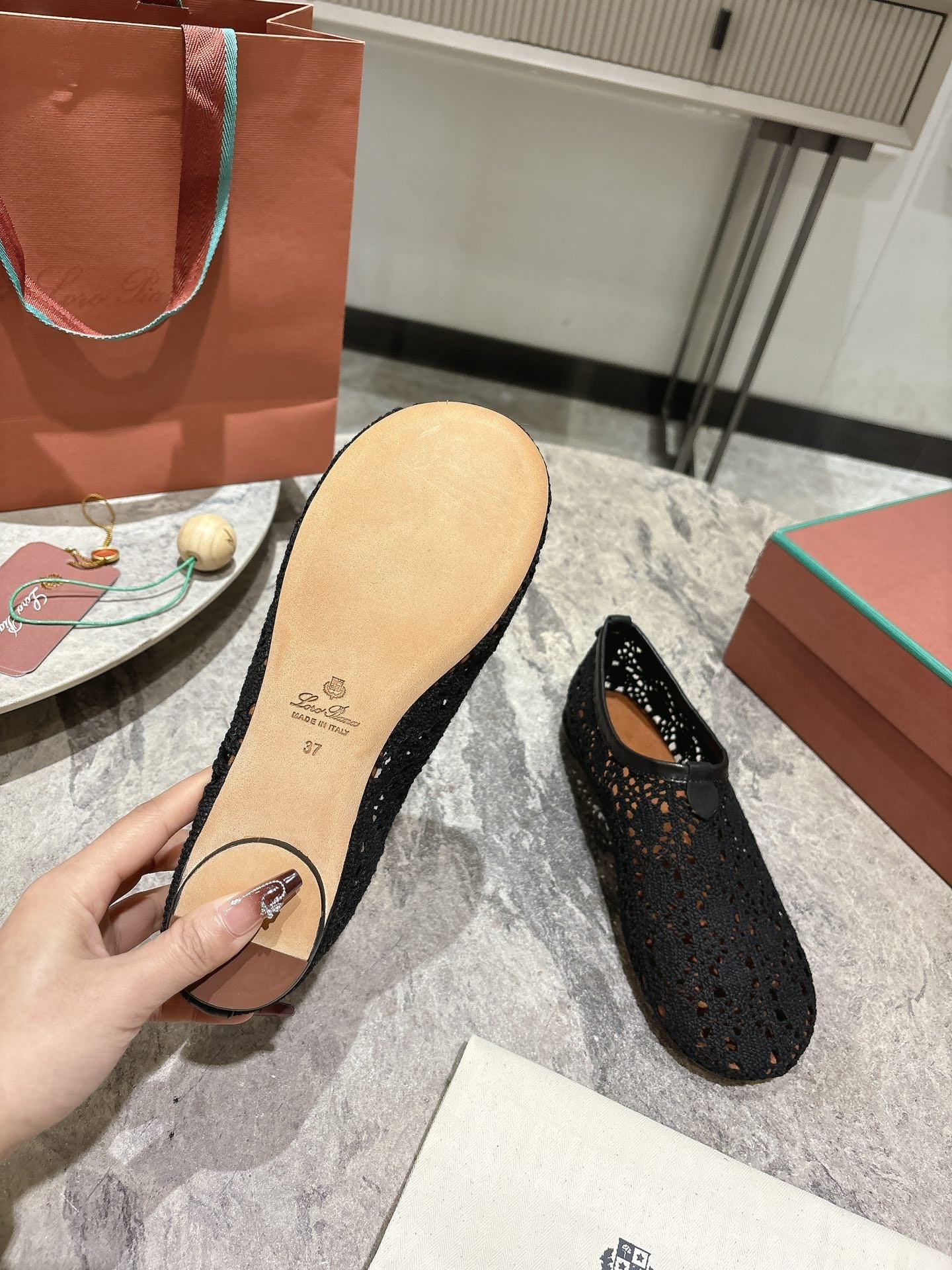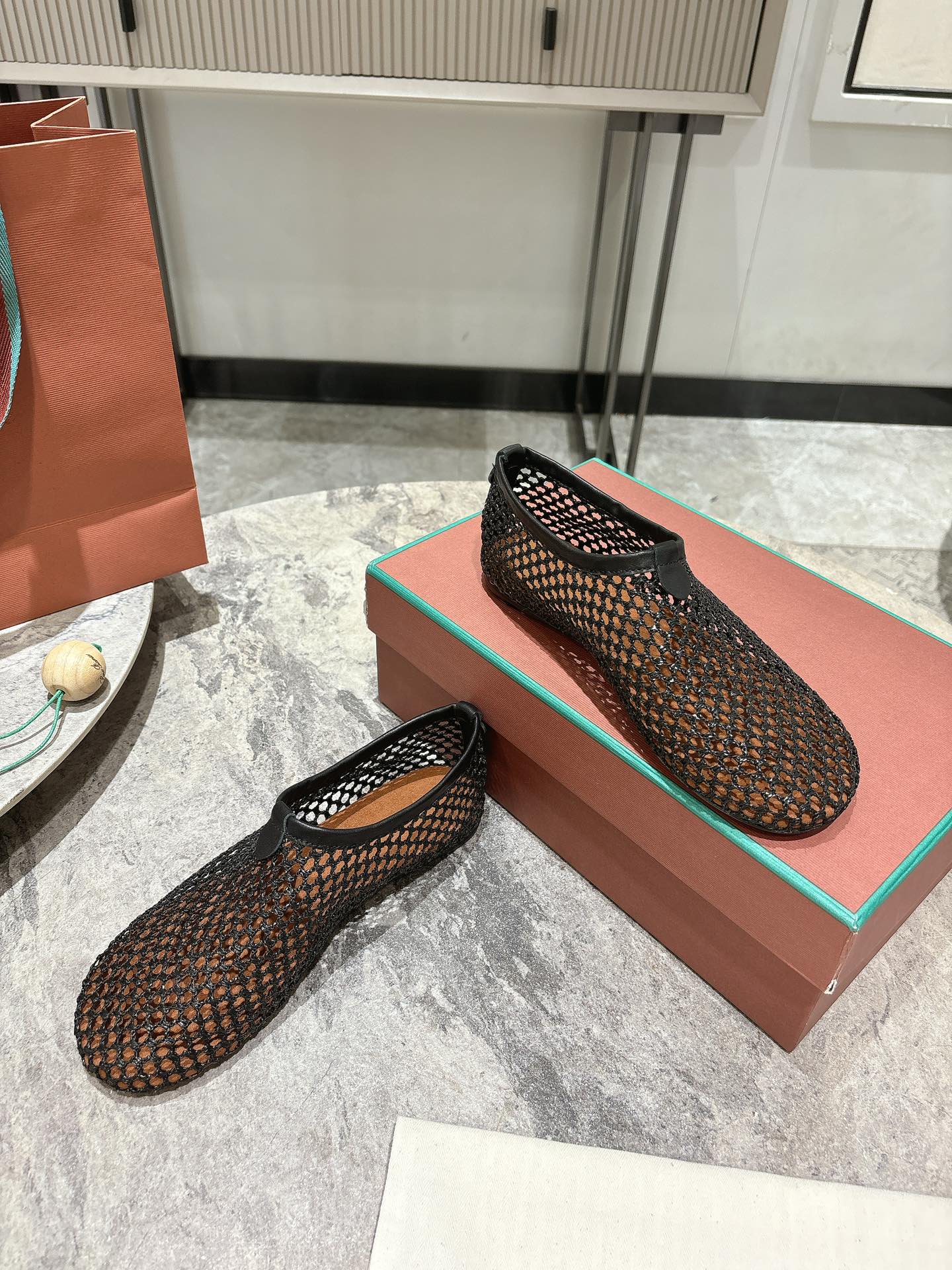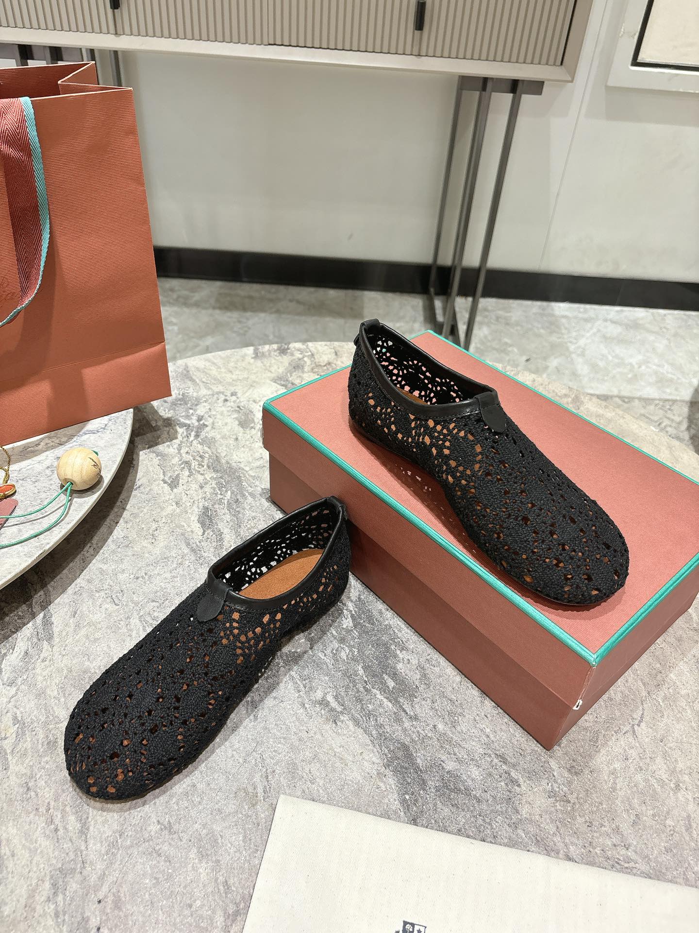 LP hollow knit ballet flats black original leather 379023