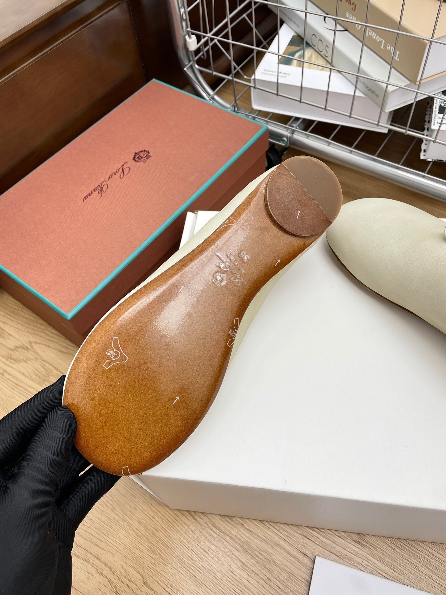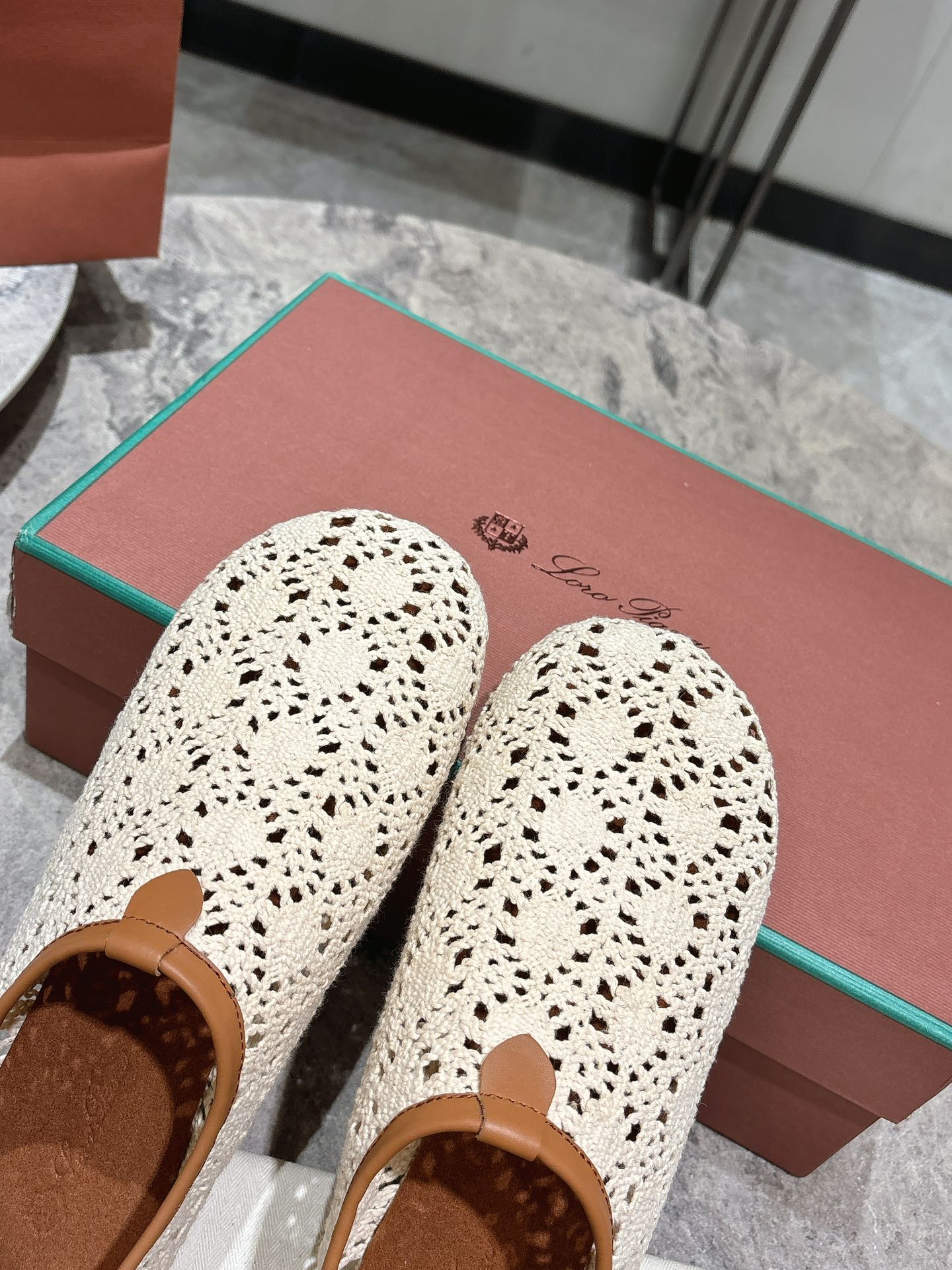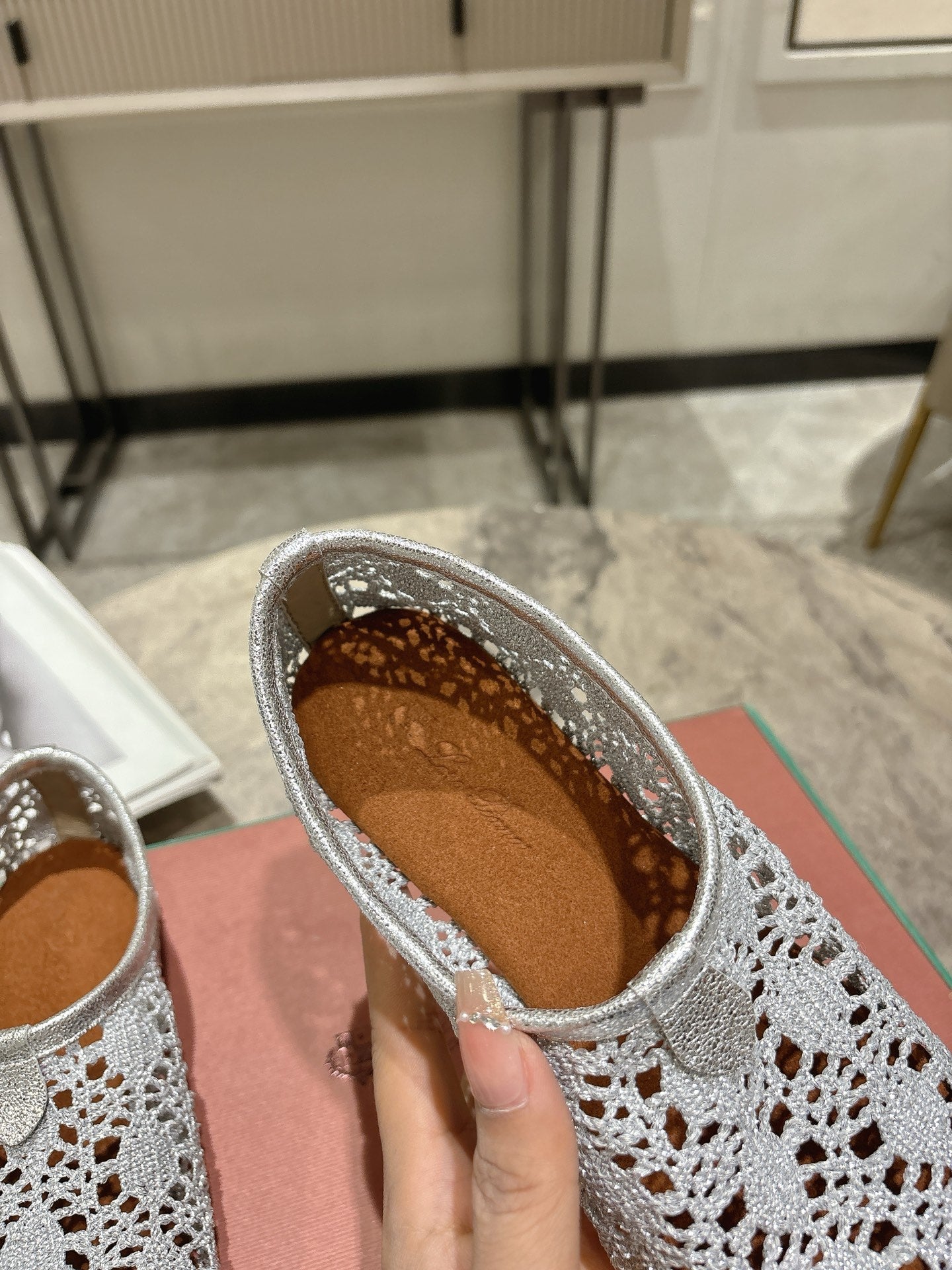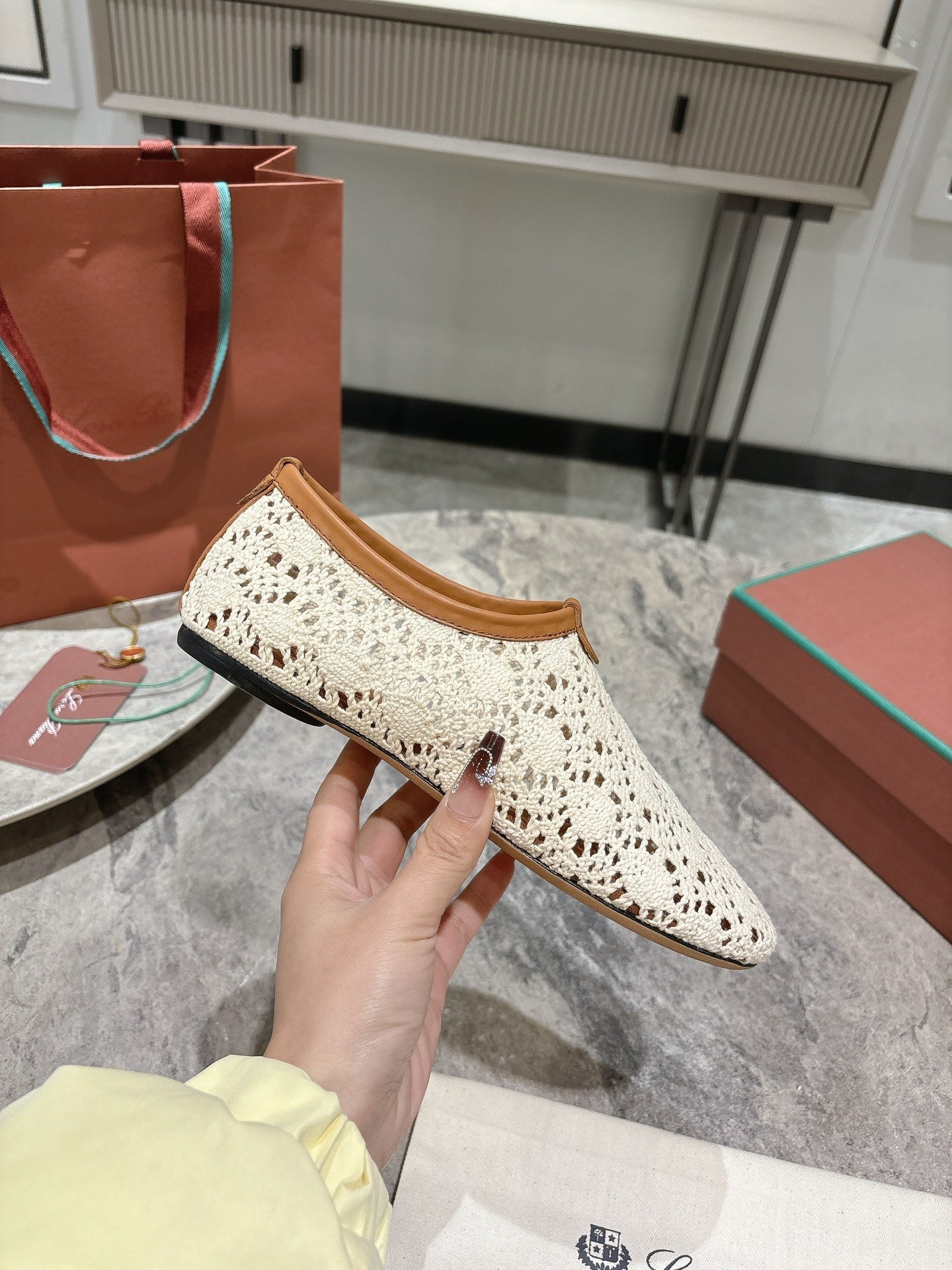 LP hollow knit ballet flats beige original leather 379024
