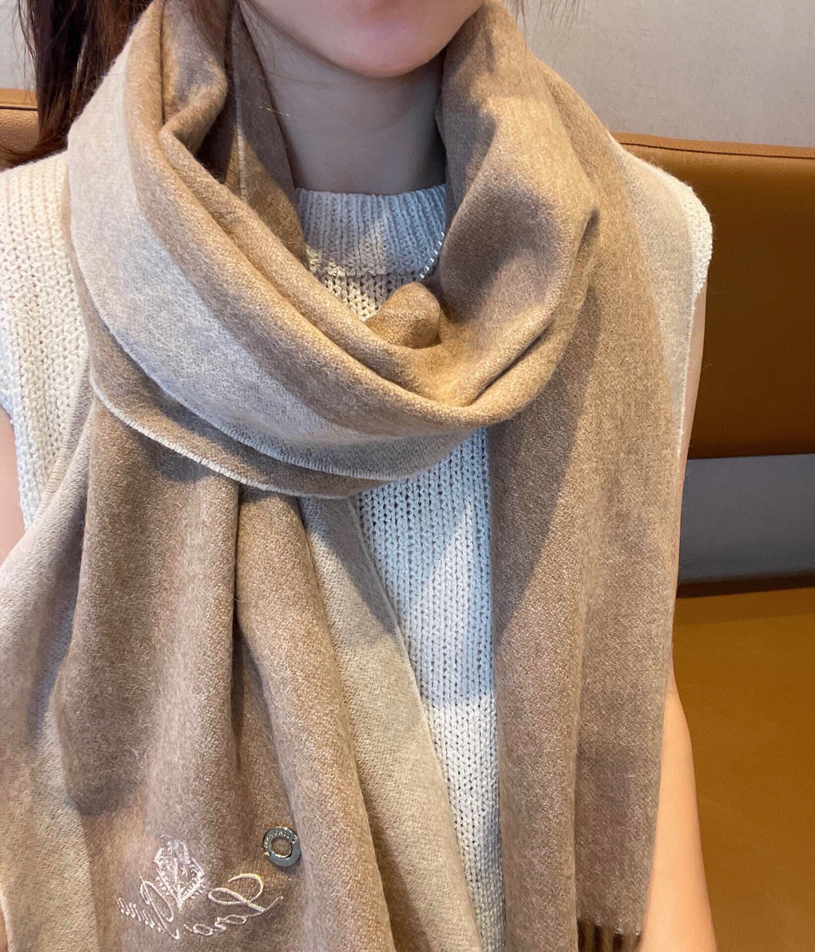 LP Grande Unita Scarf 190 CM In Dark Beige Gradient Brown Earth Cashmere 430414