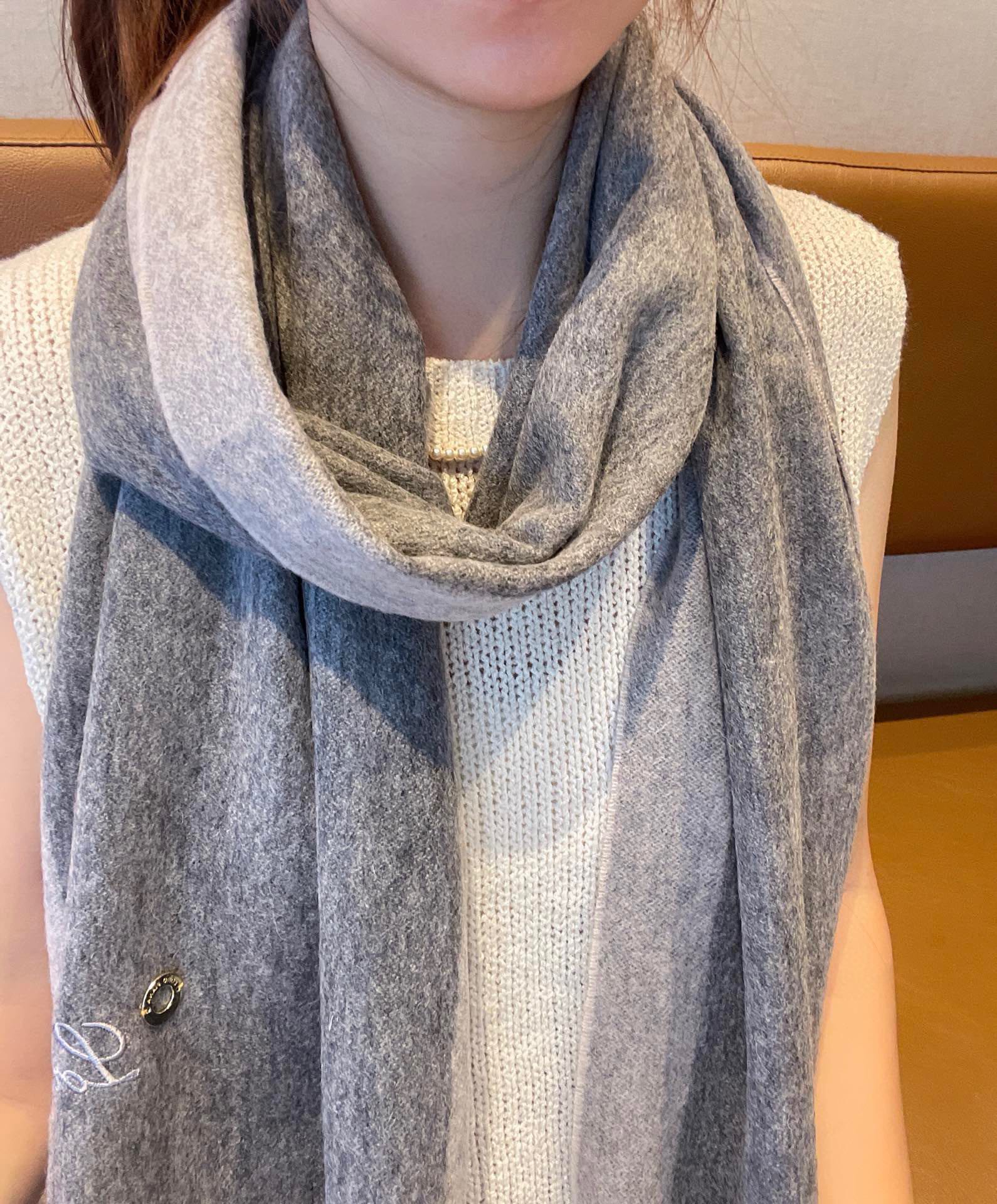 LP Grande Unita Scarf 180 CM In Light Grey With Light Brown Cashmere 175044