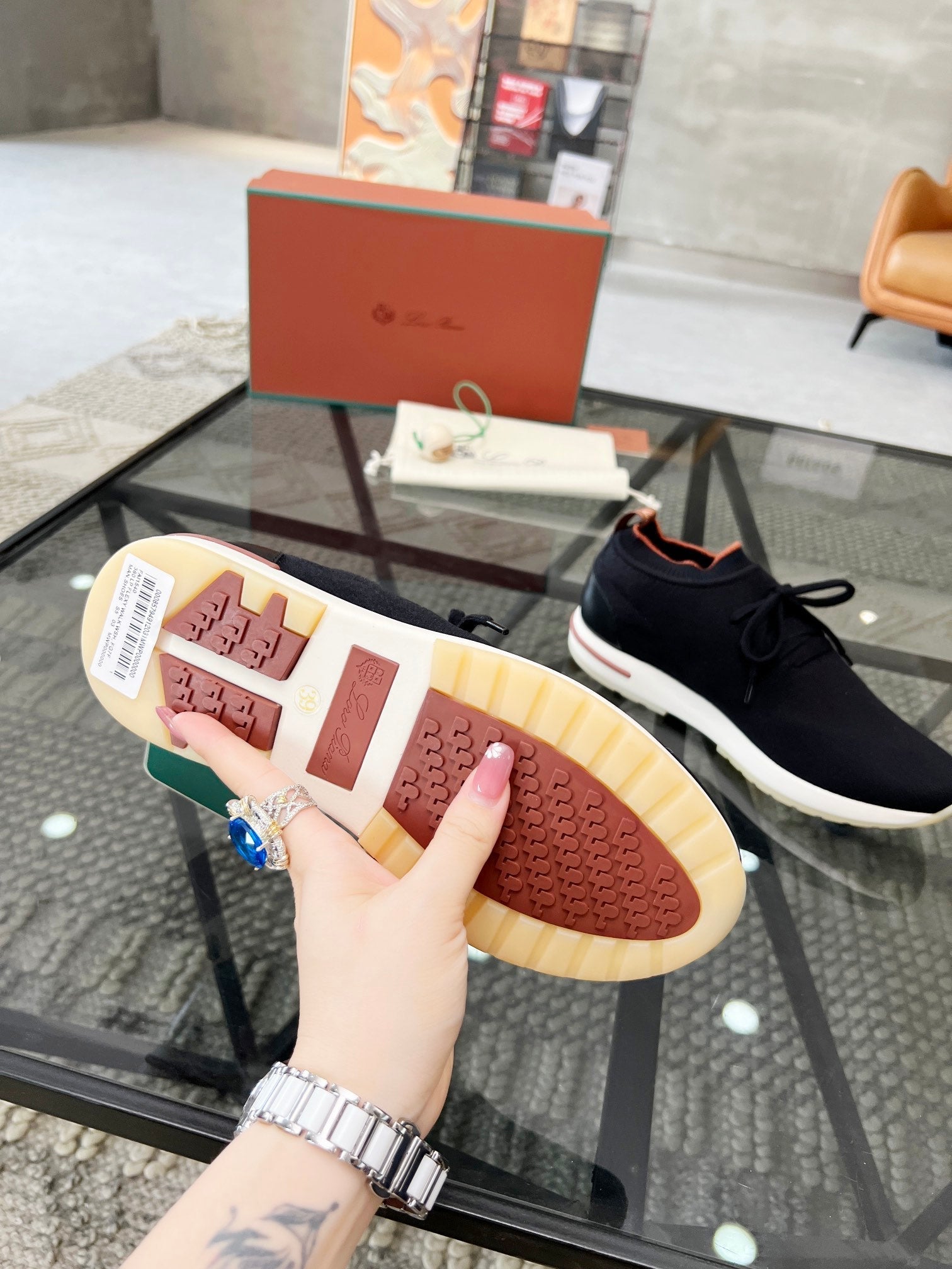 LP lady Flexy Walk Sneaker Black mix Orange Wool And Calfskin 310451