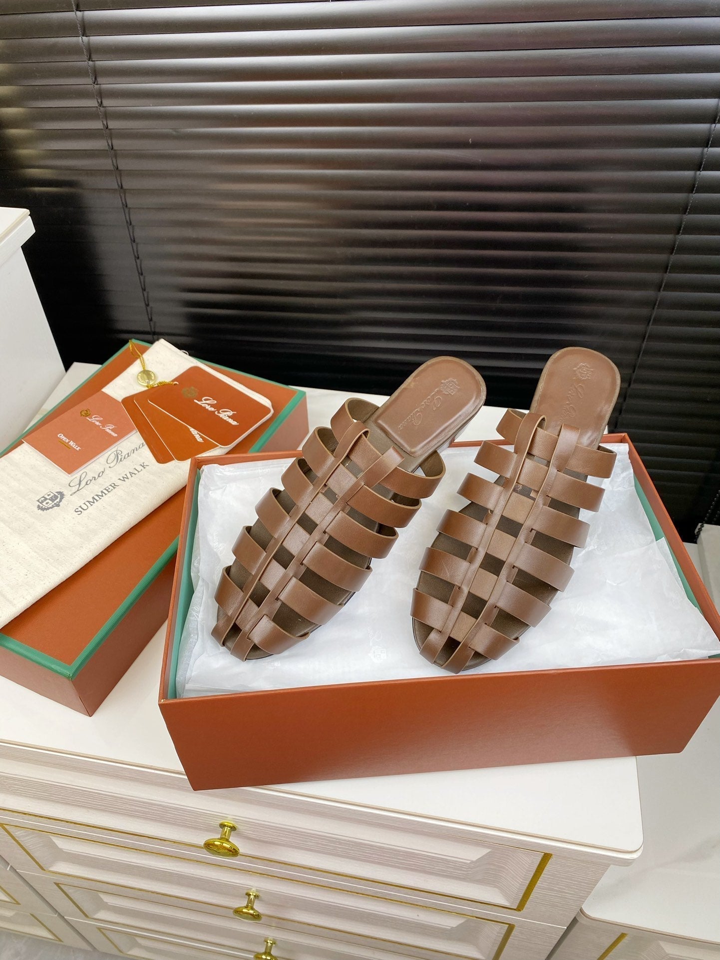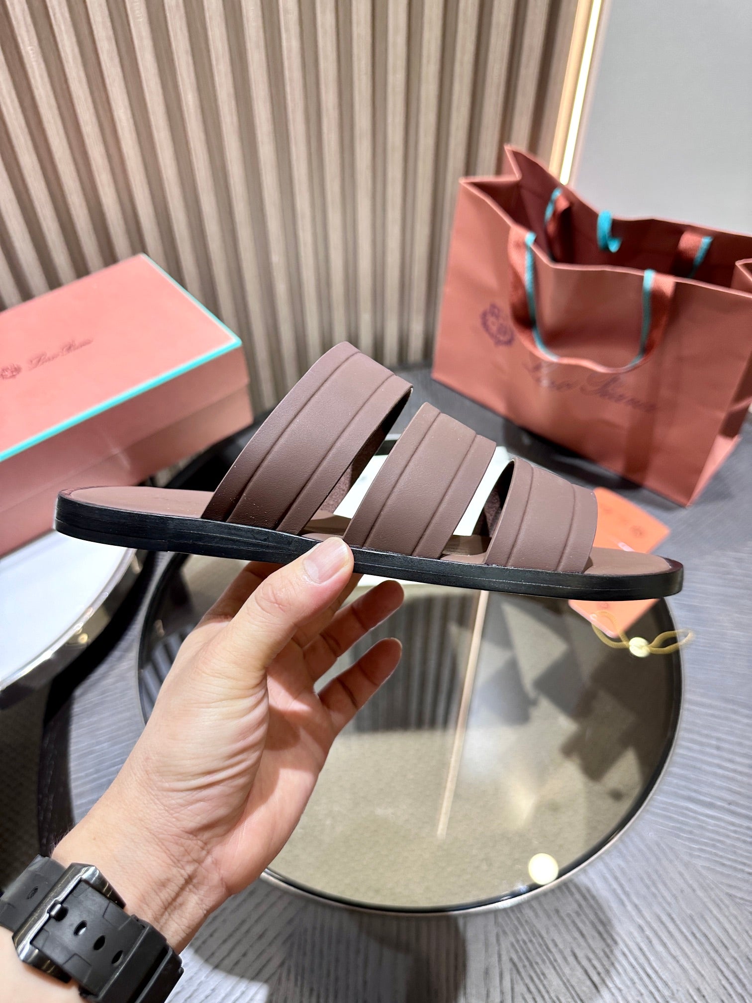 LP INTERWOVEN STRAPS SLIPPERS CHOCOLATE CALFSKIN