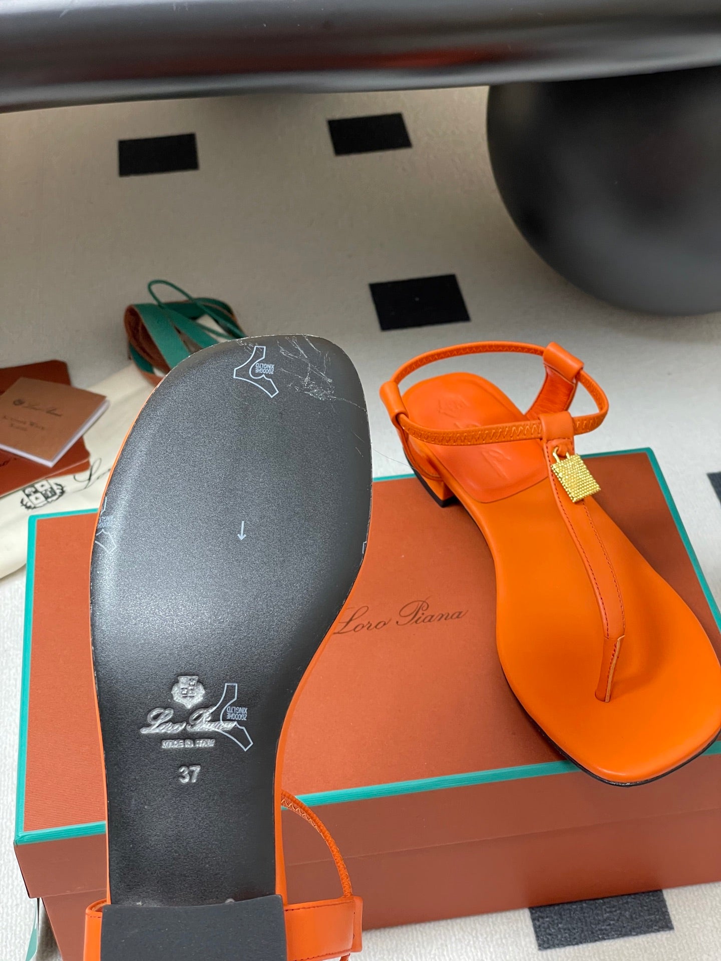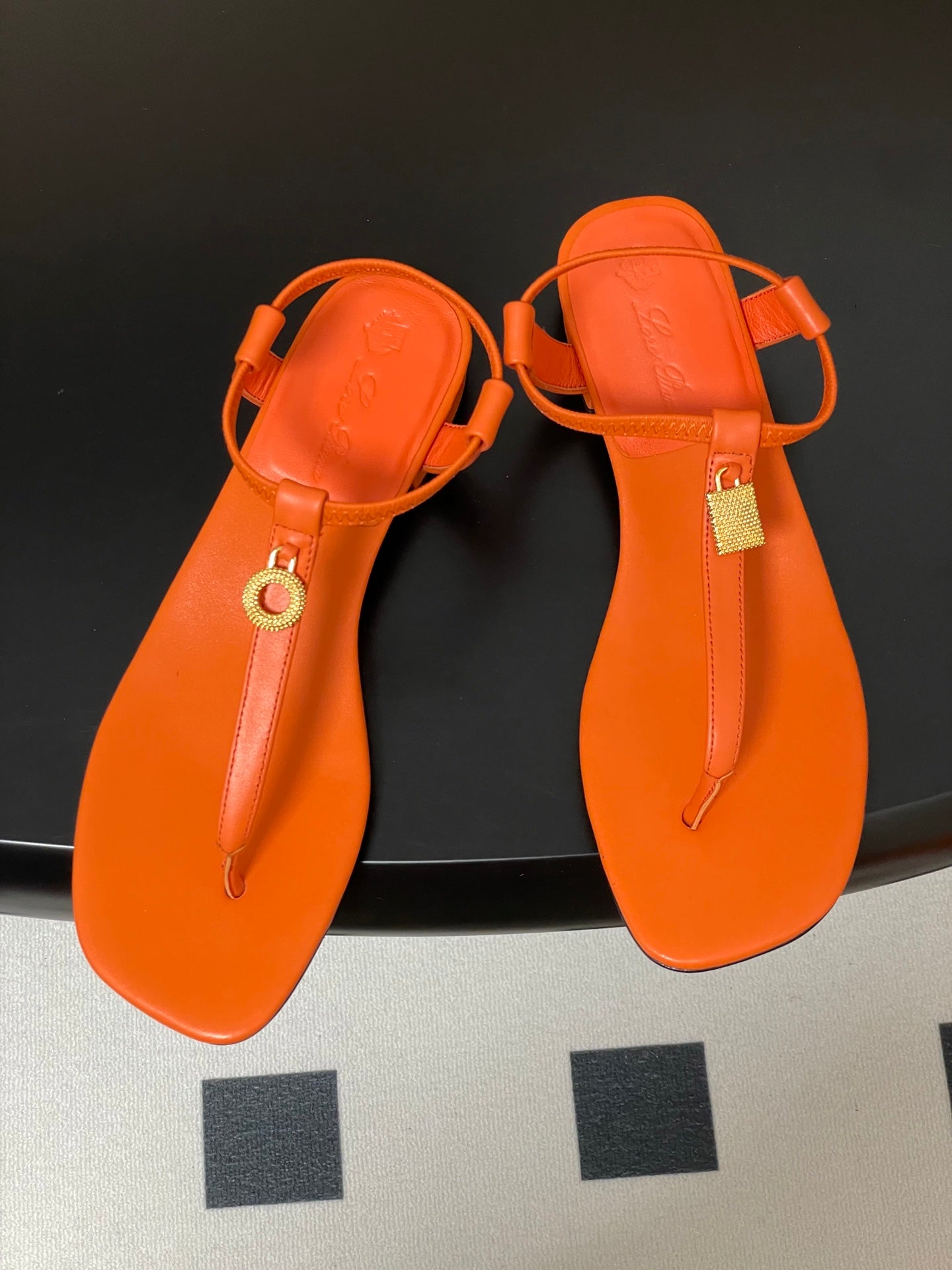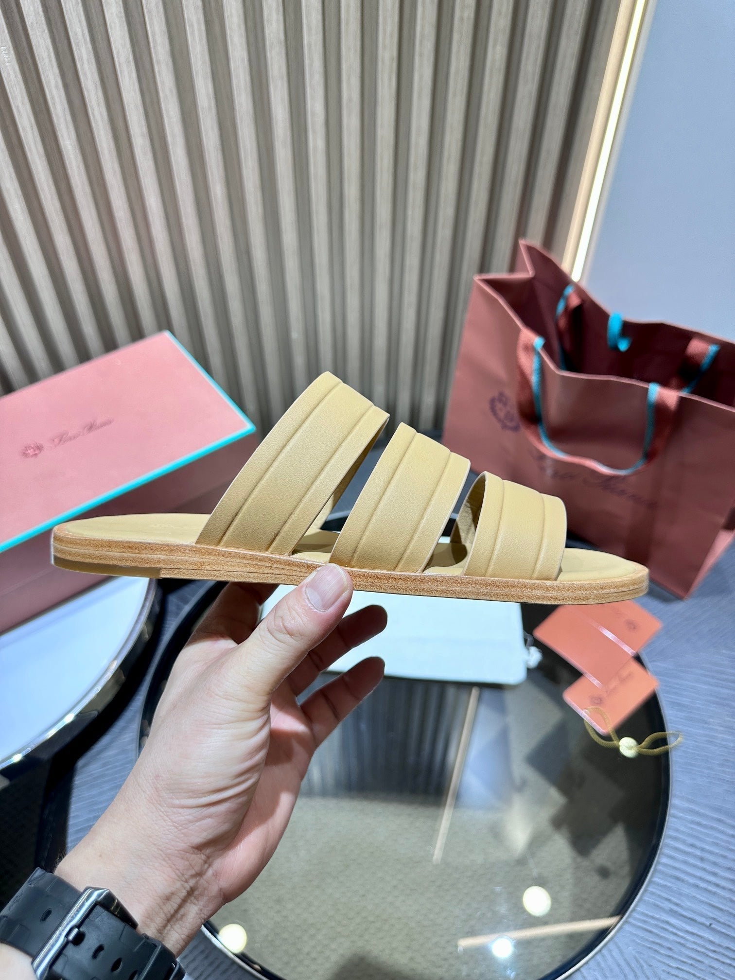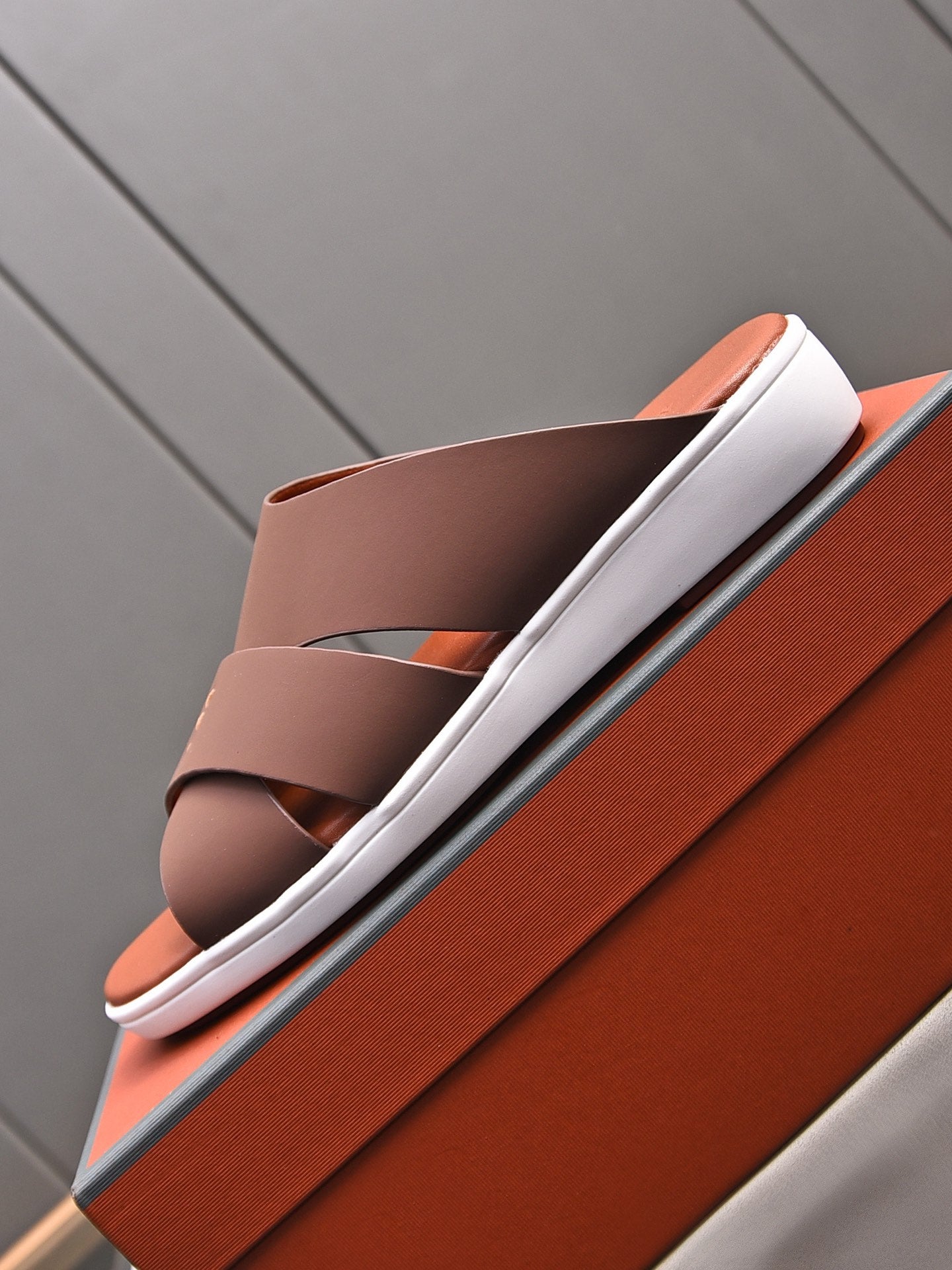 LP INTERWOVEN STRAPS SLIPPERS FIRE CALFSKIN
