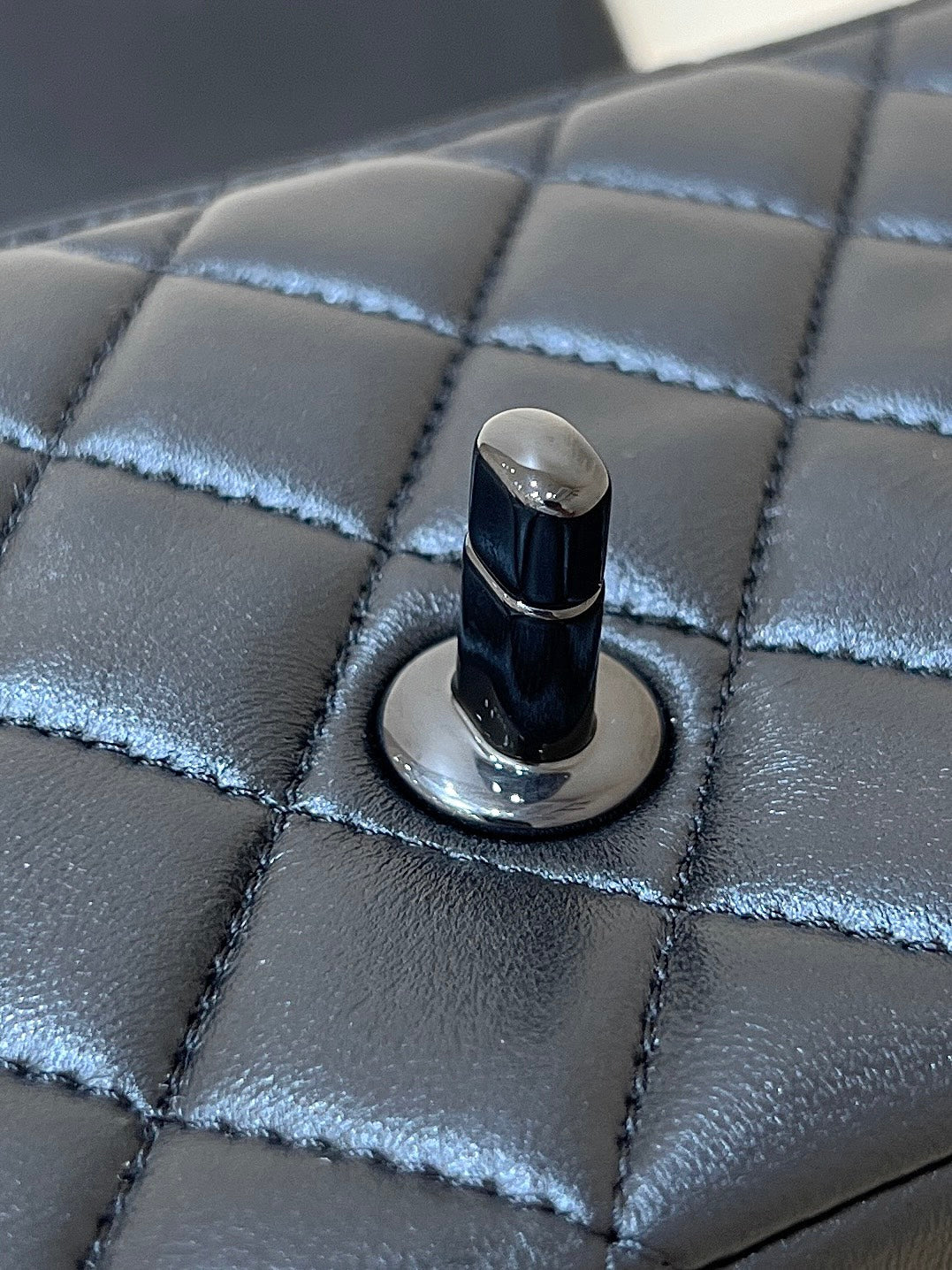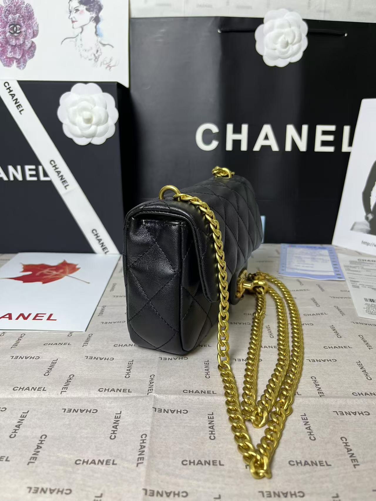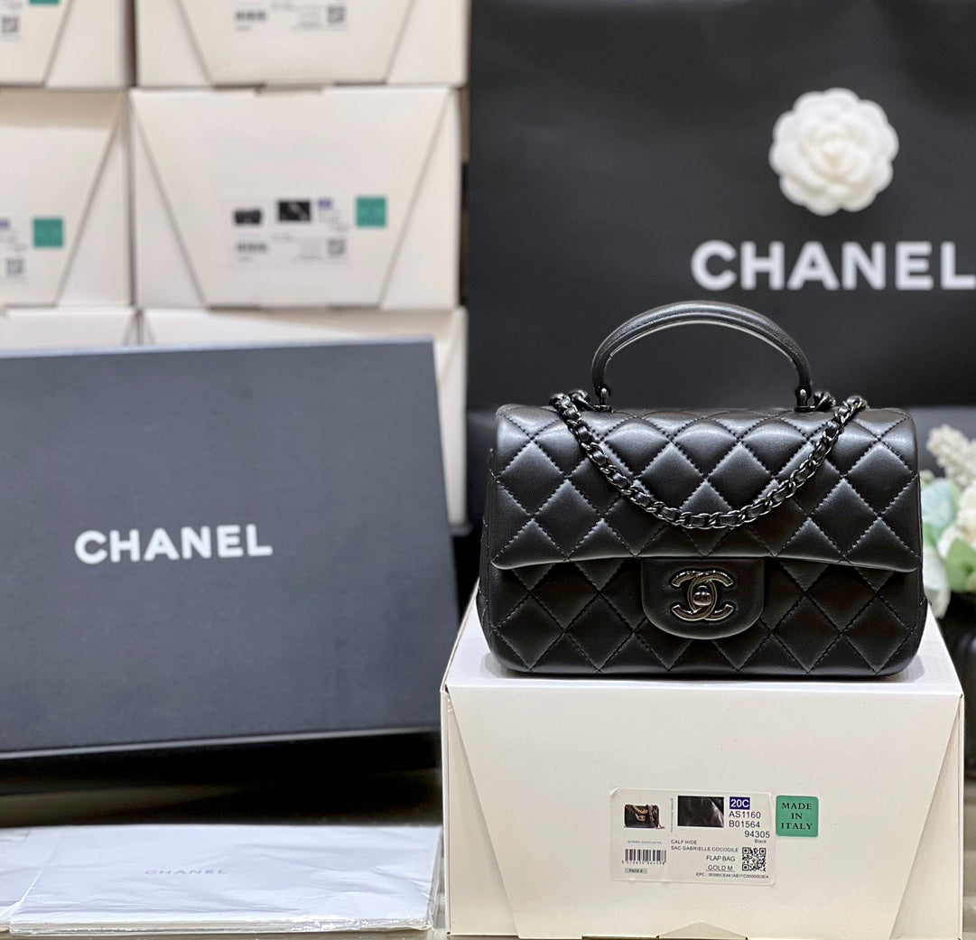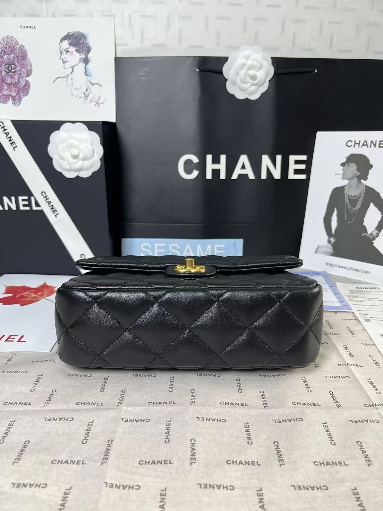 25C Mini Flap Bag Top Handle 20cm Black Lambskin Black Hardware Premium Version