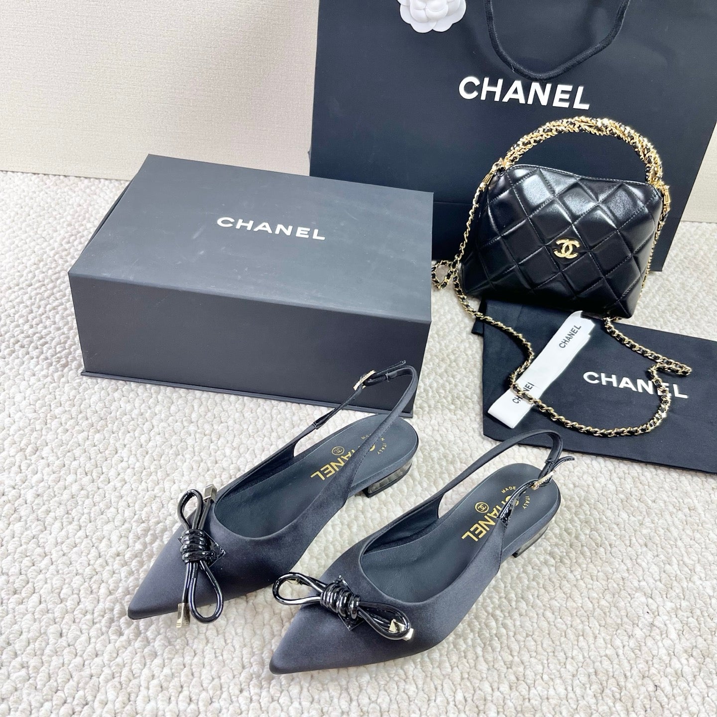 CC 25 Slingback Flat Black Fabric Grosgrain