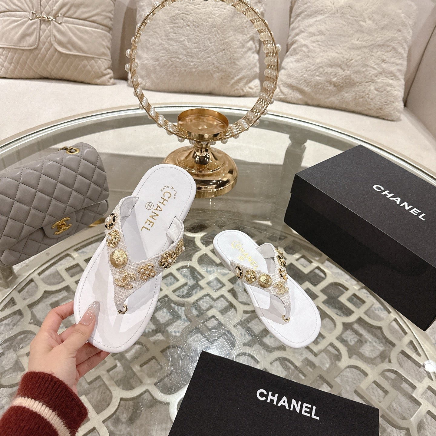 CC 25 Thong Slippers White Woolen Cloth 311100