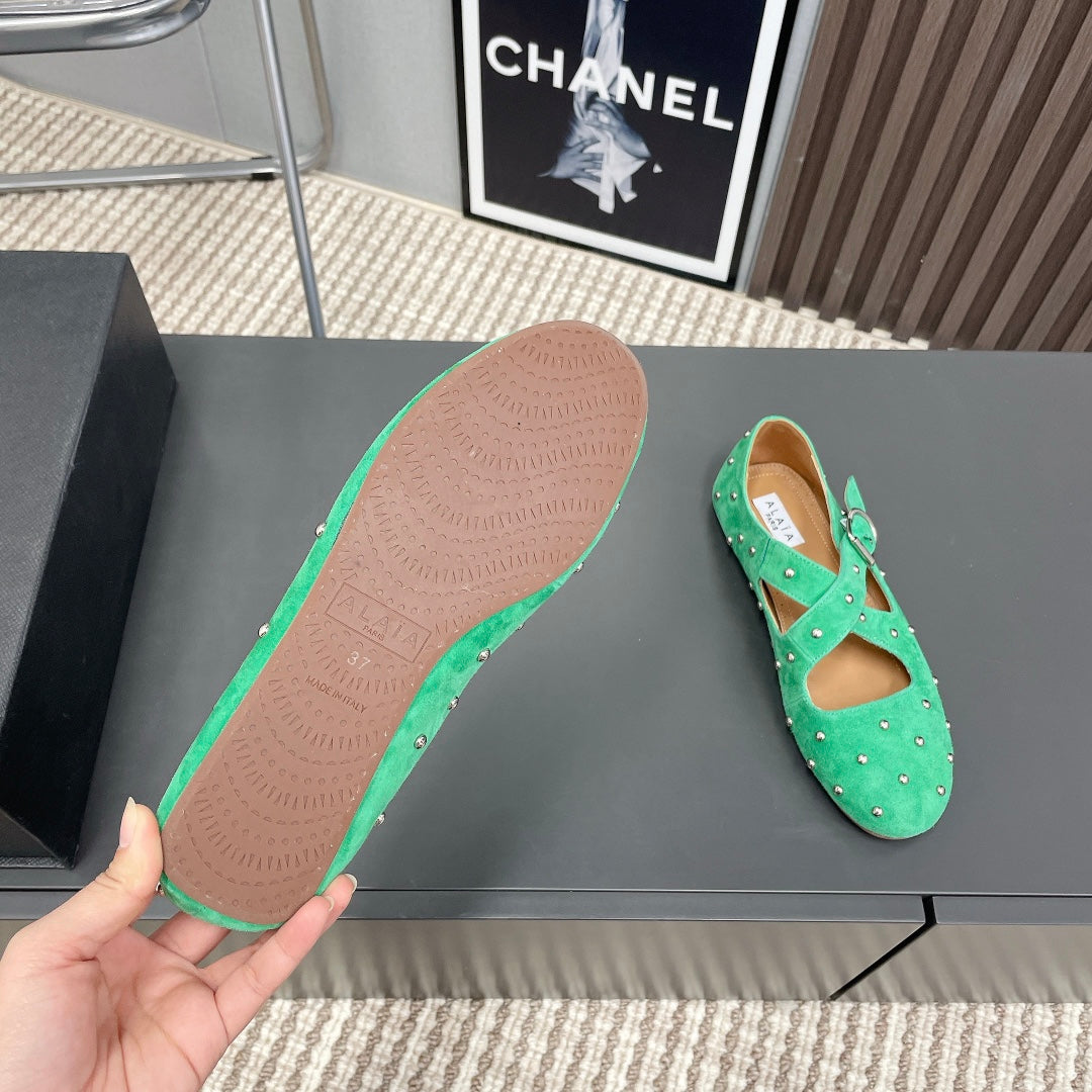 Alaia 2025 Criss Cross With Stud Ballet Flats Emerald Green Suede 293208