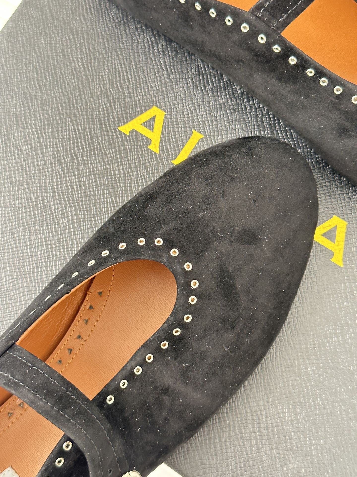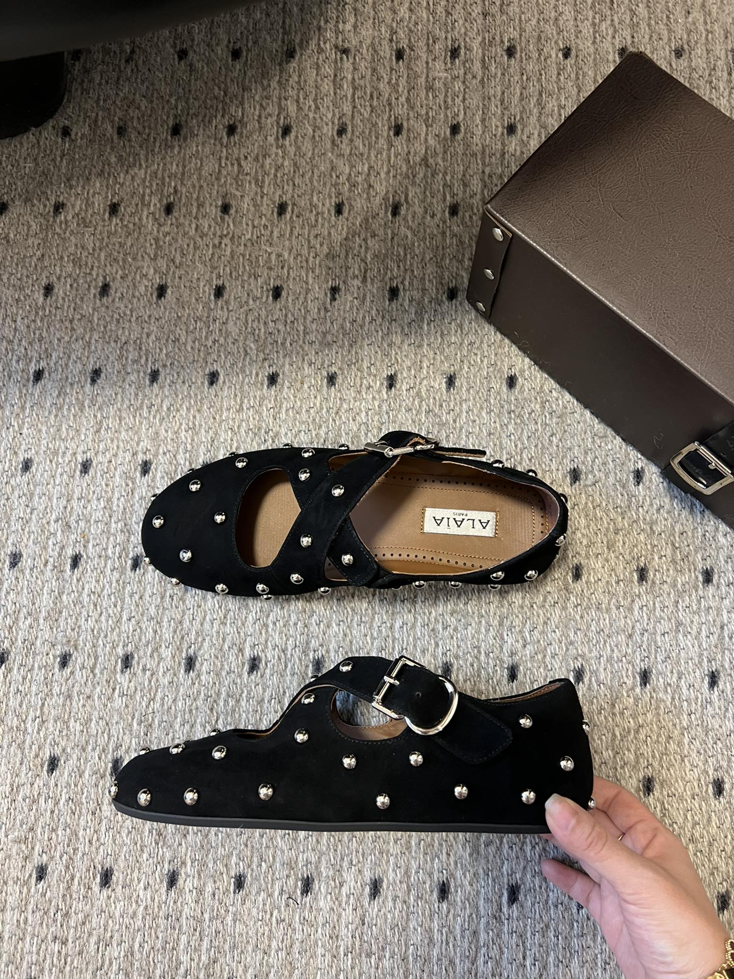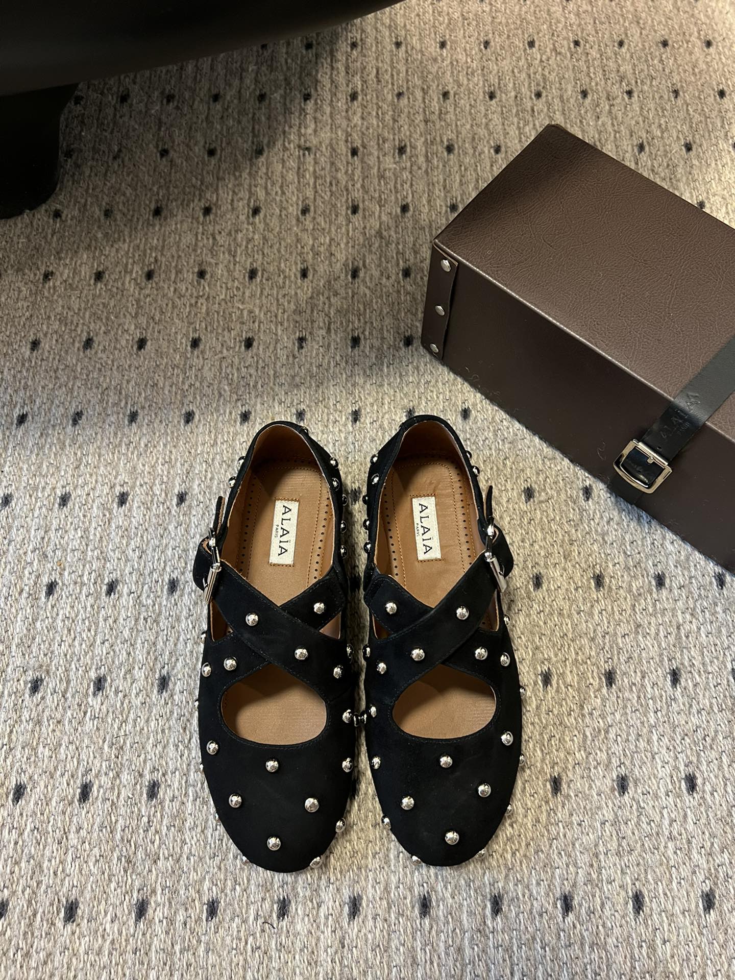 Alaia 25 Criss Cross With Stud Ballet Flats Black Suede Sheepskin 303693