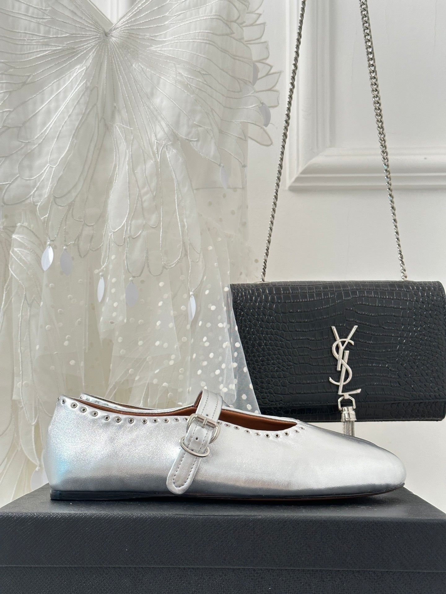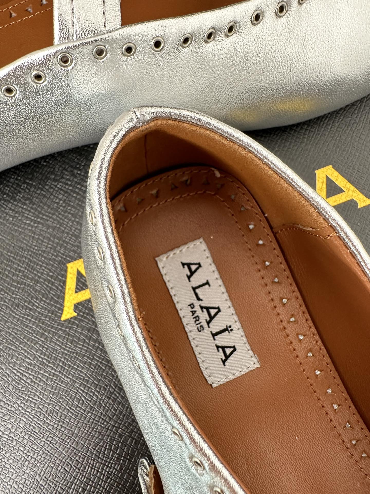 Alaia 25 Ballet Flats Silver Calfskin 293242