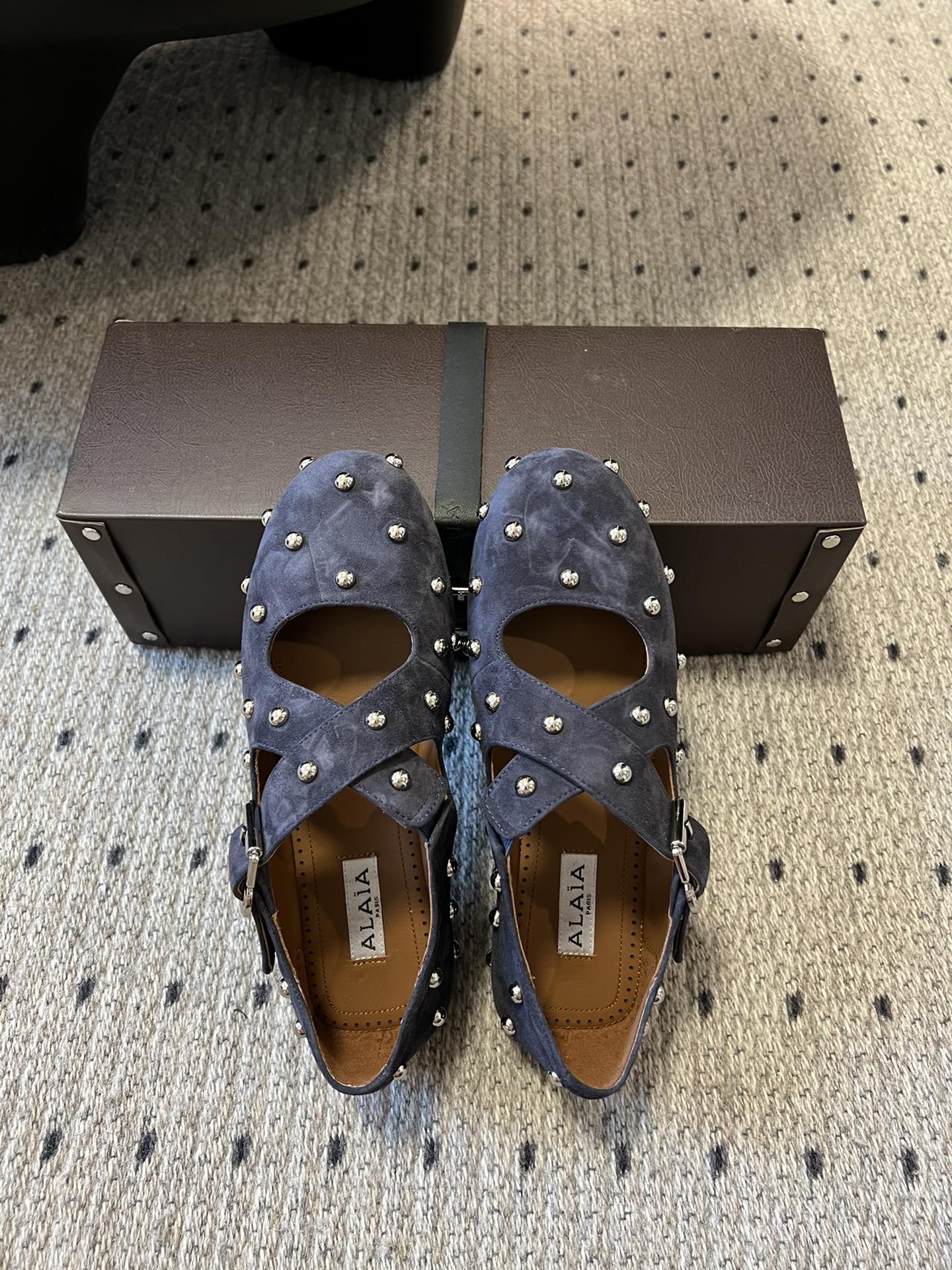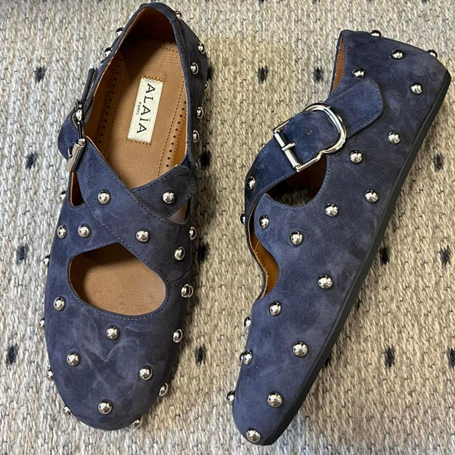 Alaia 25 Criss Cross With Stud Ballet Flats Denim Blue Sheepskin 303695