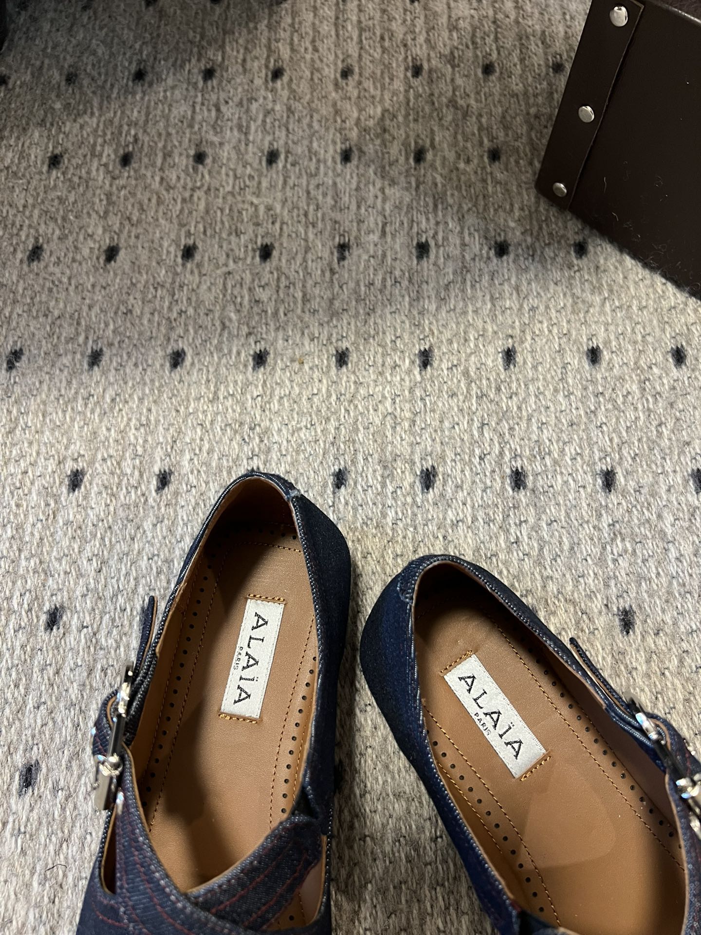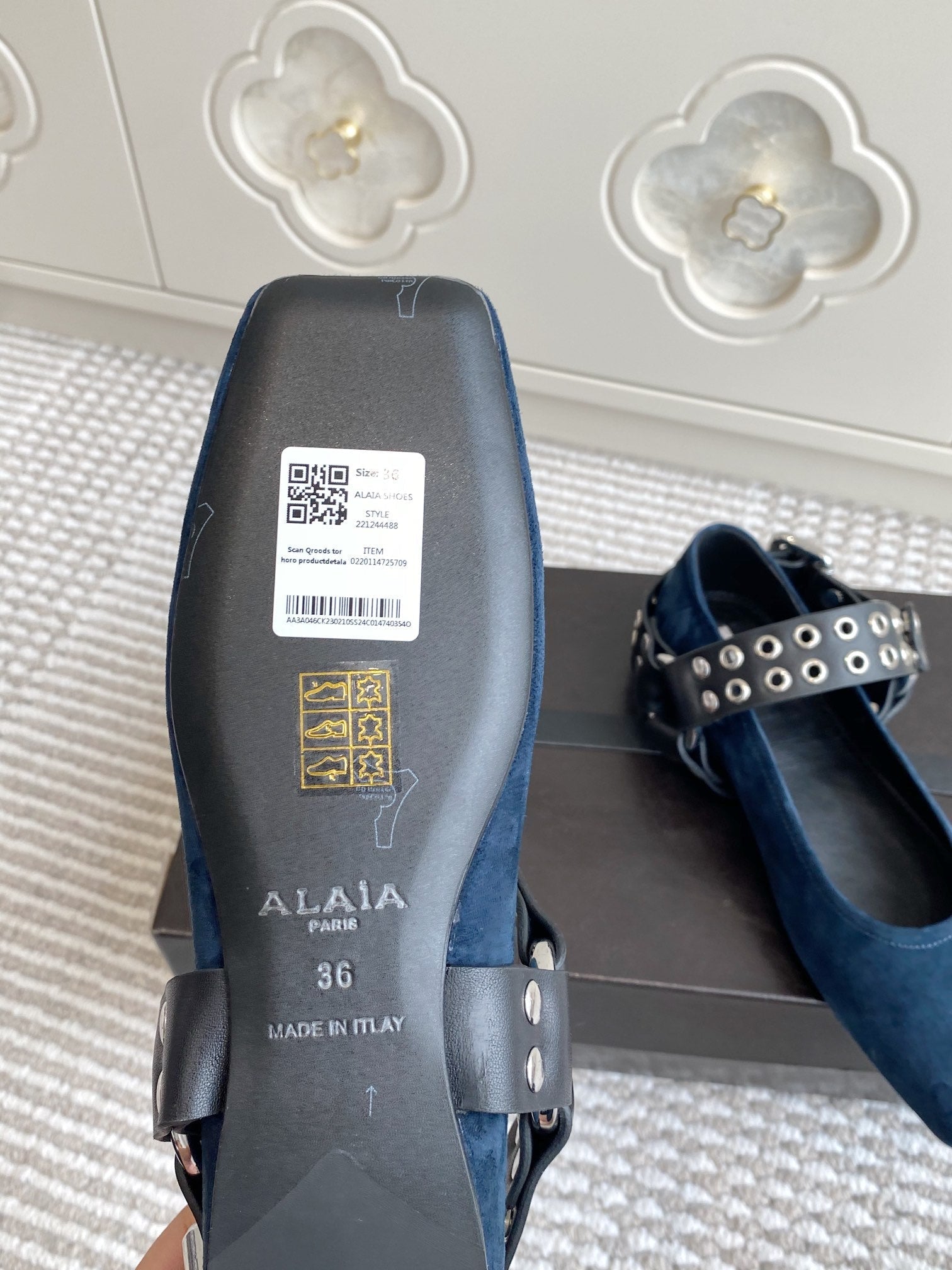 Alaia 2025 Oeillets Embellished Leather Sandals Denim Lambskin 299670