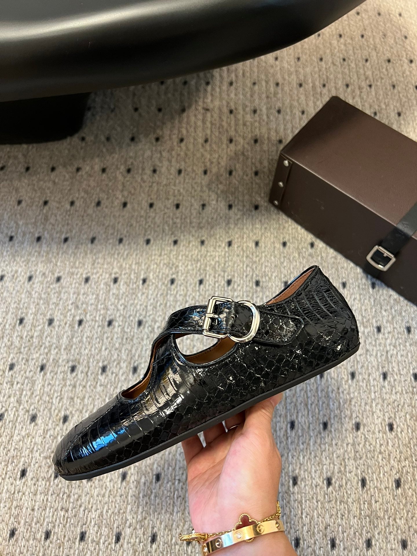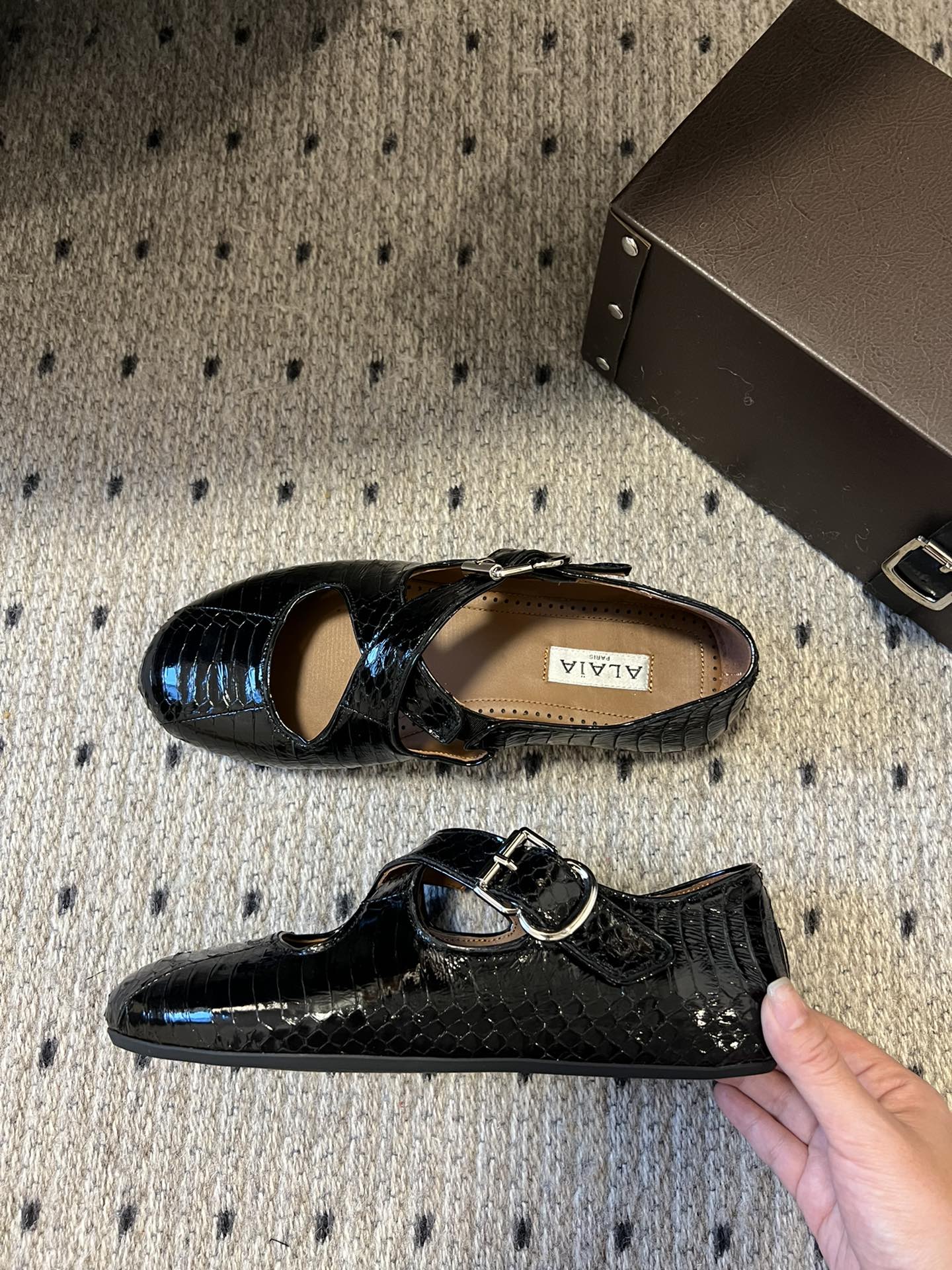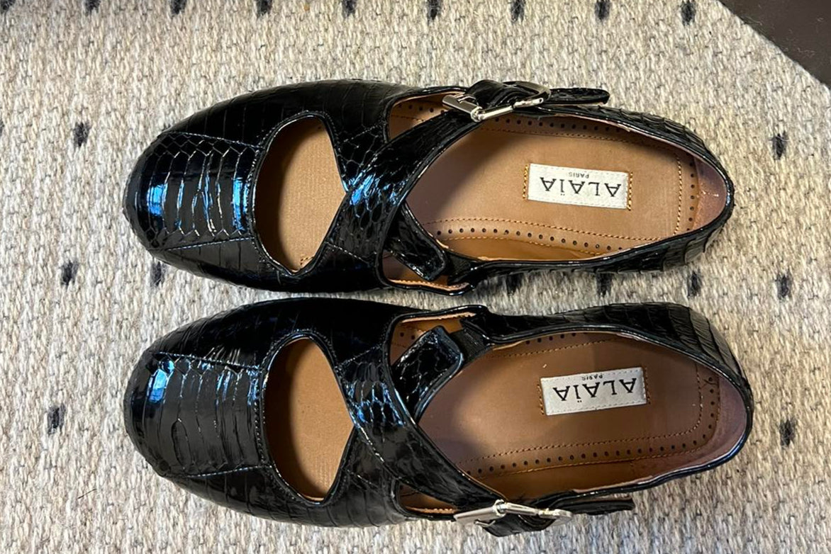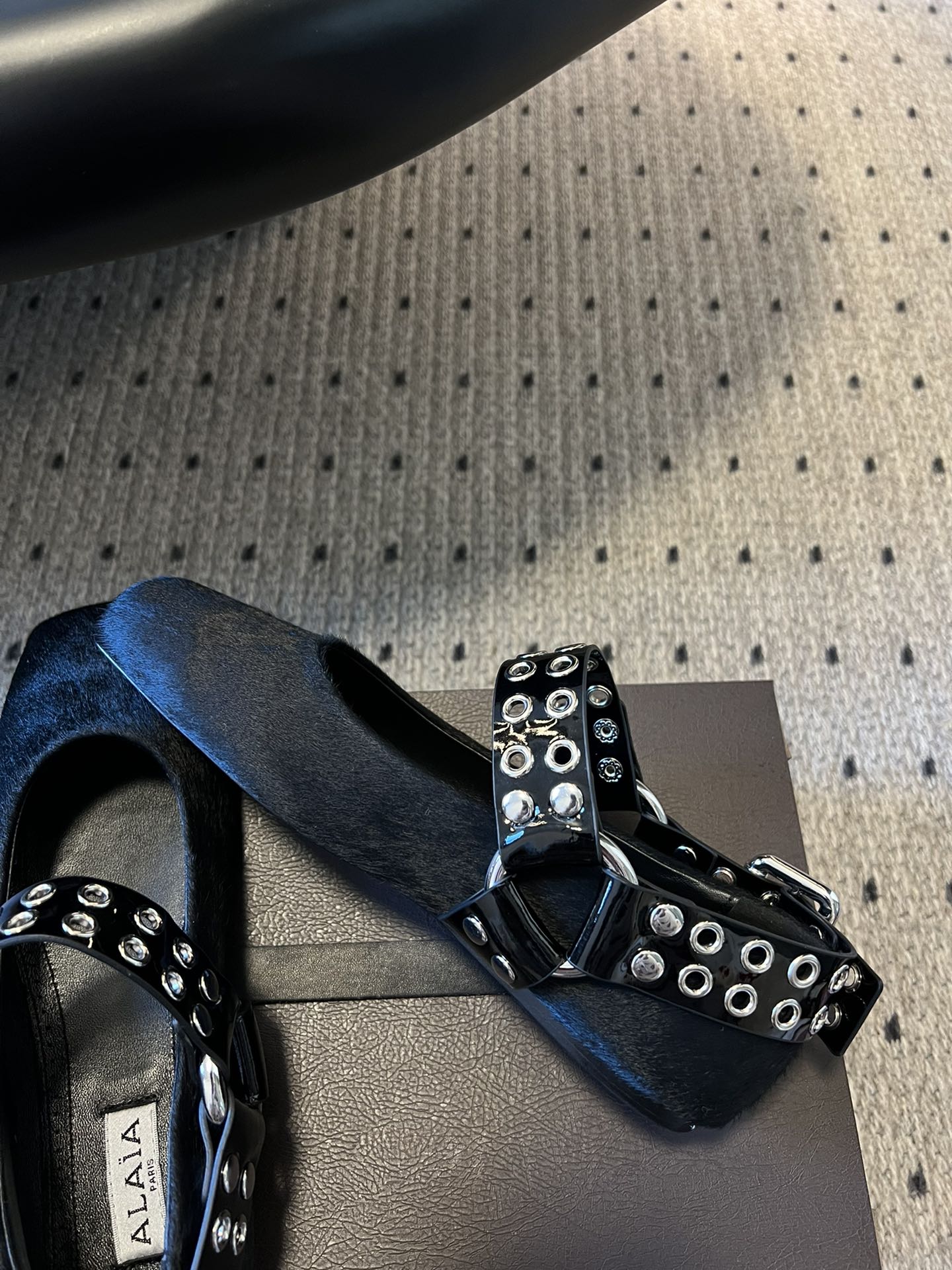Alaia 25 Biker Ballet Flats Black Horsehair Sheepskin 303729