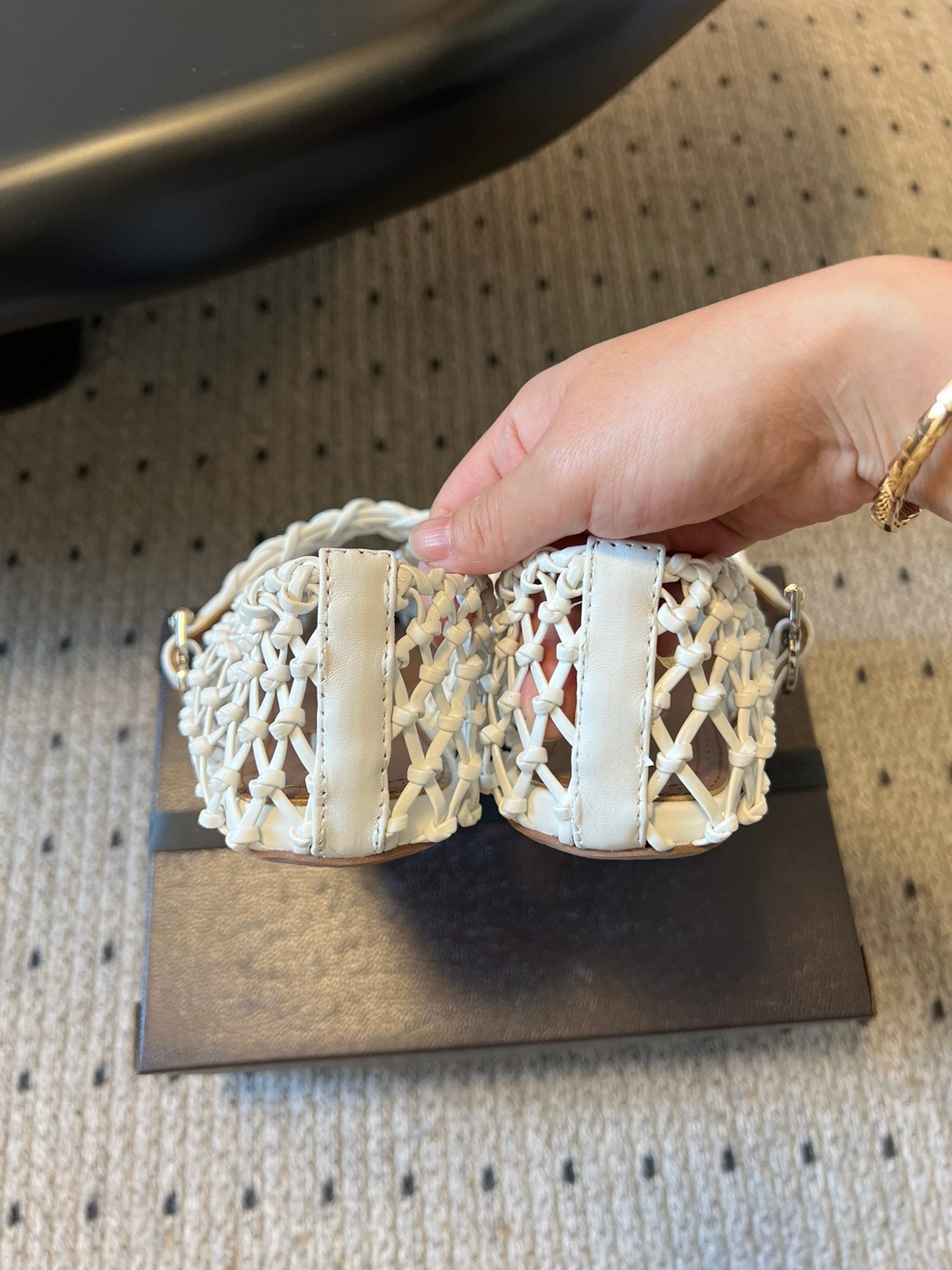 Alaia 2025 Oeillets Embellished Leather Sandals Black Lambskin 299669