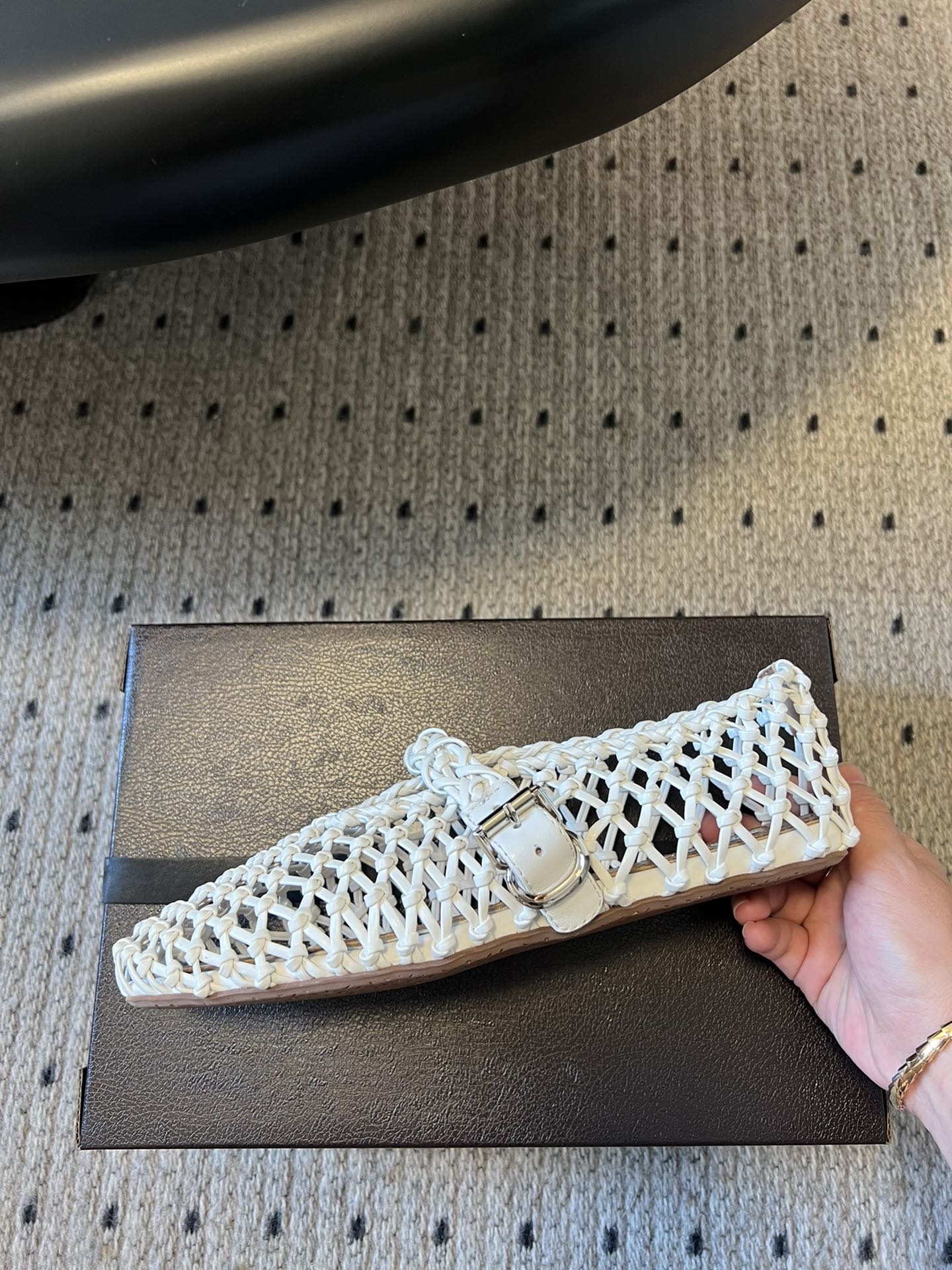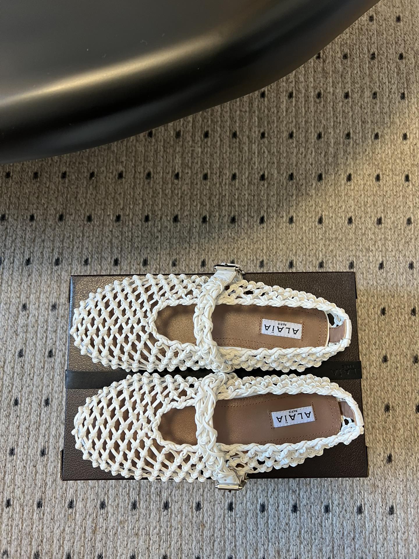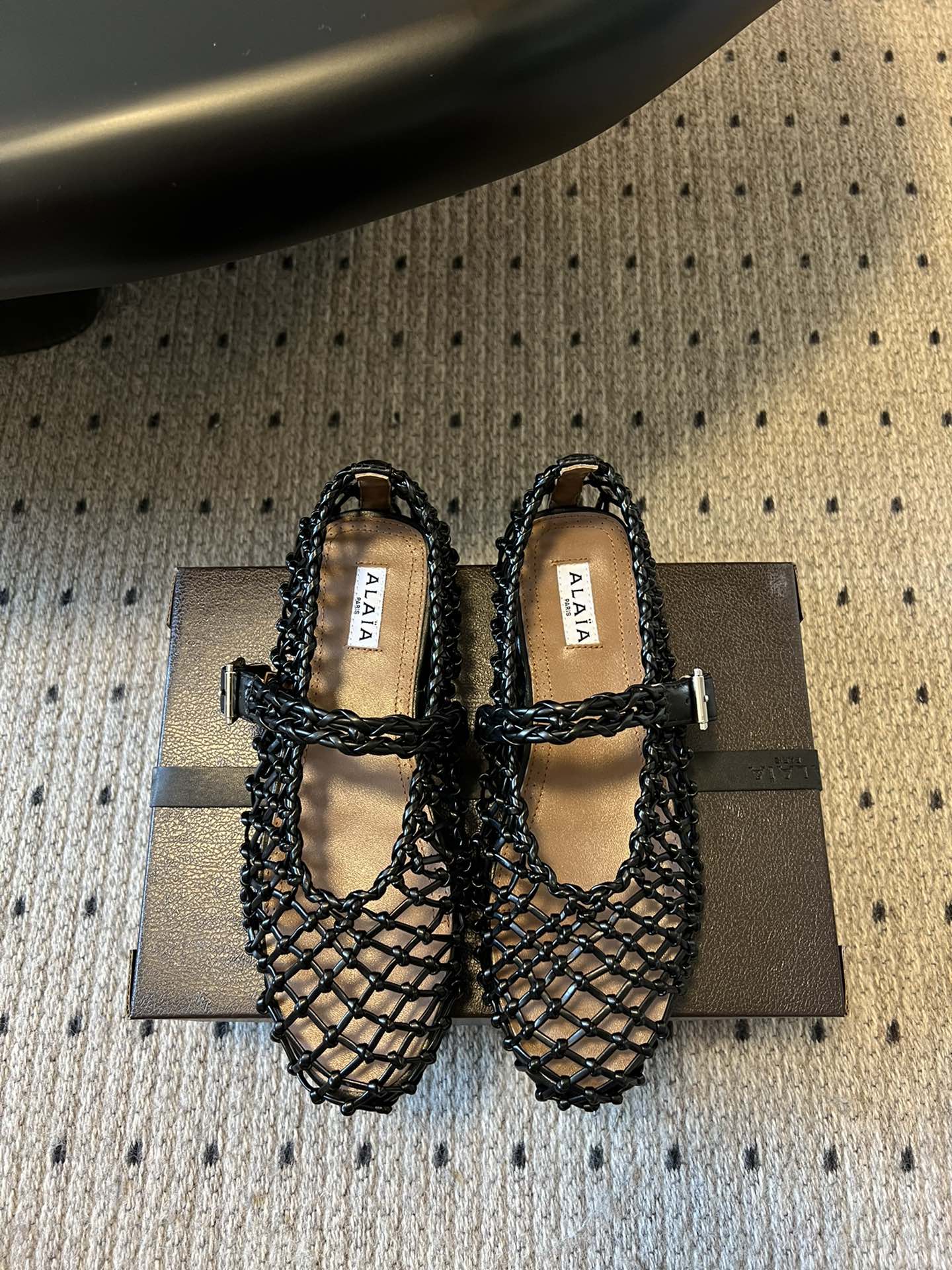 Alaia 25 Braided Ballet Flats Black Cowhide 303677