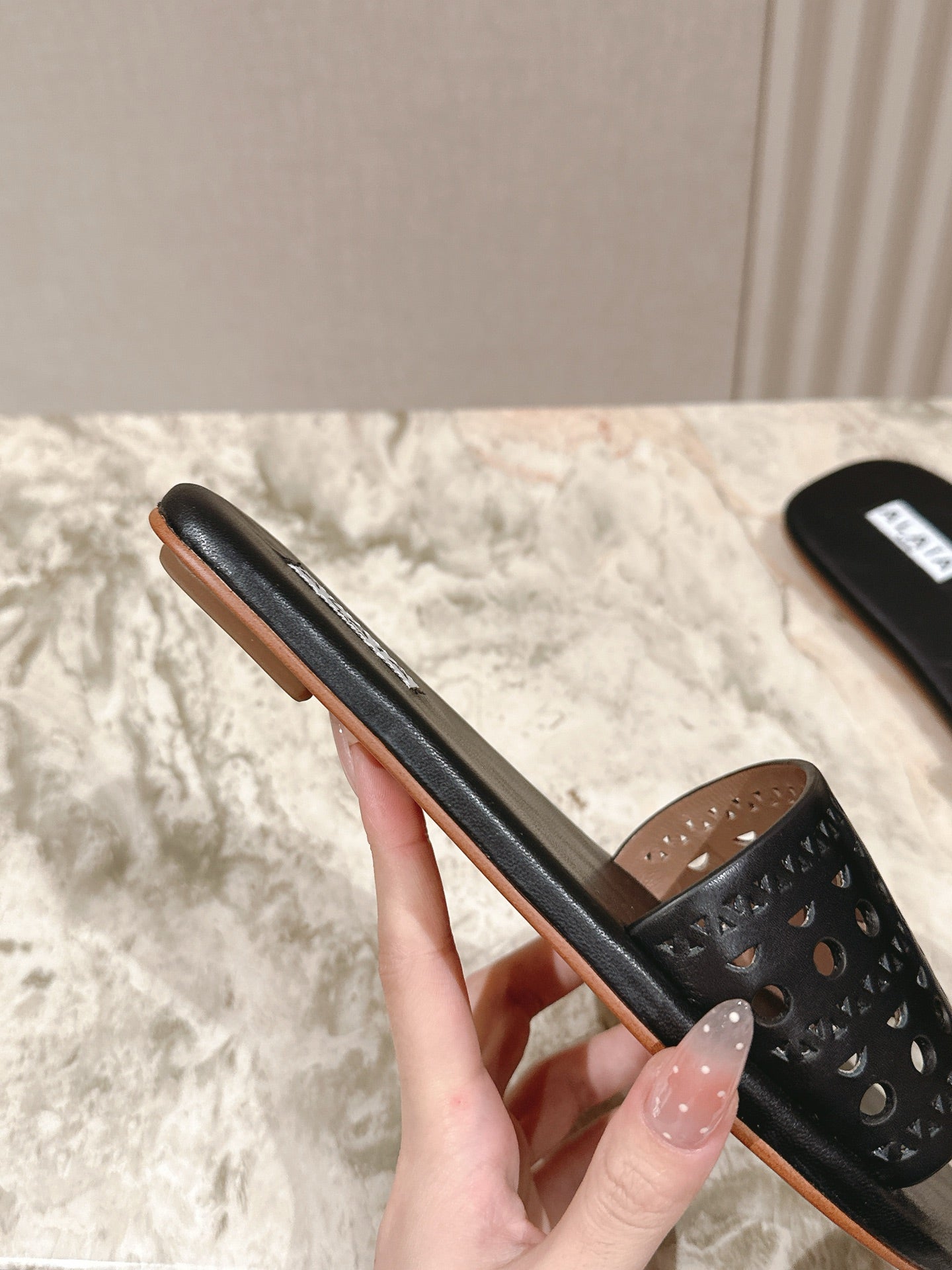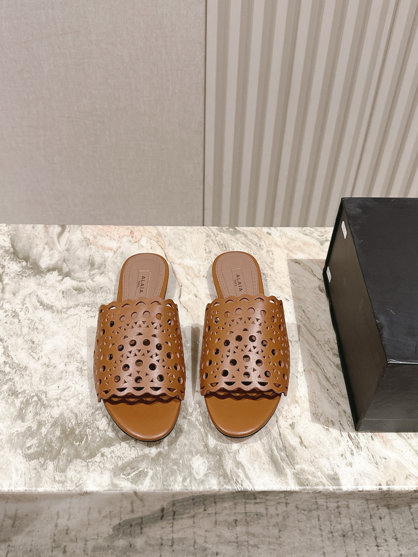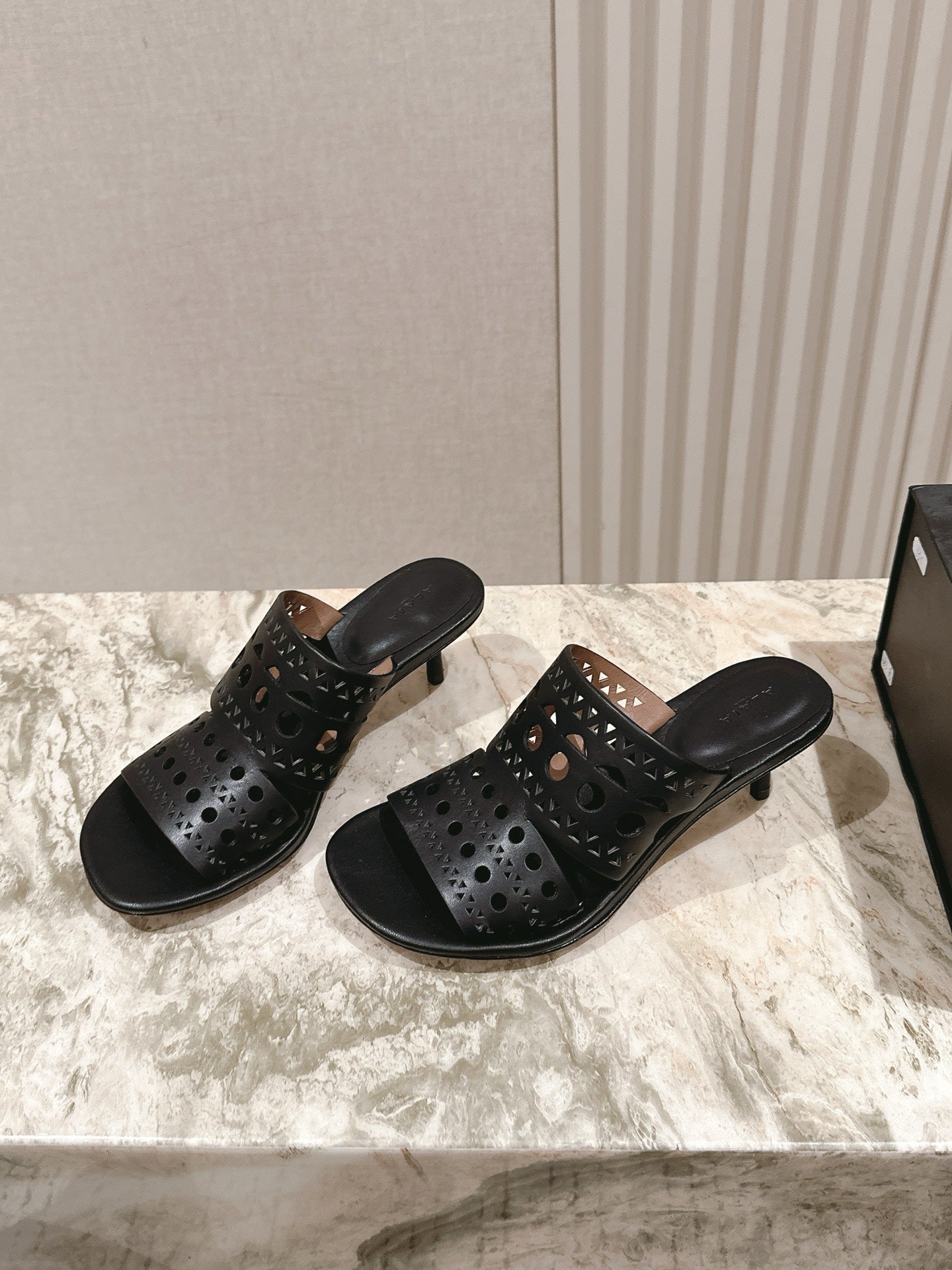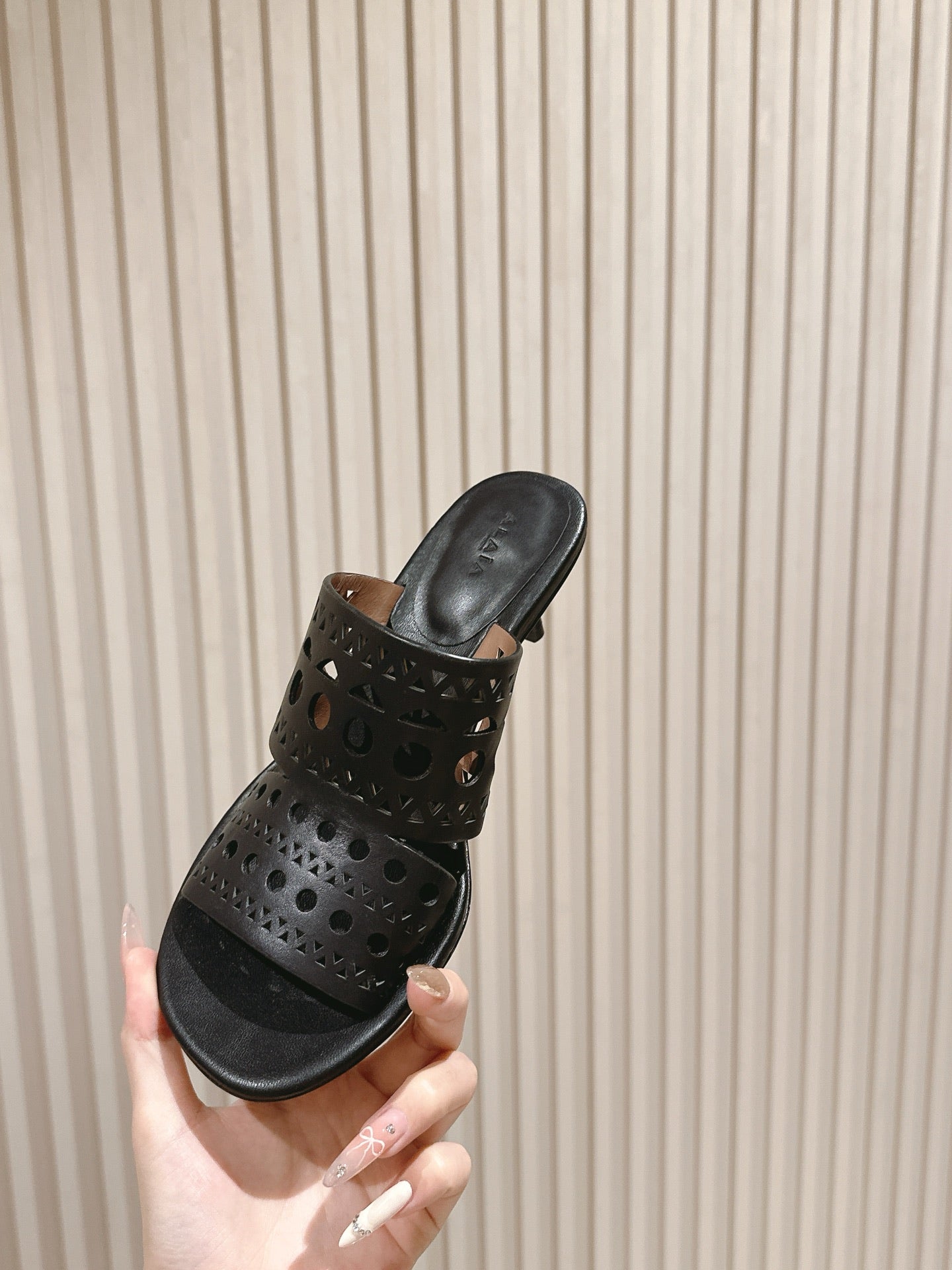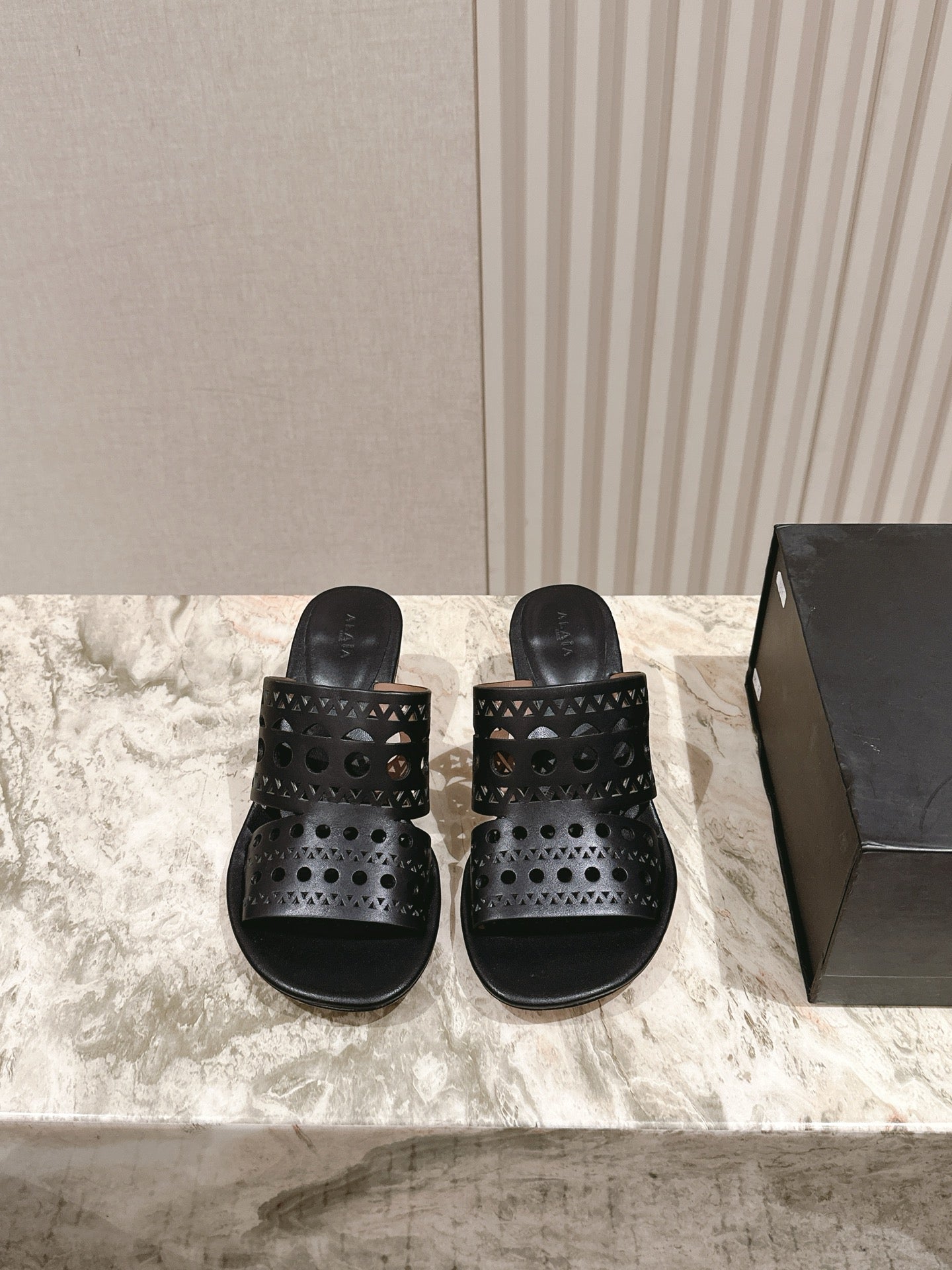 Alaia 2025 Hollow Slippers Black Leather 293653