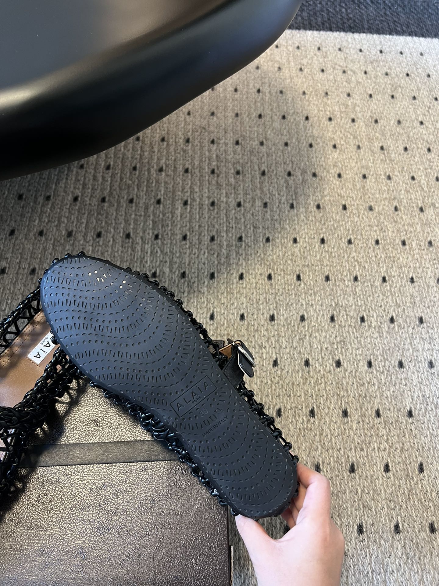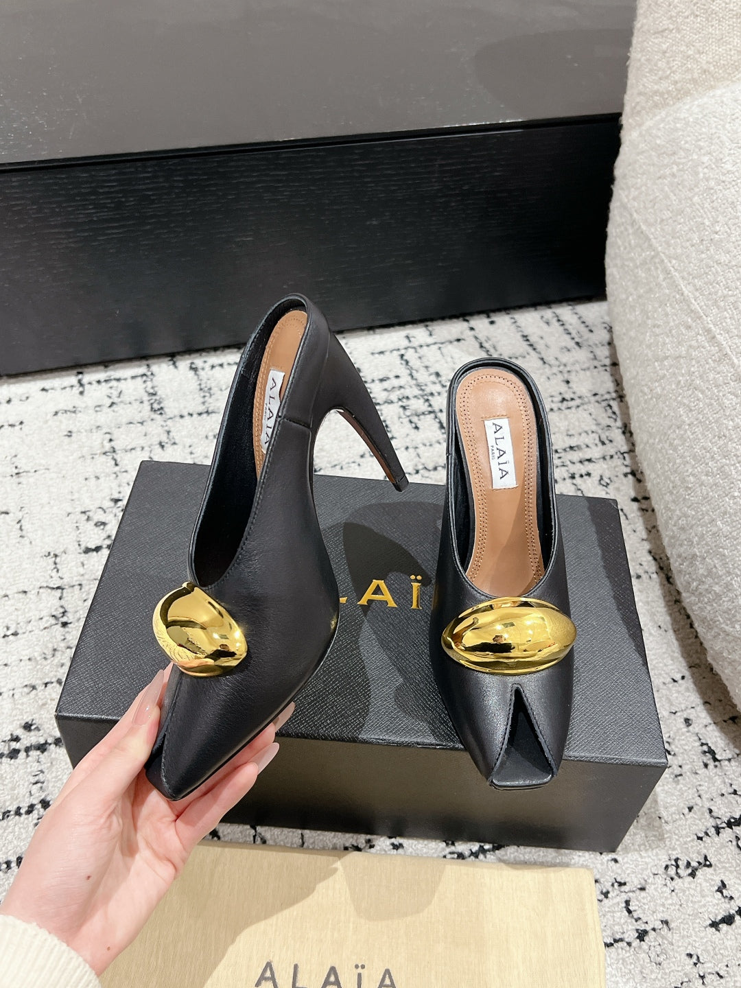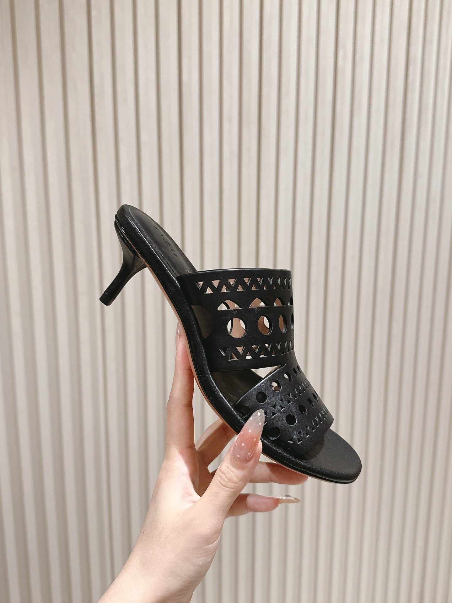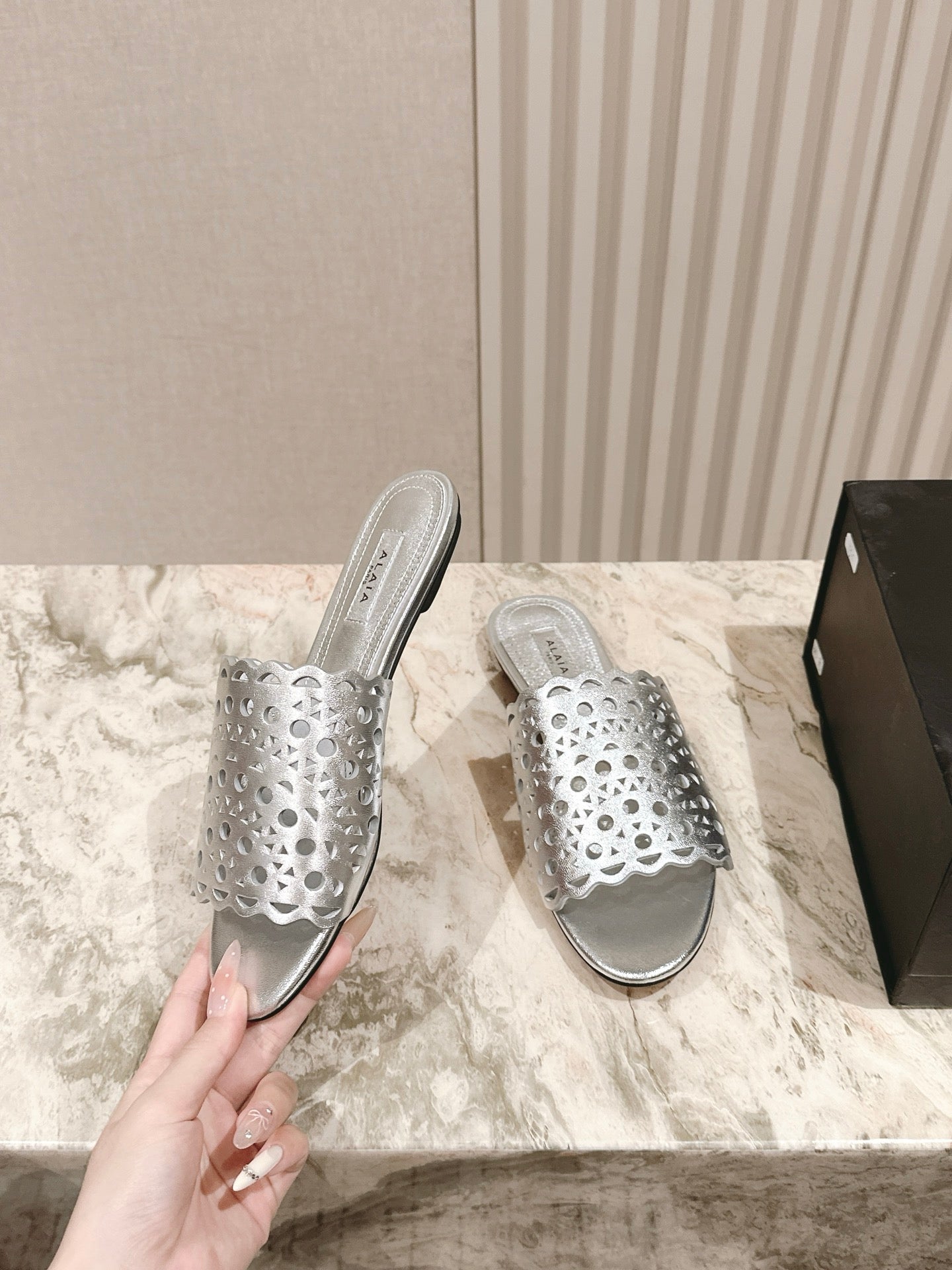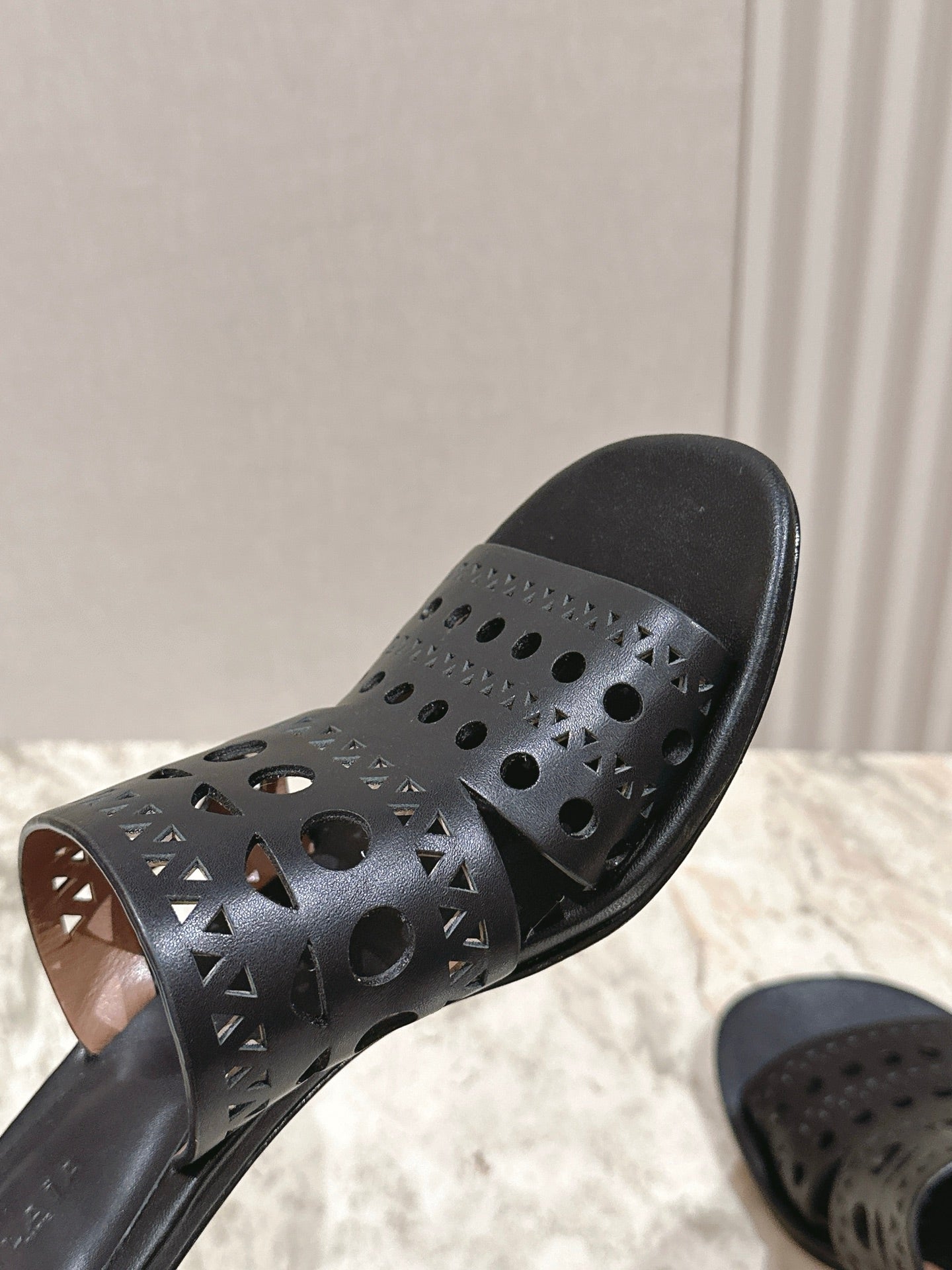 Alaia 2025 Hollow Slippers Black Leather 293653