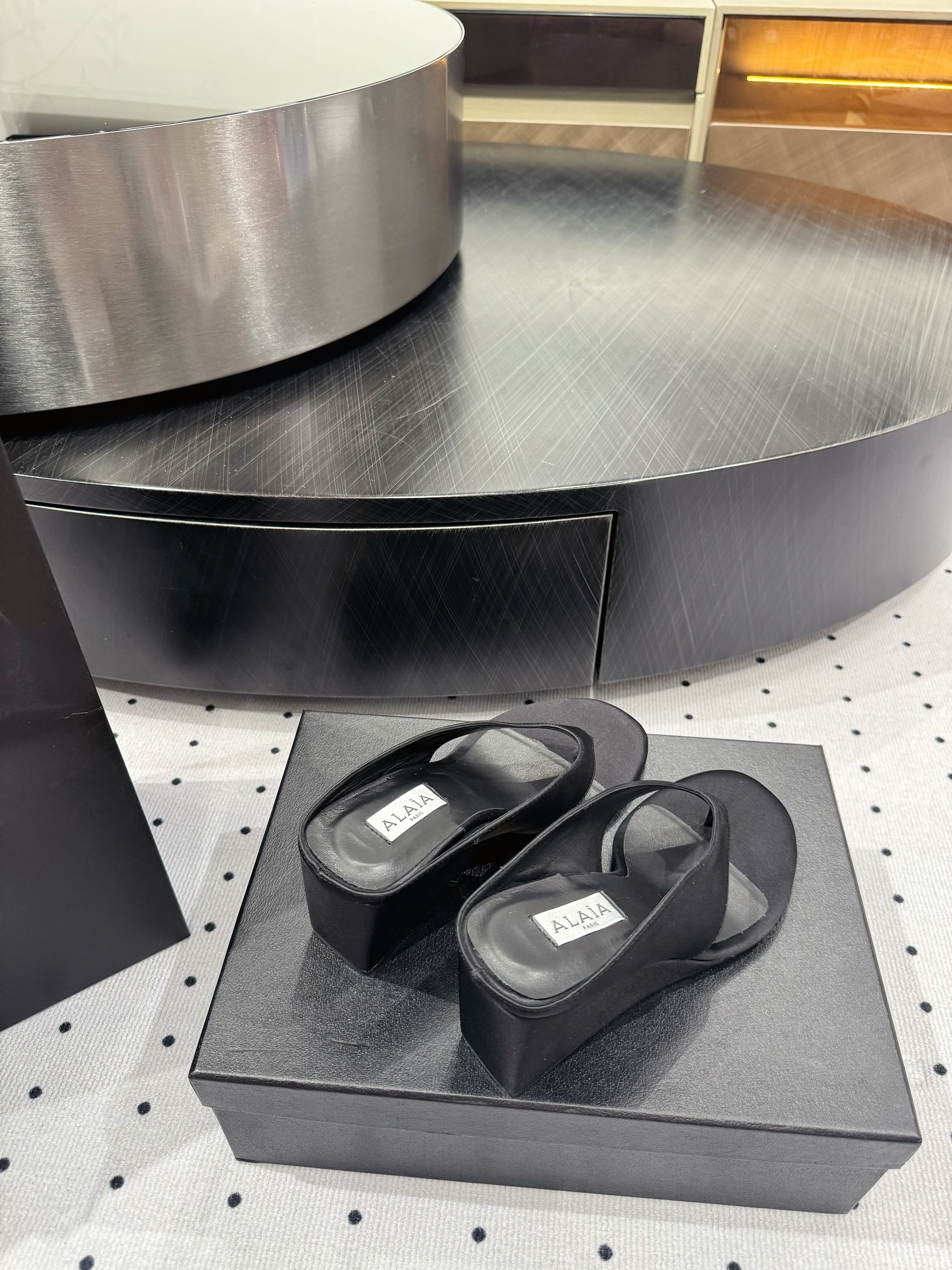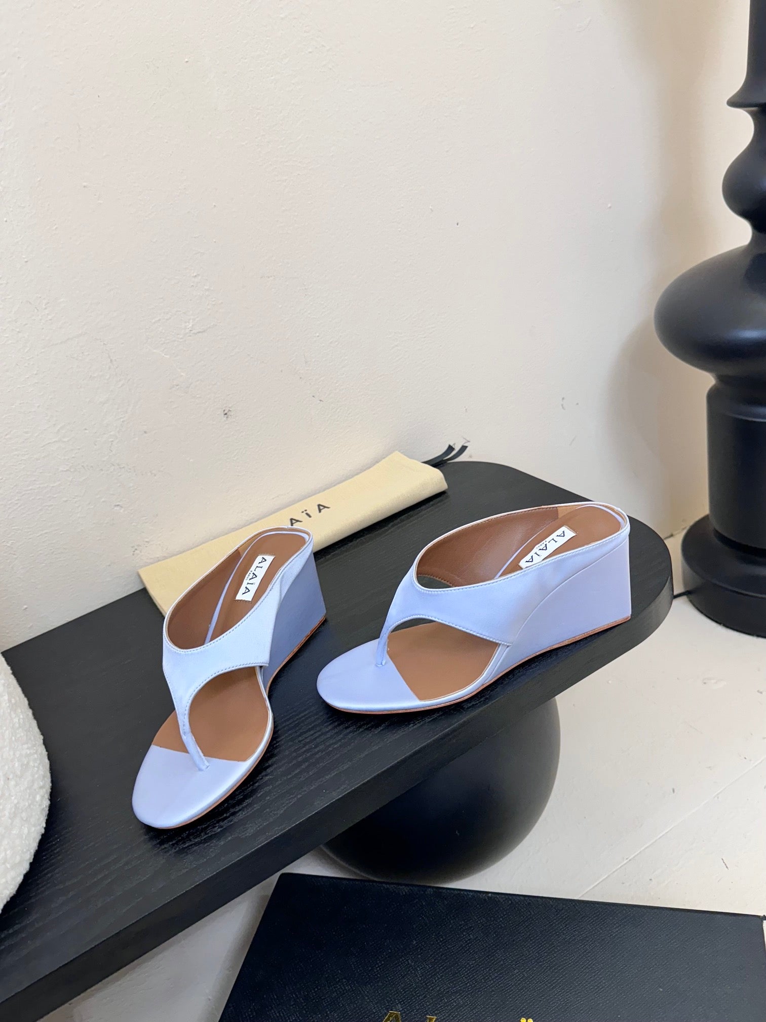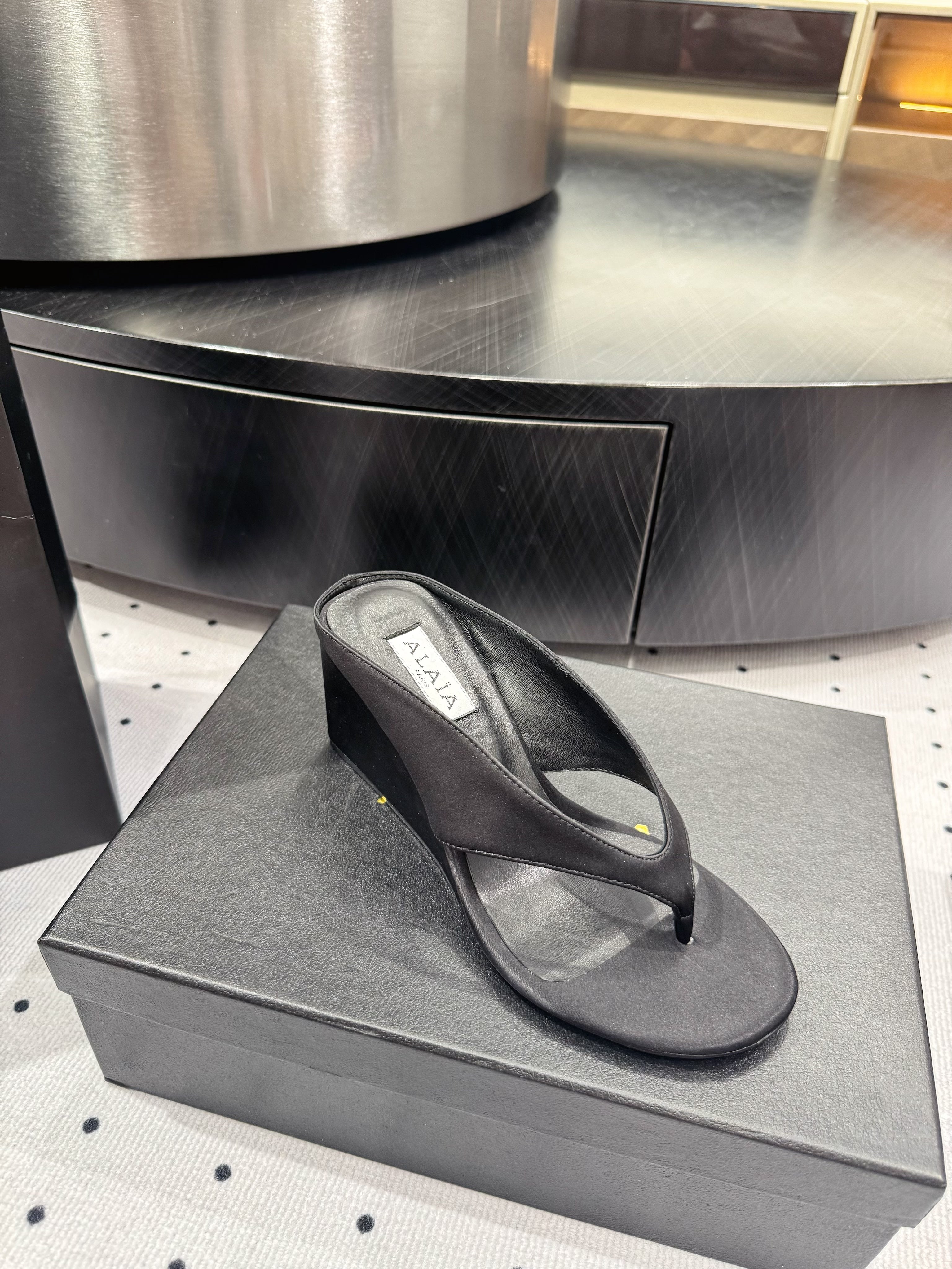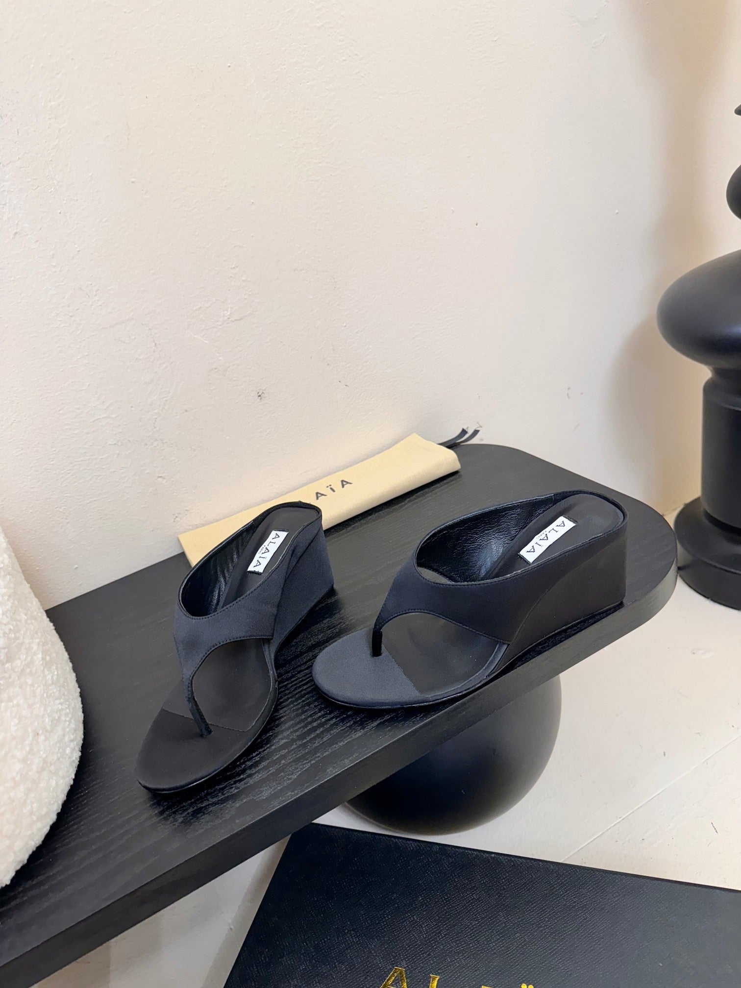 Alaia 25 Cube Thong Mules Black Satin Sheepskin 297039