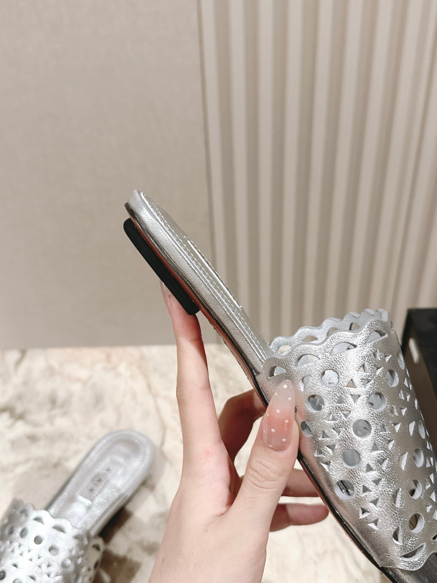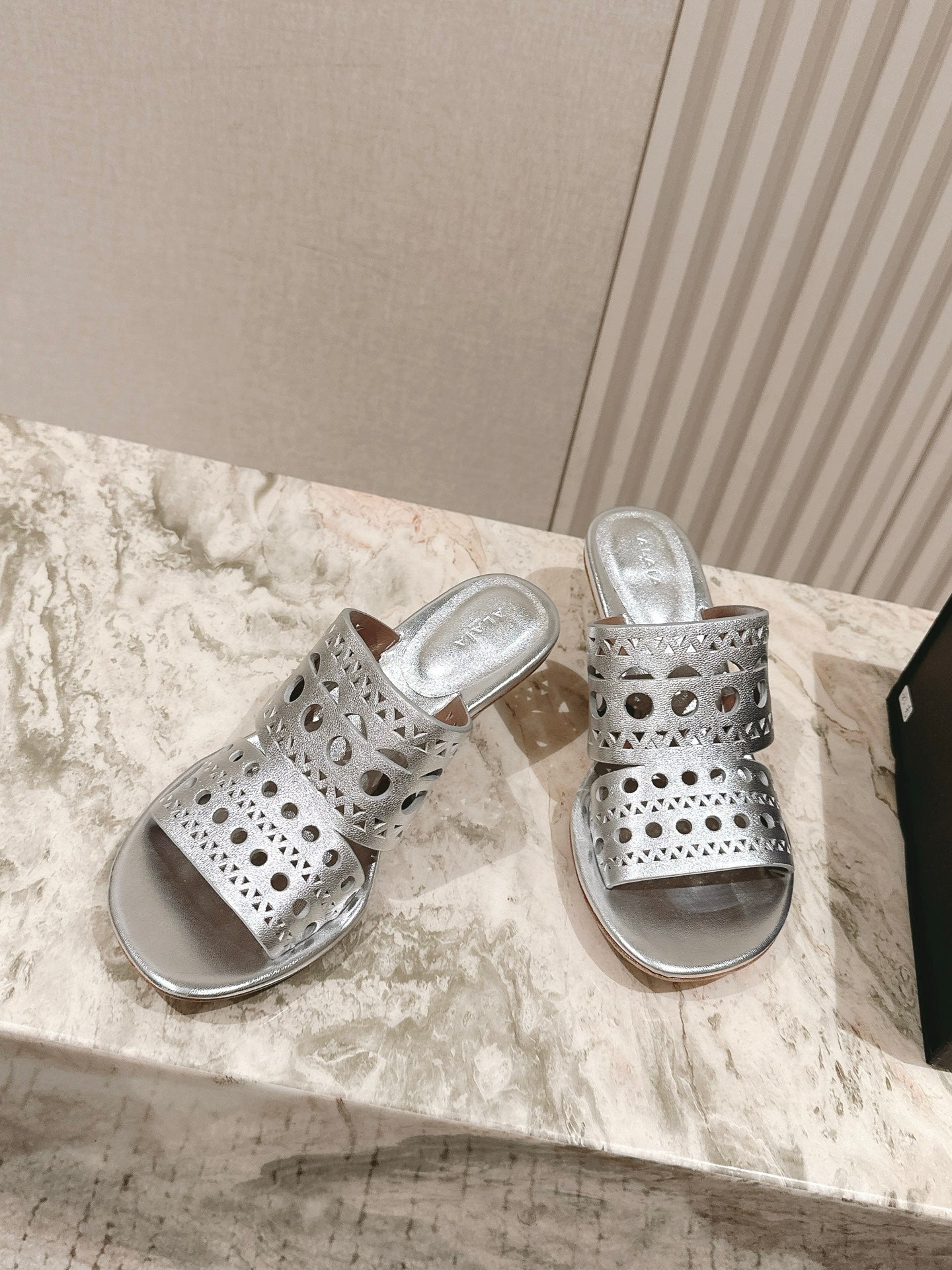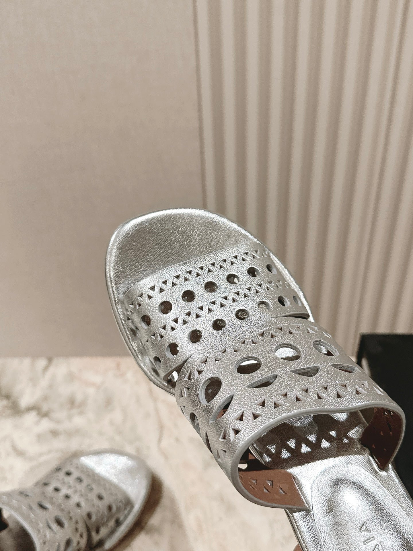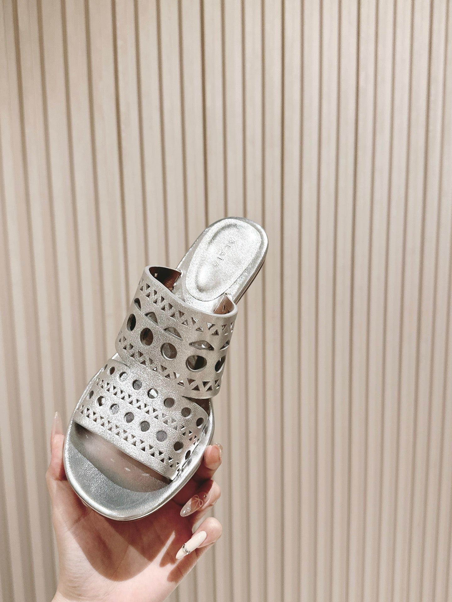 Alaia 2025 Vienne Slippers Silver Lambskin 293656
