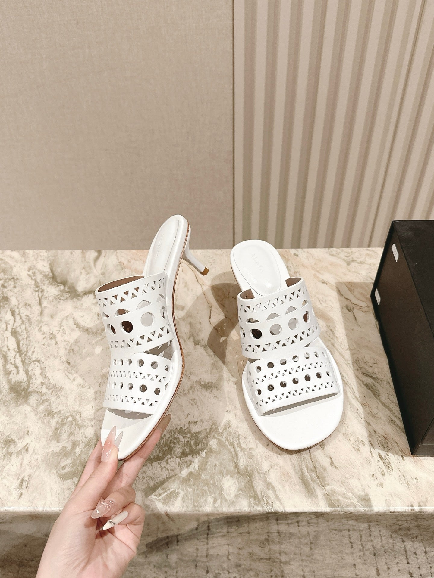 Alaia 2025 Hollow Slippers White Leather 293655