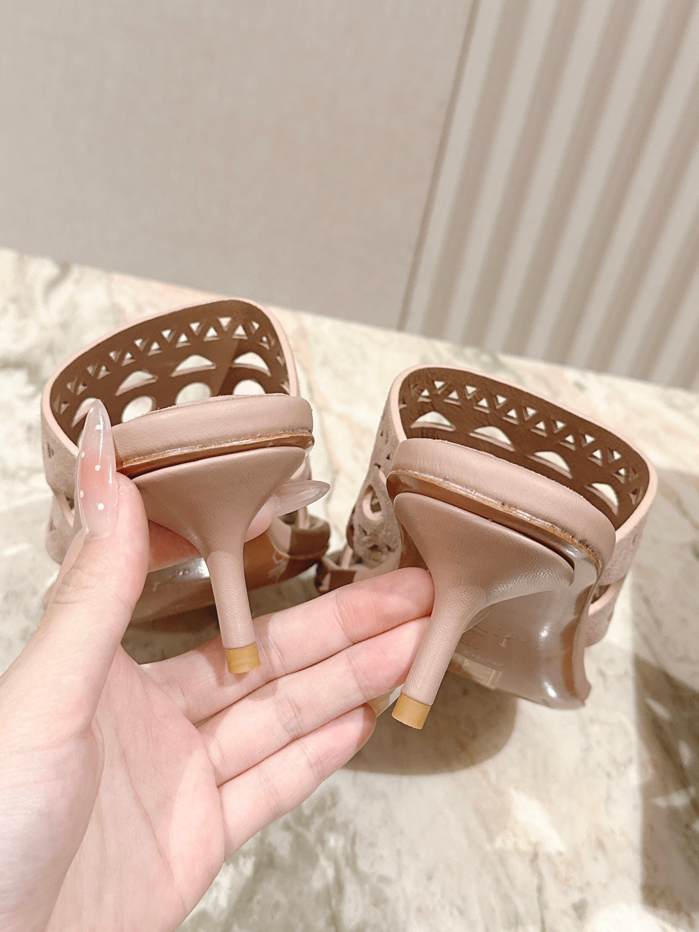 Alaia 2025 Hollow Slippers Pink Leather 293652