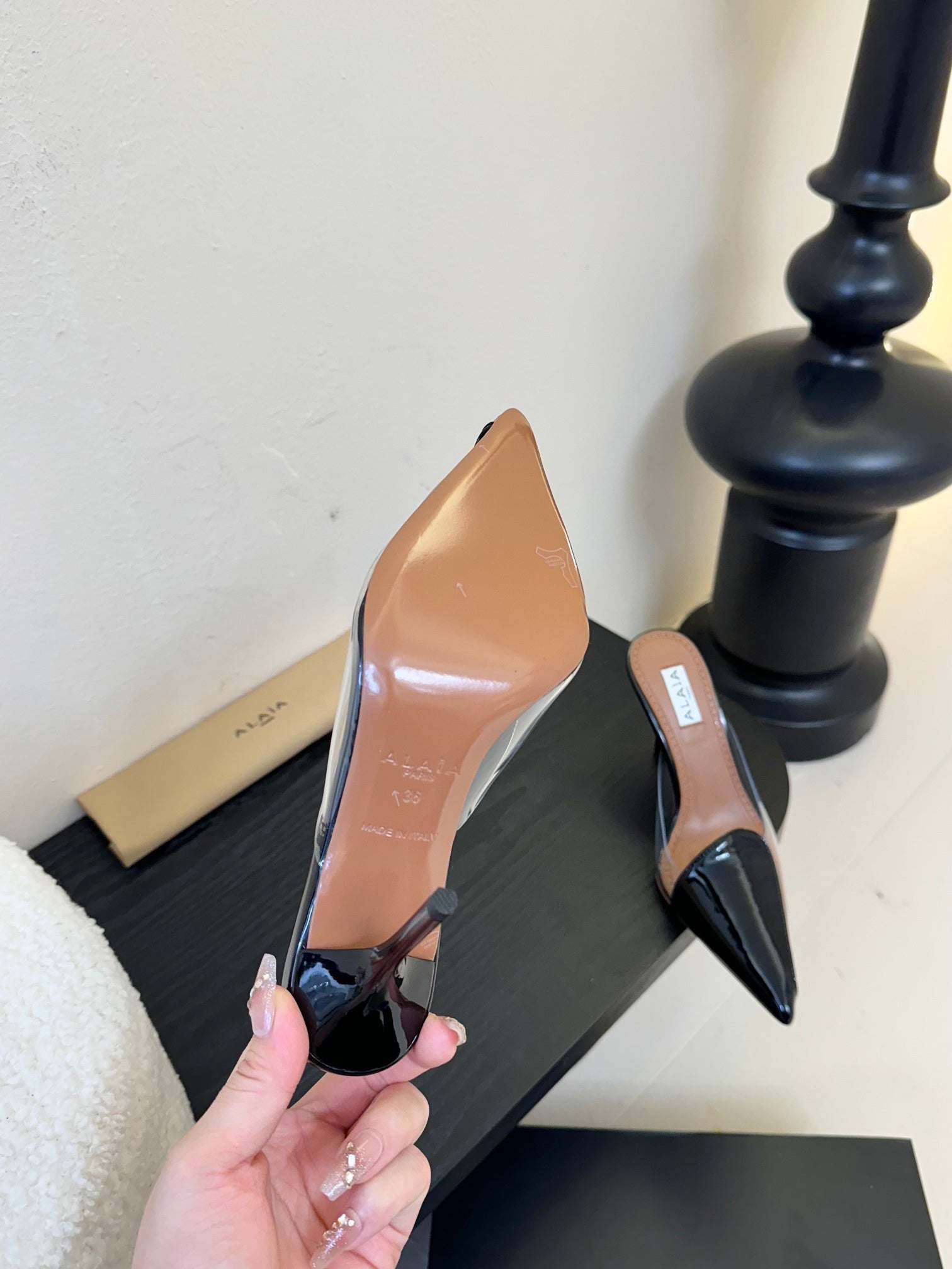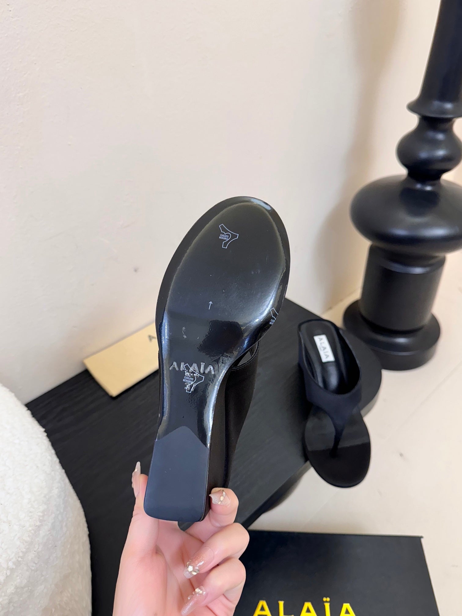 Alaia 25 Cube Thong Mules Black Sheepskin 296090