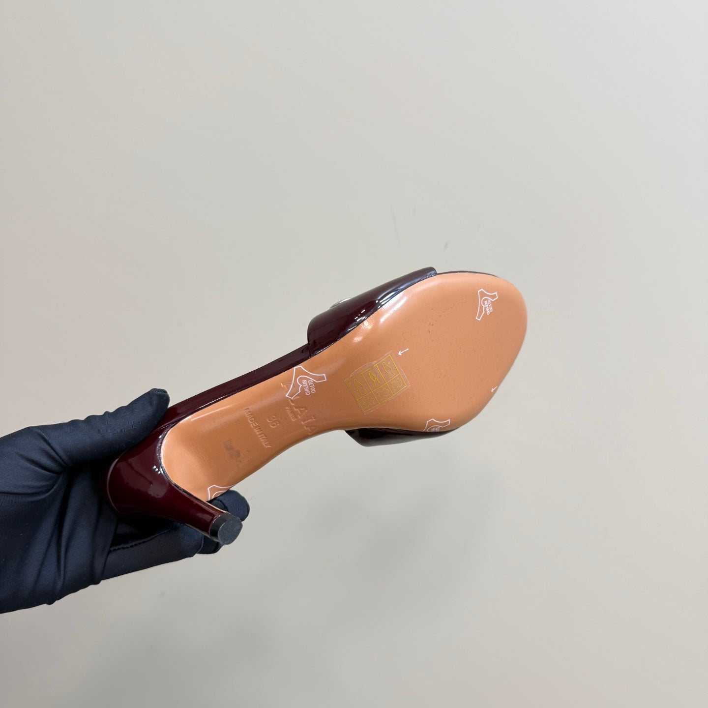 Alaia 25 Cube Thong Mules Brown Satin Sheepskin 297040