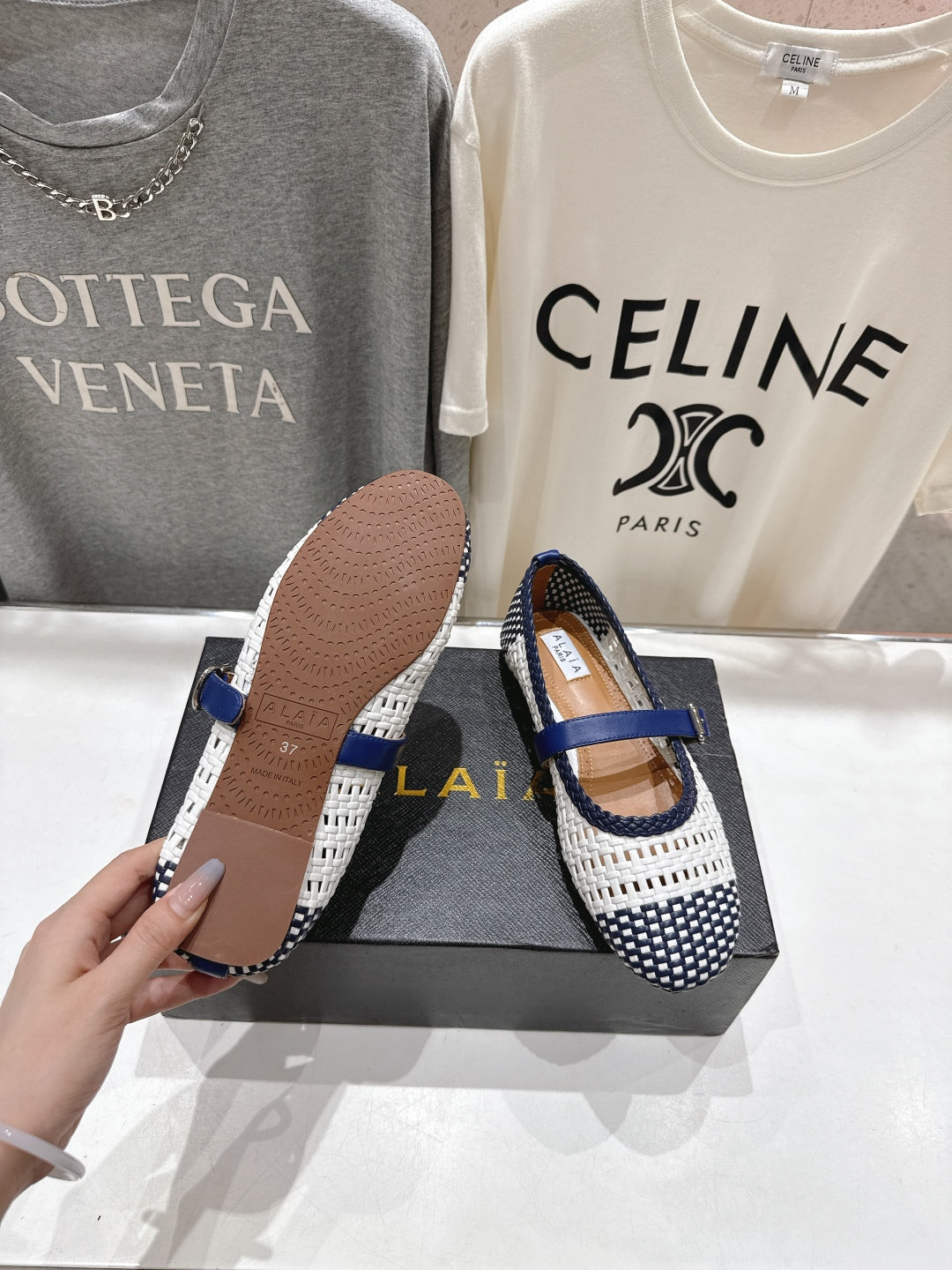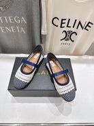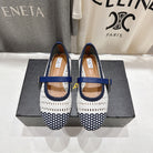 ALAIA MARY JANE FLATS white mix navy blue woven calfskin pattent