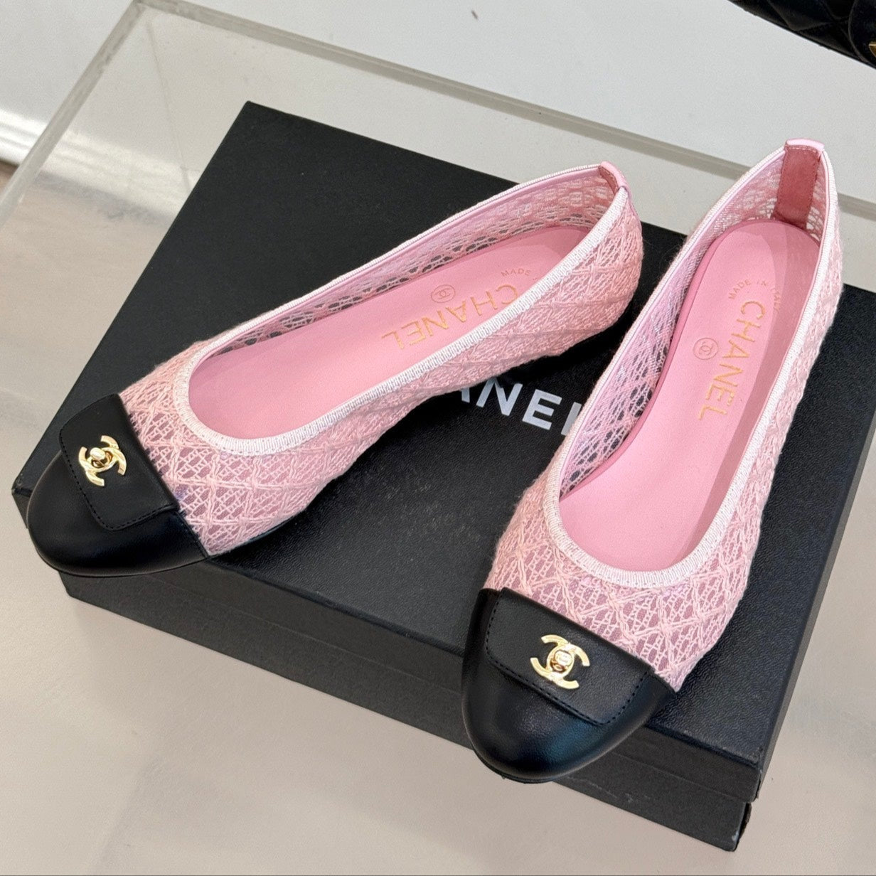 Chanel 25 Ballet Flat Pink Black Woven Lambskin 473054