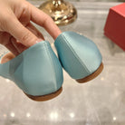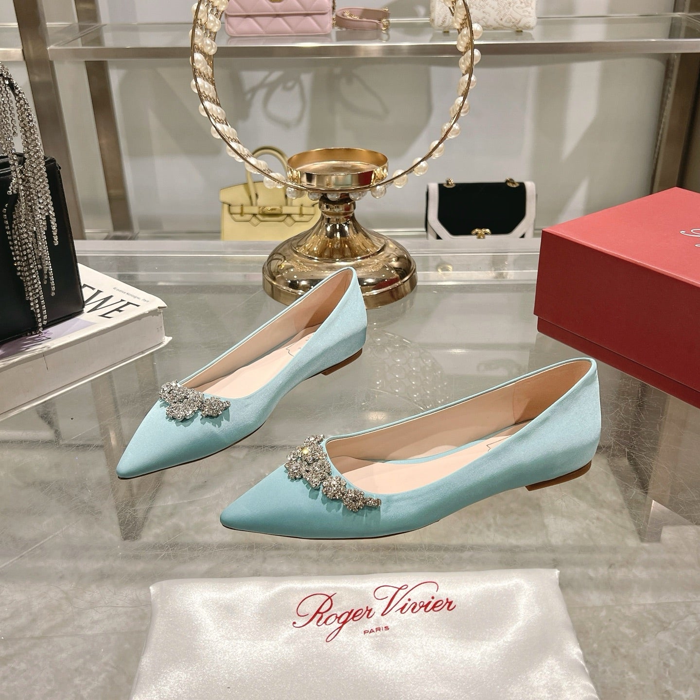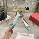 Viv 25 Crystal Diamond Buckle Flats Blue Silk Satin 235394