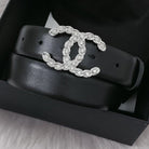 CC WOMEN'S BELT 3.0CM LEATHER BLACK BUCKLE SILVER DIAMOND