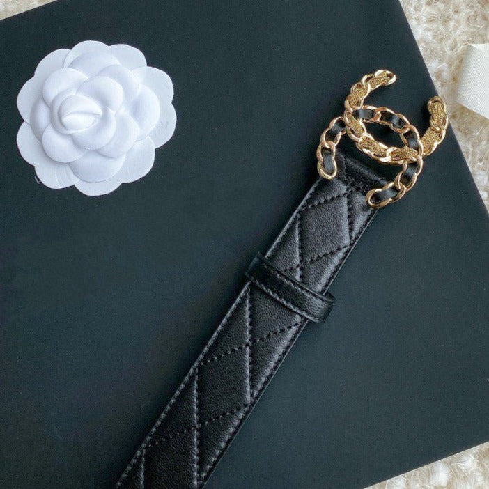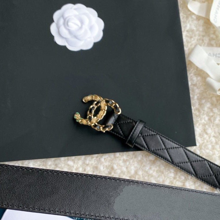 CC WOMEN'S BELT 3.0CM LEATHER BLACK CARO BUCKLE MULTICOLOR