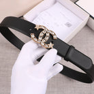 CC WOMEN'S BELT 30MM BUCKLE STAR DIAMOND LEATHER BLACK