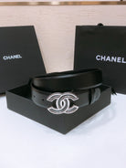 CHANEL BELT 3CM IN BLACK LAMBSKIN SILVER HARDWARE