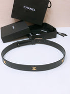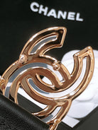 CHANEL BELT 3CM IN BLACK LAMBSKIN WITH GOLD HARDWARE LOGO
