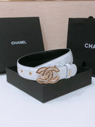CHANEL BELT 3CM WHITE EMBROIDERED LAMBSKIN WITH GOLD HARDWARE