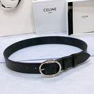 CL LARGE 35MM TWIN TRIOMPHE BELT IN BLACK CALFSKIN SILVER HARDWARE