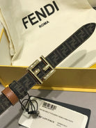 FF Belt 2mm Monogram Canvas Beige Calfskin Gold Hardware