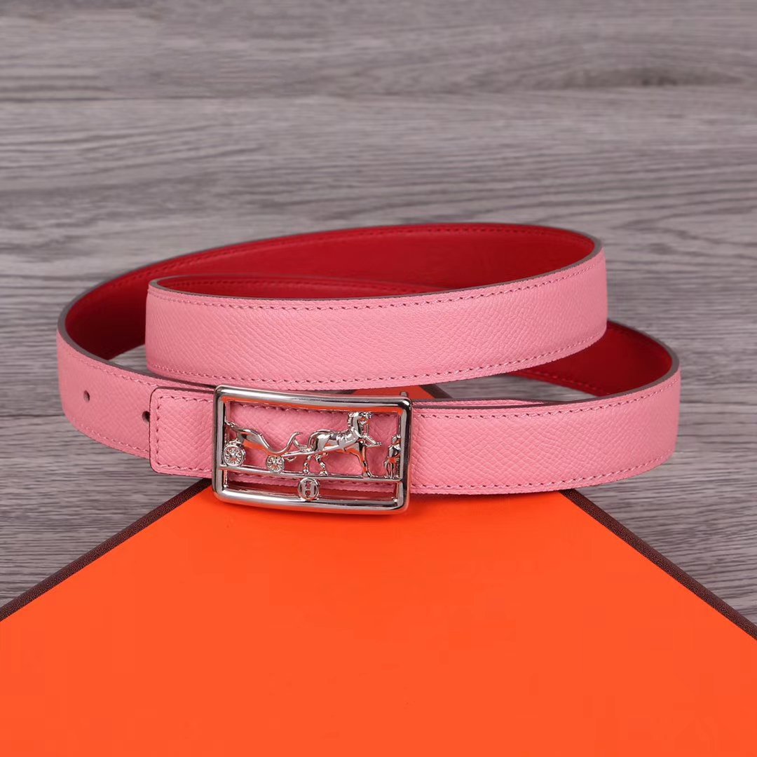 H BELT WOMEN SILVER BUCKLE 24MM ROSE RED LEATHER